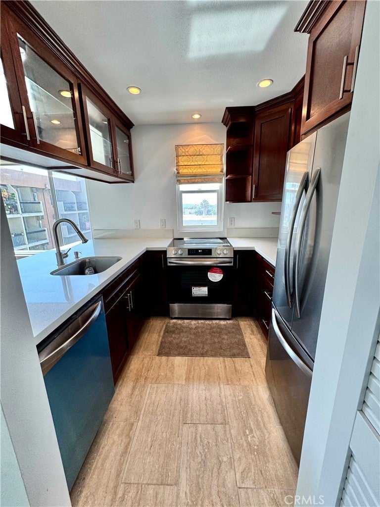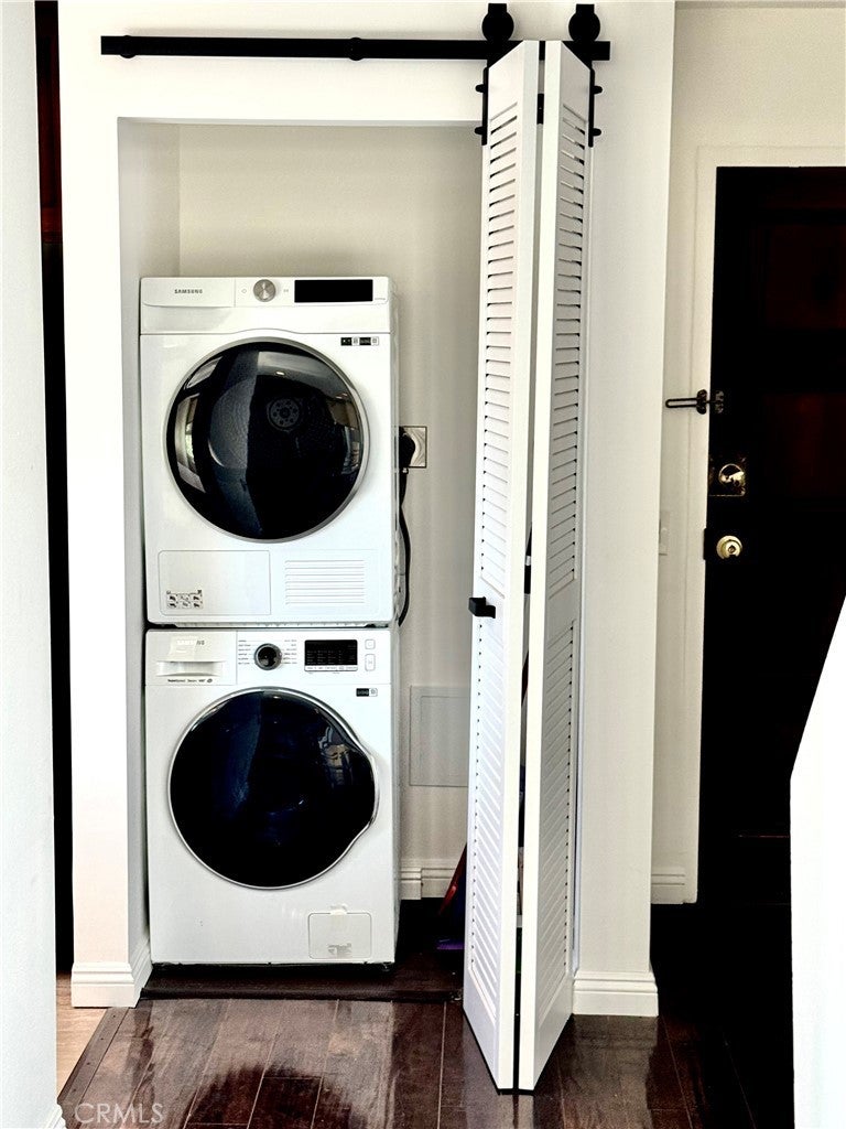 Top floor corner unit tucked away in the back of a secured gated 15 condo community. Offering unobstructed views of West Hollywood/Century city. Bottom floor brings you into an open floor living/dining room layout with updated kitchen and all new stainless steel appliances. In unit stackable washer/dryer, vinyl dual pane windows with new vinyl slider door leading to small balcony. Top floor bedrooms have new Carrier brand mini splitters for heating and cooling. Fully remodeled primary bathroom and updated guest bathroom. Recessed lighting throughout both floors. 2 side by side parking spots. Short stroll to both rainbow district for nightlife (Abbey, Roccos, Hi Tops, TomTom, Beaches) and renowned Sunset strip for eateries (Dialog Cafe, Night+Market, Blue Birdy) and entertainment (Whiskey a go go, Viper room, the Roxy). Affordable hoa dues includes water, trash and landscaping, community laundry and small storage. Everything at your fingertips that prime WeHo has to offer making this an exceptional buy. Welcome home!