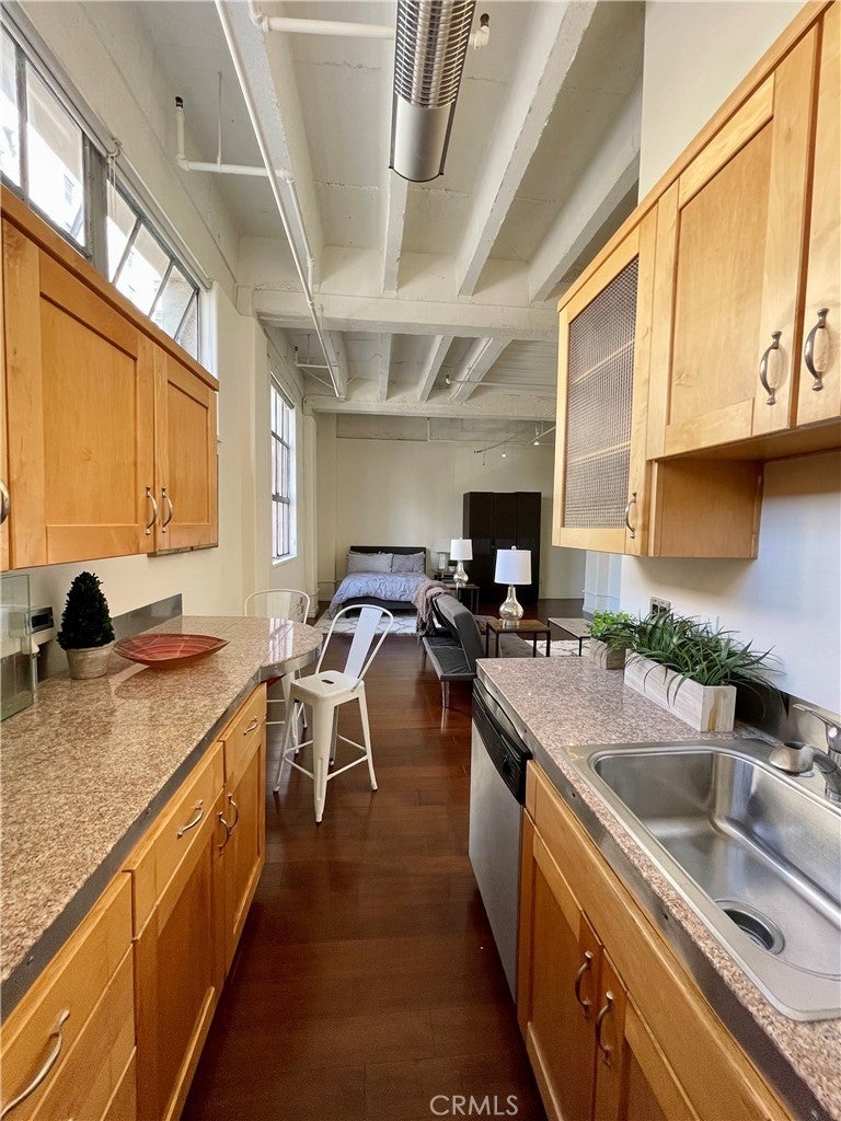 Conveniently located at the SB Grand, this open loft with fantastic urban industrial character is located on Broadway in the Historic Core. It features high, open concrete ceilings and stained concrete floors throughout. Kitchen boasts solid wood cabinets, stainless steel appliances and granite counters. Bathroom has washer/dryer hookups and oversized soaking tub. The location is unparalleled, situated just minutes walk from The Bloc, Grand Central Market, Ralphs, Whole Foods and the best dining and nightlife Downtown LA has to offer. Amenities include 24-hr security front desk concierge/security guard, fitness room, rooftop pool, hot tub and rooftop lounge area with panoramic views of the Downtown Los Angeles skyline. No pet restrictions.