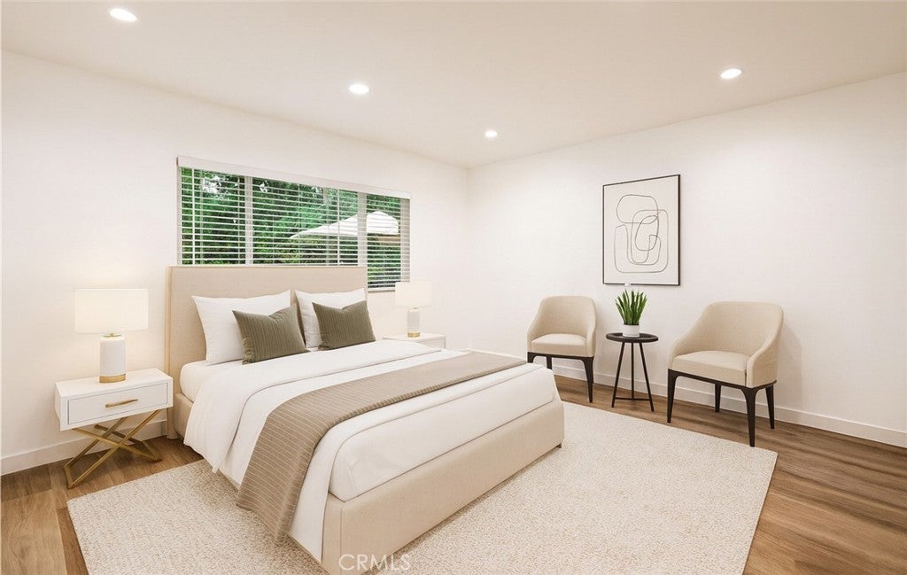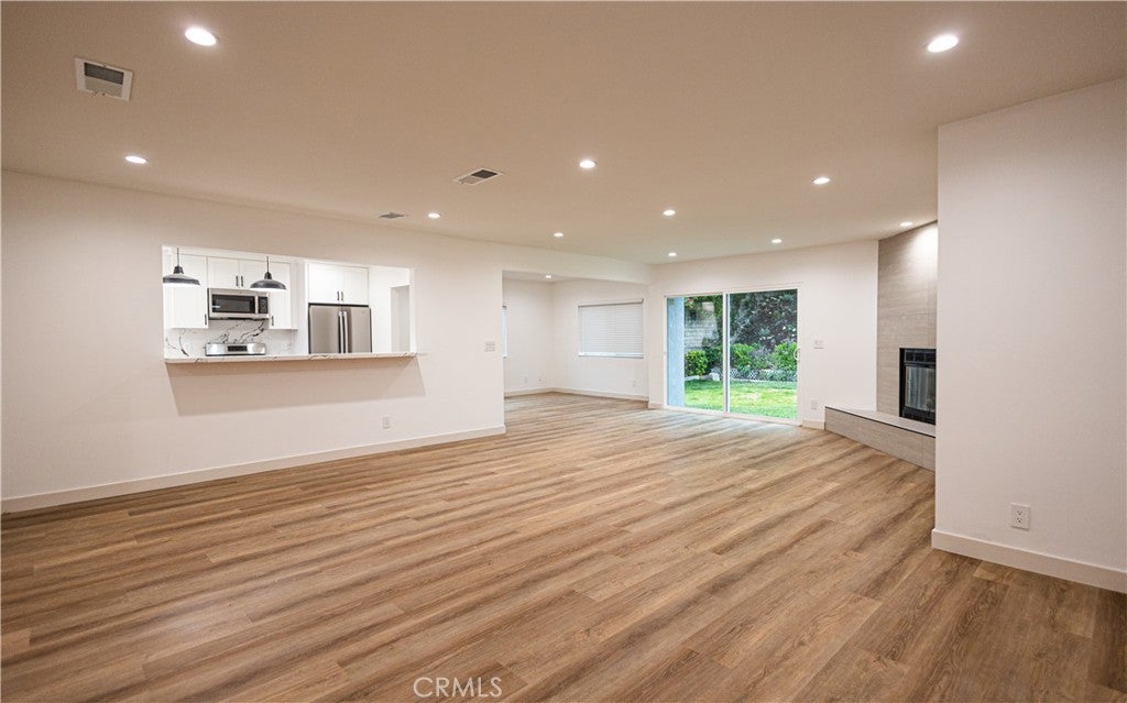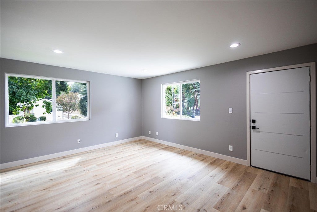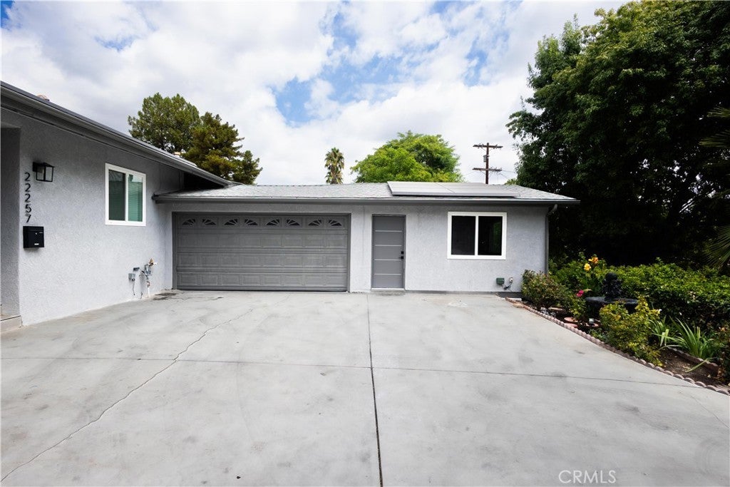 Welcome to this stunning, completely remodeled single-story home plus a guest unit located in the prime South of the Boulevard area of Woodland Hills. Boasting 4 spacious bedrooms and 2 bathrooms with nearly 2,000 sq ft of beautifully designed living space, the home is the perfect blend of style and comfort. The fully remodeled kitchen is a chef’s dream, featuring white shaker cabinets, sleek stainless steel GE appliances, large farm sink, a center island with seating and a peninsula that seamlessly flows into the expansive family room, ideal for both entertaining and relaxing. Gorgeous new wood-like wide plank flooring runs throughout, complementing the fresh, modern feel of the home. With brand new windows and sliding doors, the home is filled with natural light. Step outside to a private, large yard with plenty of space to unwind, a grassy area for play, and a newly designed BBQ area—perfect for hosting or enjoying a quiet evening. The home also has an attached addition (approx. 330 sq ft) with a separate entrance perfect for guests, extended family, or a home office. A brand new washer/dryer are also installed in the 2 car garage. The home has leased solar panels which are beneficial in reducing utility bills. All of this and it's located within the Woodland Hills Charter Elementary School District.