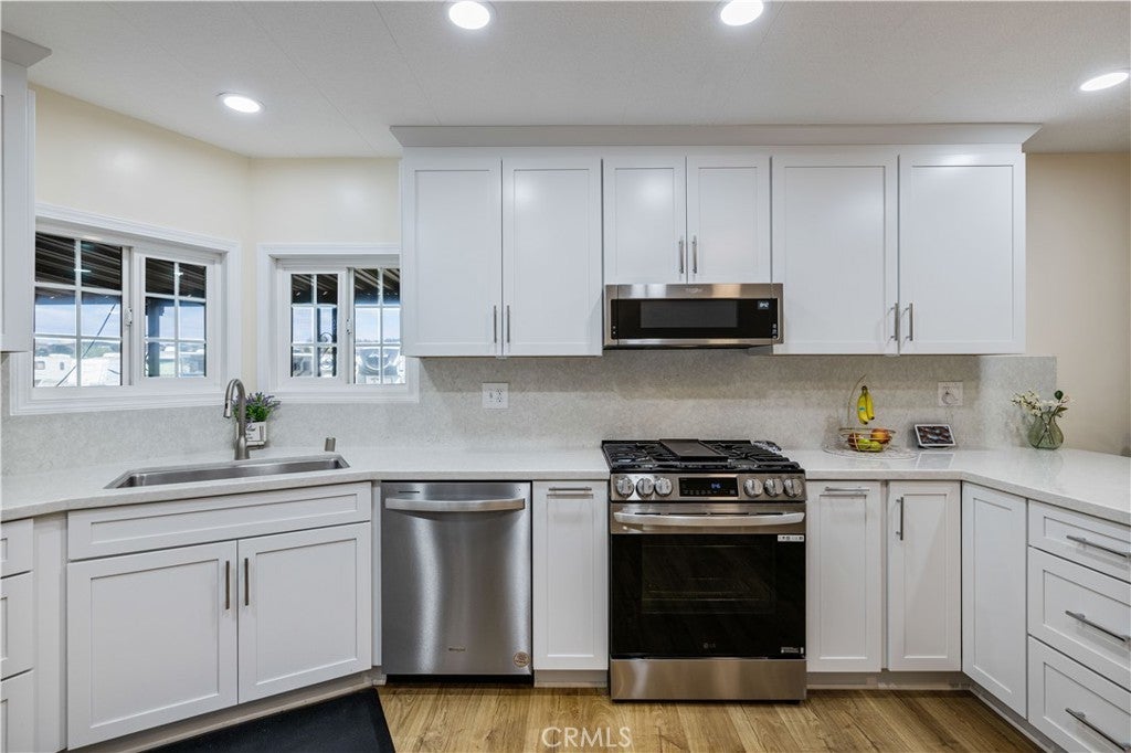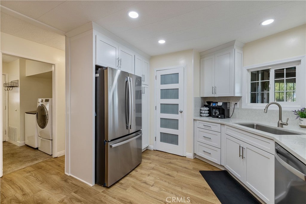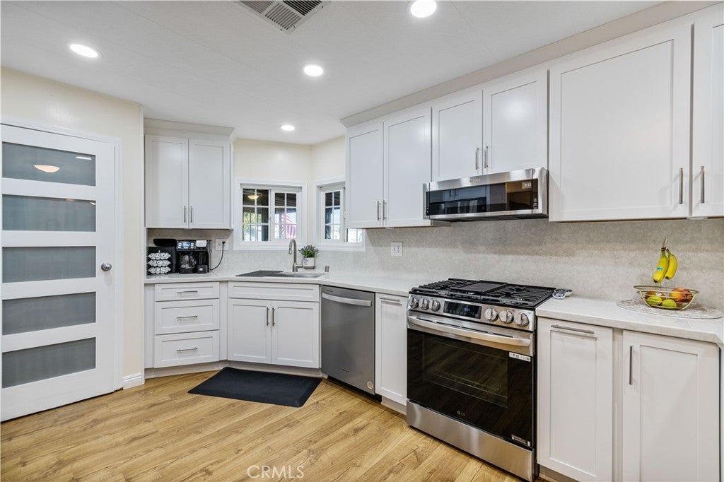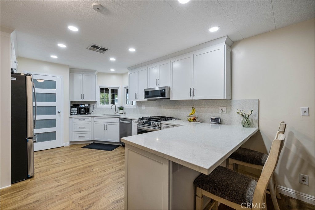 Home Affordability is Back! Welcome to one of the best lots in the highly desirable Greenbriar 55+ gated community in Santa Clarita! Tucked away at the end of the street with no neighbors on one side, this home offers privacy, space, and a lifestyle you’ll love. Inside, you’ll find a brand-new designer kitchen with quartz countertops, custom backsplash, sleek new cabinets, and new stainless steel appliances. The expanded layout features two spacious family rooms, updated LVP flooring throughout, and plenty of natural light — perfect for both entertaining and everyday comfort. The primary suite is your personal retreat, complete with a private patio and spa-like updated bathroom. Step outside to a second covered patio surrounded by greenery and fruit trees, along with a low-maintenance wraparound yard designed for easy outdoor living. Upgrades include: new PEX plumbing, new roof, energy-efficient windows, updated HVAC system, and remodeled bathrooms with modern tile and vanities. Covered parking for 2+ cars plus extra storage makes this home as functional as it is beautiful. As a Greenbriar resident, enjoy resort-style amenities: sparkling pools, pickleball, bocce ball, parks, and a vibrant social community. This move-in ready home truly checks every box — privacy, upgrades, and affordability all in one!