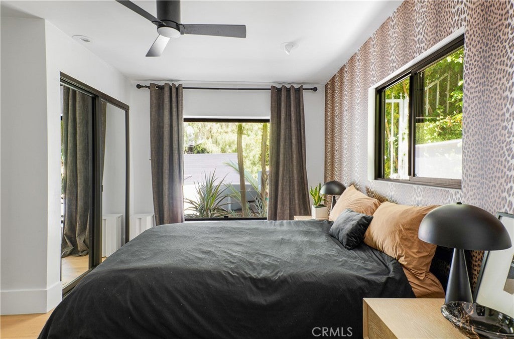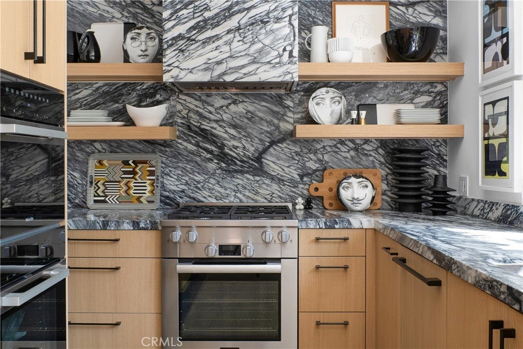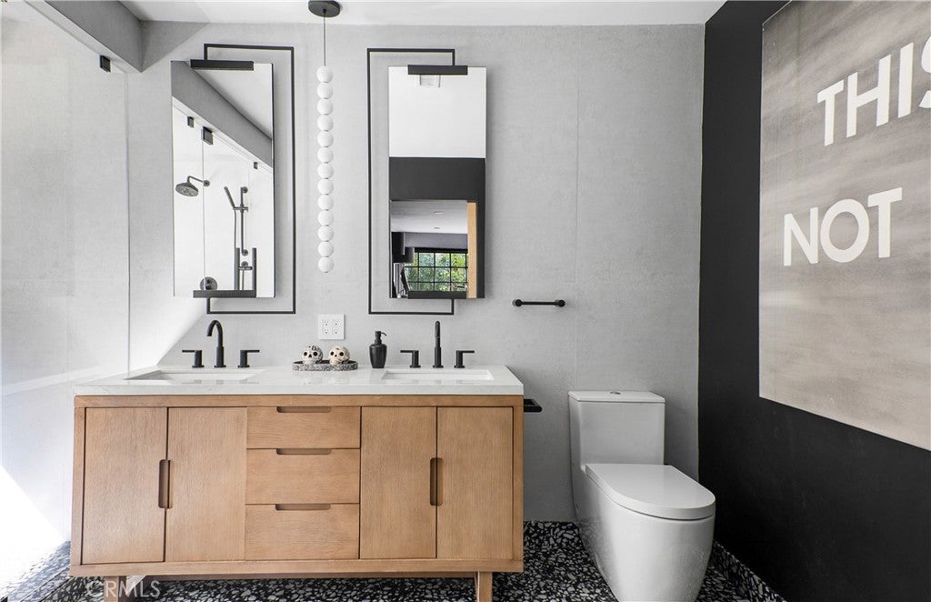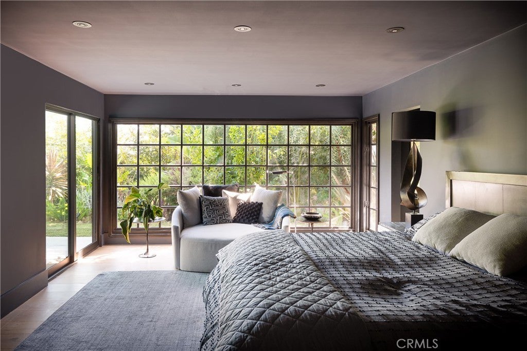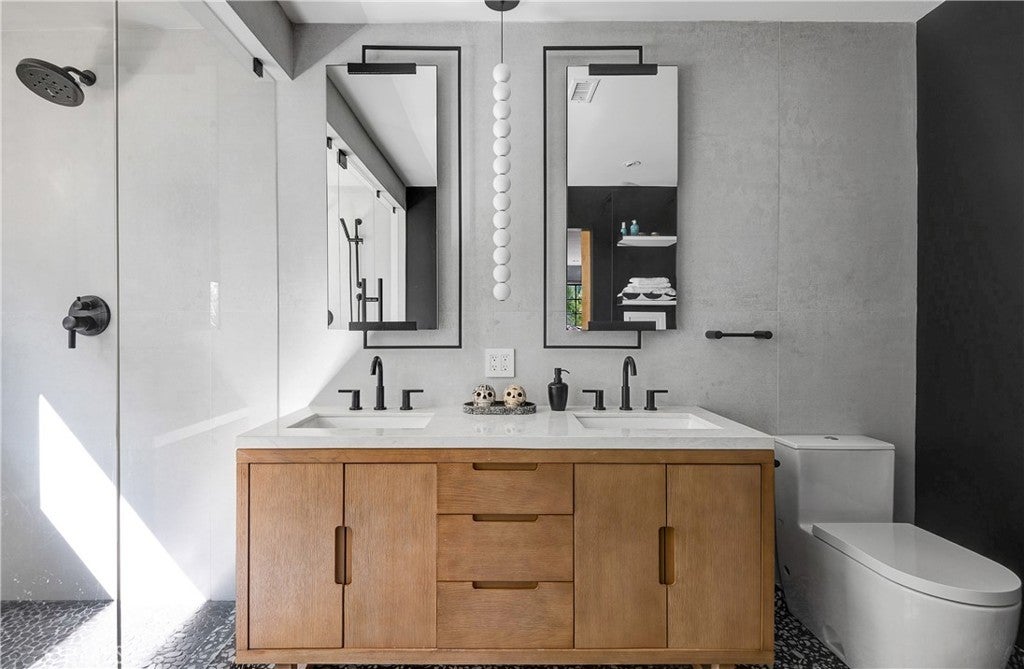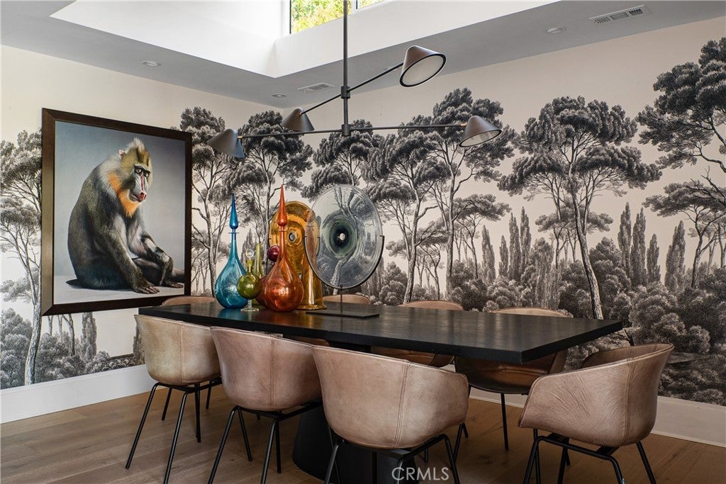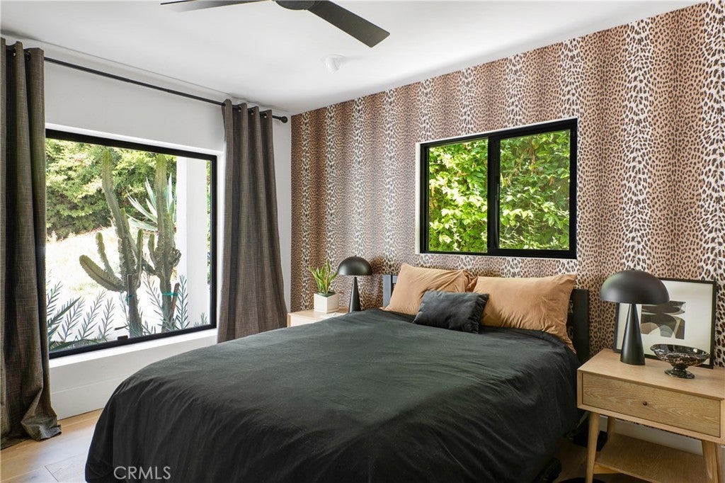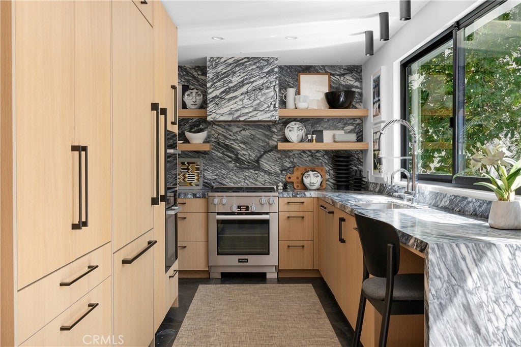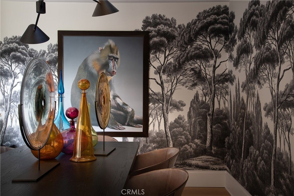 Perched on a serene cul-de-sac just above Sunset Boulevard in the coveted Bird Streets, this meticulously redesigned single-story residence blends high-end luxury with effortless indoor/outdoor living. Spanning approximately 2,300 sq ft on an expansive 8,400+ sq ft lot, the home features 3 bedrooms, 4 bathrooms, and a versatile den, all thoughtfully laid out for comfort and entertaining. Inside, a sun-filled open floor plan adorned with high end finishes, custom Parisian wall coverings, recessed lighting, and designer details throughout. The gourmet kitchen boasts top-of-the-line Miele appliances and sleek marble countertops, flowing seamlessly into the formal living room with an elegant statement fireplace. The spacious primary suite offers a custom closet, spa-like bathroom with a walk-in steam shower, spa tub, sauna, and dual custom vanities. Each bathroom has been exquisitely upgraded with luxurious materials and finishes. Outdoors, the beautifully landscaped flat backyard features a sparkling pool and patio space perfect for entertaining, all set against tranquil treetop canyon views. Additional highlights include state-of-the-art surround sound, security camera system, and newly painted interiors. Rare for the area, the property includes a gated private driveway with 4 parking spaces. Ideally located just minutes from the Sunset Strip, Soho House, Sunset Plaza, and Beverly Hills, this Hollywood Hills gem offers style, privacy, and convenience in one stunning package.