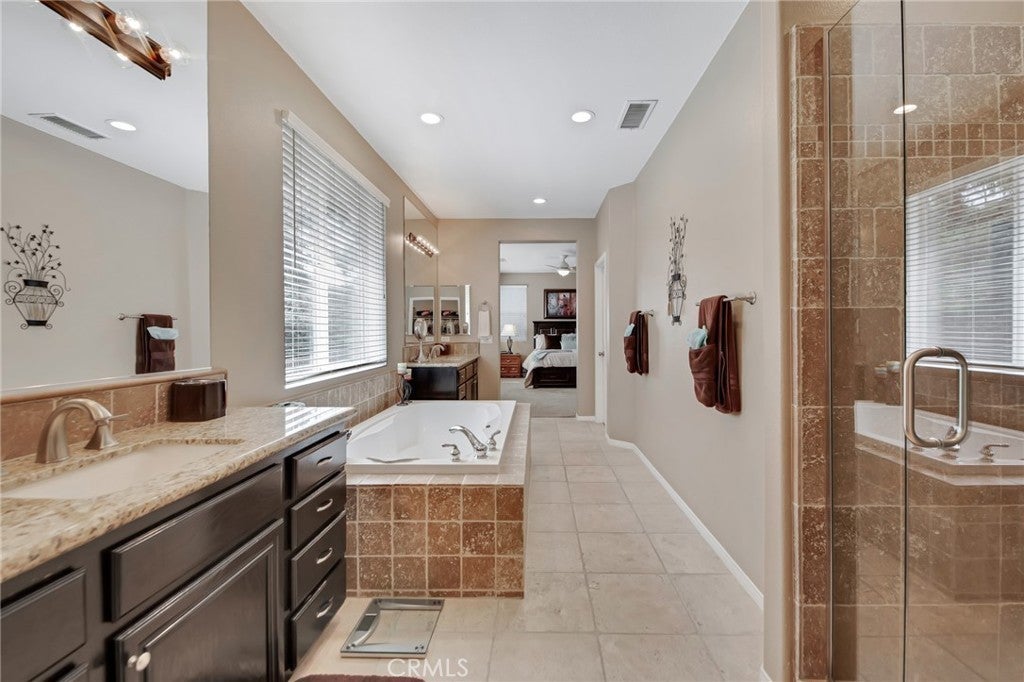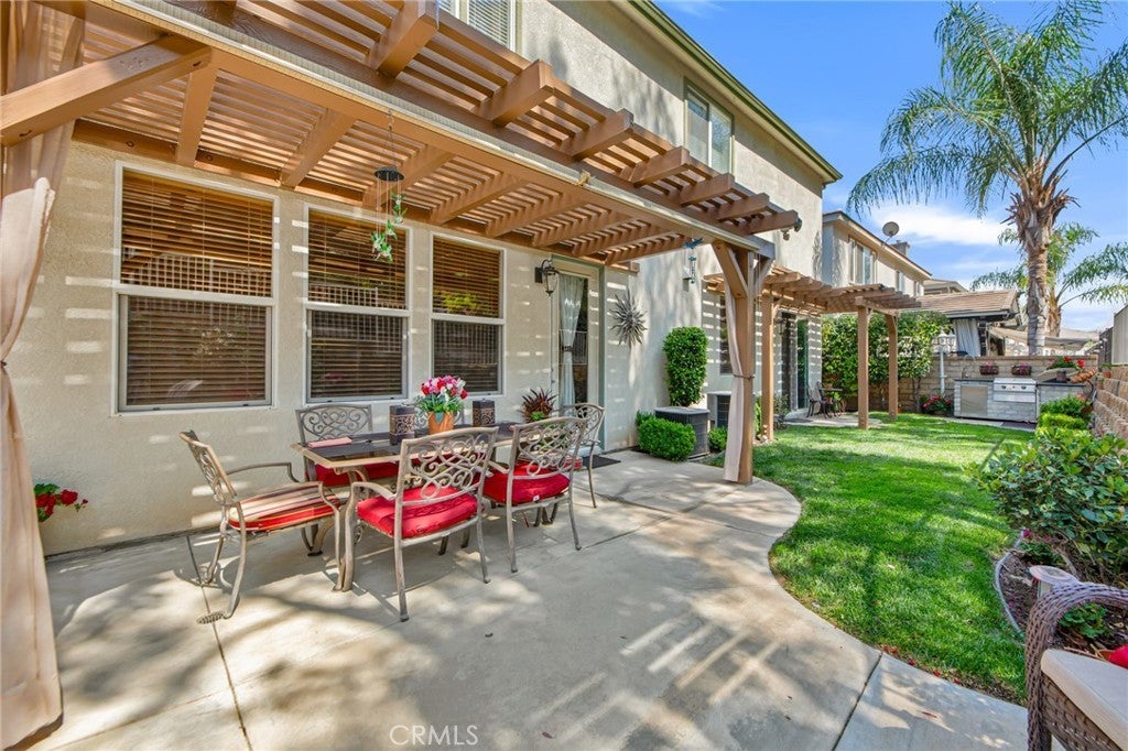 Look no further! Located in the most treasured area of Valencia Copperhill with No Mello Roos and Low HOA! This home offers a bedroom and shower downstairs. The heart of the home is an open concept gourmet kitchen with a spacious island, S/S appliances, breakfast nook and breakfast counter great for entertaining along with a walk-in pantry. The adjacent family room offers a rich balance of surround sound, a cozy fireplace and ceiling fan. The second floor hosts the grand primary suite including a large walk-in closet, large in suite bathroom with separate sinks and a walk-in shower with frameless glass doors. Down the hall you have 3 more bedrooms all with ceiling fans and mirrored wardrobe closet doors. The 2nd floor also features a built in office/tech area, laundry room and walk-in linen closet. Also includes a whole house fan with a multi-zone HVAC system. Step into the tranquil and beautifully manicured backyard to enjoy your evenings with the built in natural gas fire pit. The BBQ set-up includes a mini fridge and grill. The HOA amenities offer a pool, spa, play area and BBQ/Picnic area for all to enjoy. Walking distance to Valencia High. Conveniently located near the freeway, shopping, dining and miles of walking/biking trails.