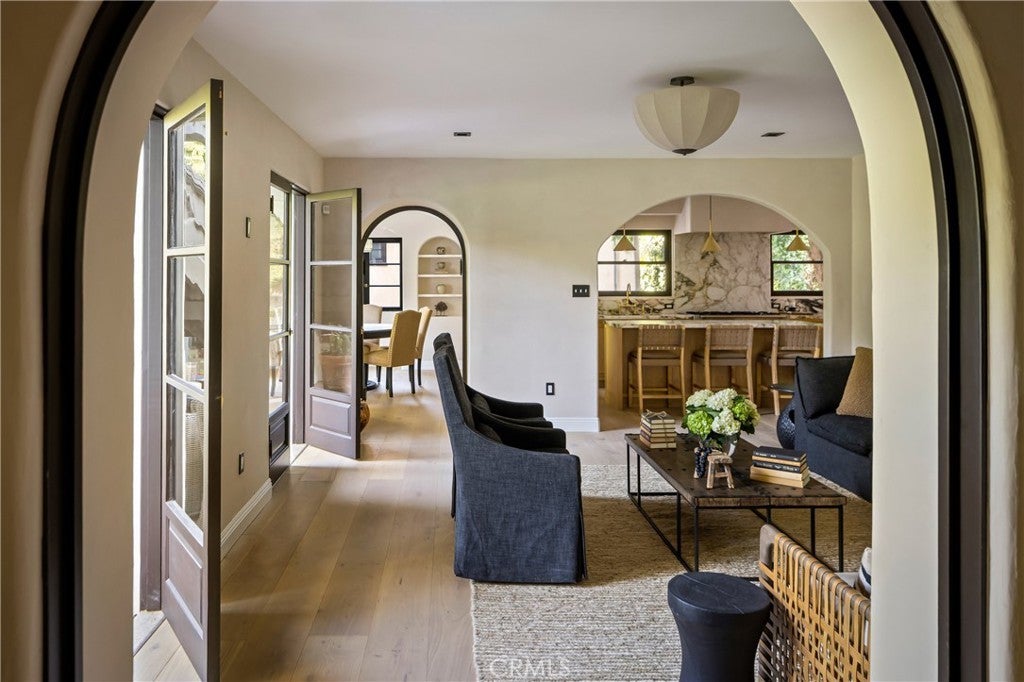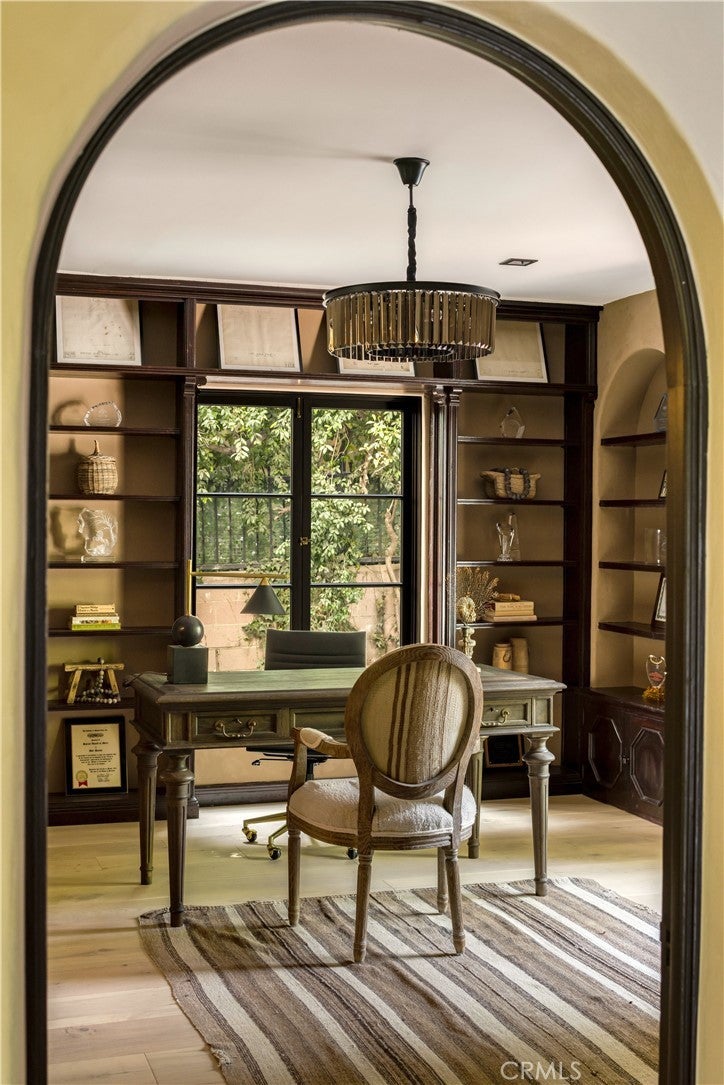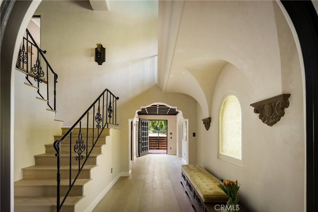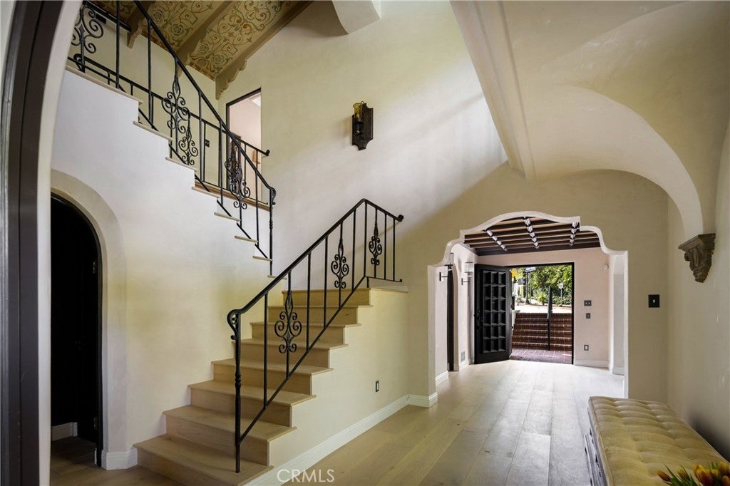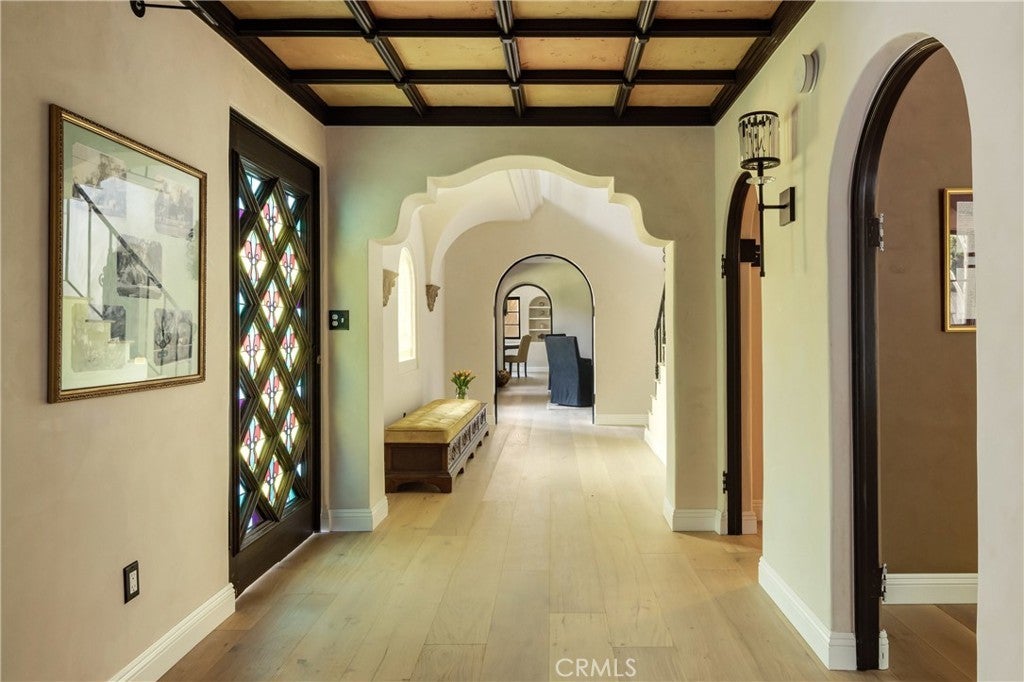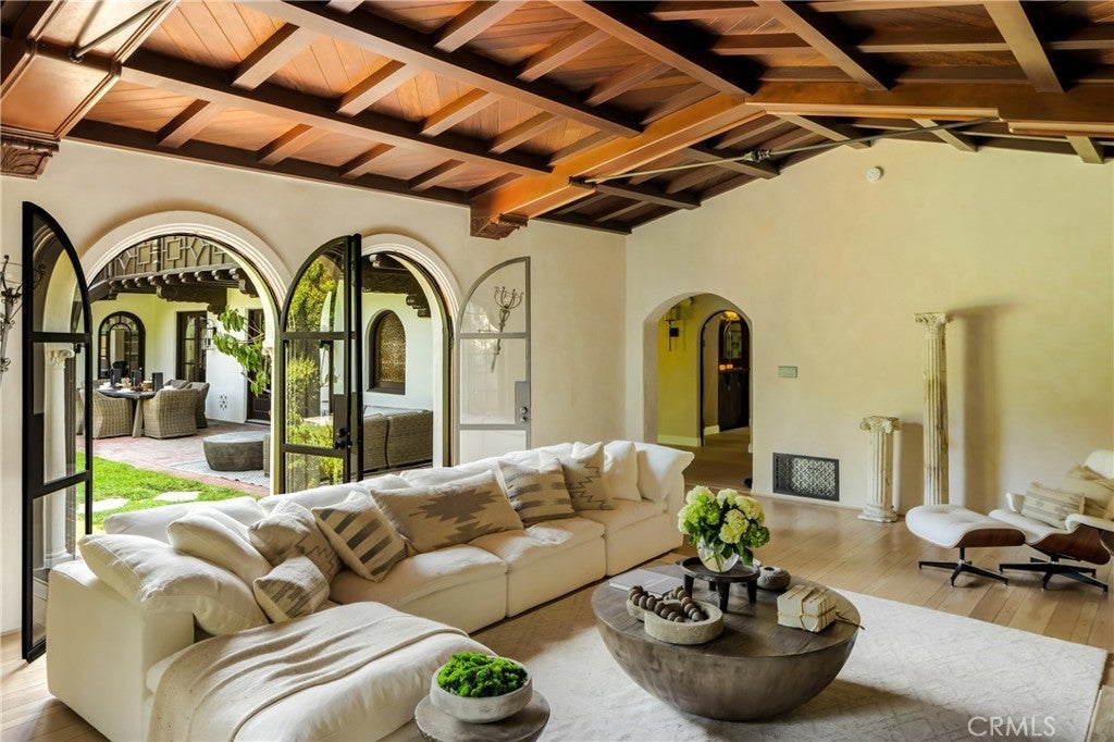 Welcome to a once-in-a-generation opportunity to own one of Hollywood's most iconic estates. Nestled in coveted Outpost Estates, this 1929 Spanish Colonial Revival masterpiece was the longtime residence of legendary host Bob Barker. Restored and reimagined by acclaimed designer Julia Dempster, it embodies the romance of Old Hollywood with the sophistication of contemporary luxury. Built atop the site of "The Outpost," the adobe home that marked Hollywood’s birth, this landmark is Los Angeles Historic-Cultural Monument No. 673. With a provenance as rich as its design, 1851 Outpost Drive is more than a home; it is a chapter of Los Angeles history. The estate features six spacious bedrooms, six baths, and a powder room. A 601 sqft basement includes a sauna and two additional rooms ideal for guests, office, or gym. A stylish home office with en-suite bath doubles as a guest suite or studio. Original details have been preserved, from the fresco ceiling and arched doorways to stained-glass windows and the iconic bar in the wood-paneled library. The dramatic fireplace and sweeping interiors evoke Hollywood grandeur. Dempster’s restoration brings natural textures and warmth, with Roman clay and limewash finishes enhancing the light. The chef's kitchen is a masterclass in form and function, with custom oak cabinetry, Thermador appliances, and breathtaking Viola Monet marble. The home offers two primary suites: the main with dream walk-in closet and his-and-hers baths, and a second with dual closets for guests or family. Bathrooms showcase book-matched travertine showers and marble thresholds. European oak floors run seamlessly, while hand-selected Zia tiles add character to the secondary baths. An infrared sauna offers a serene wellness retreat. Outside, the grounds feel like a private resort: pool, expansive lawn, and a towering oak tree create a sanctuary just moments from Runyon Canyon, the Sunset Strip, and the pulse of Hollywood. With its location, history, and world-class design, 1851 Outpost Drive is not simply a residence; it is a legacy awaiting its next custodian.