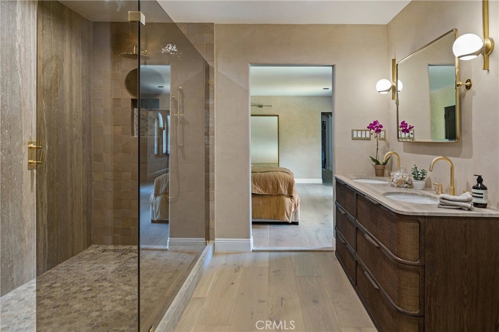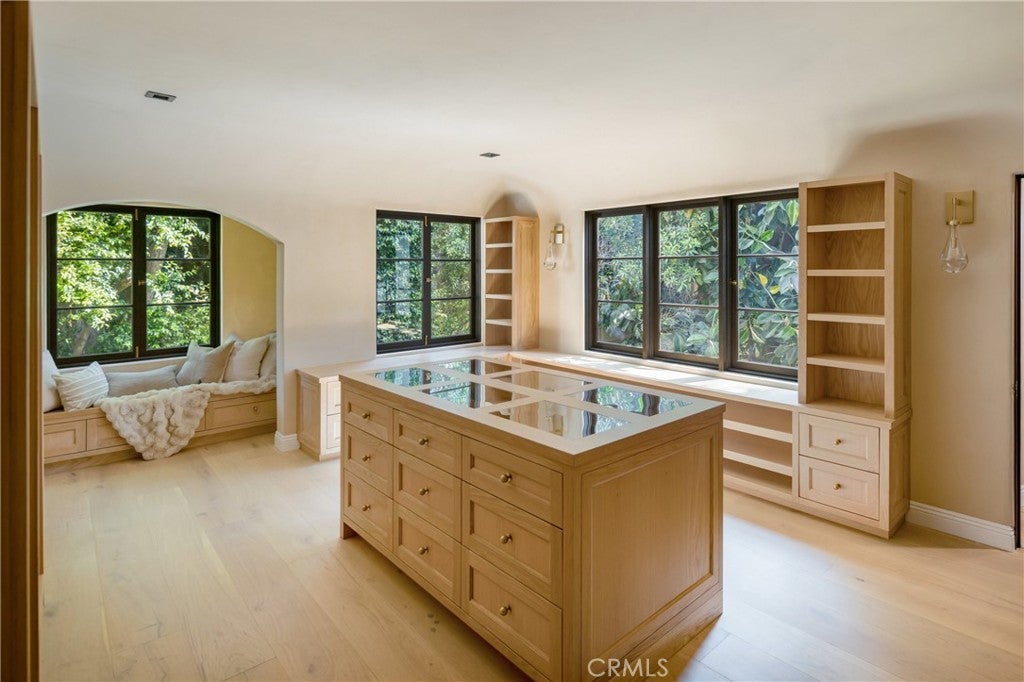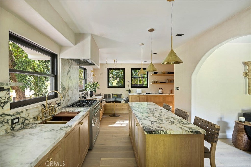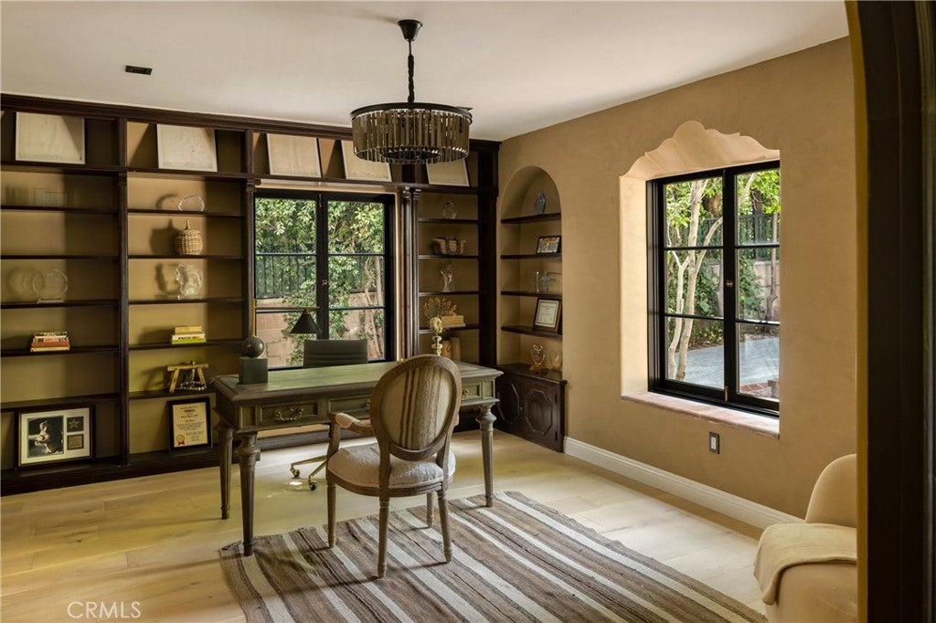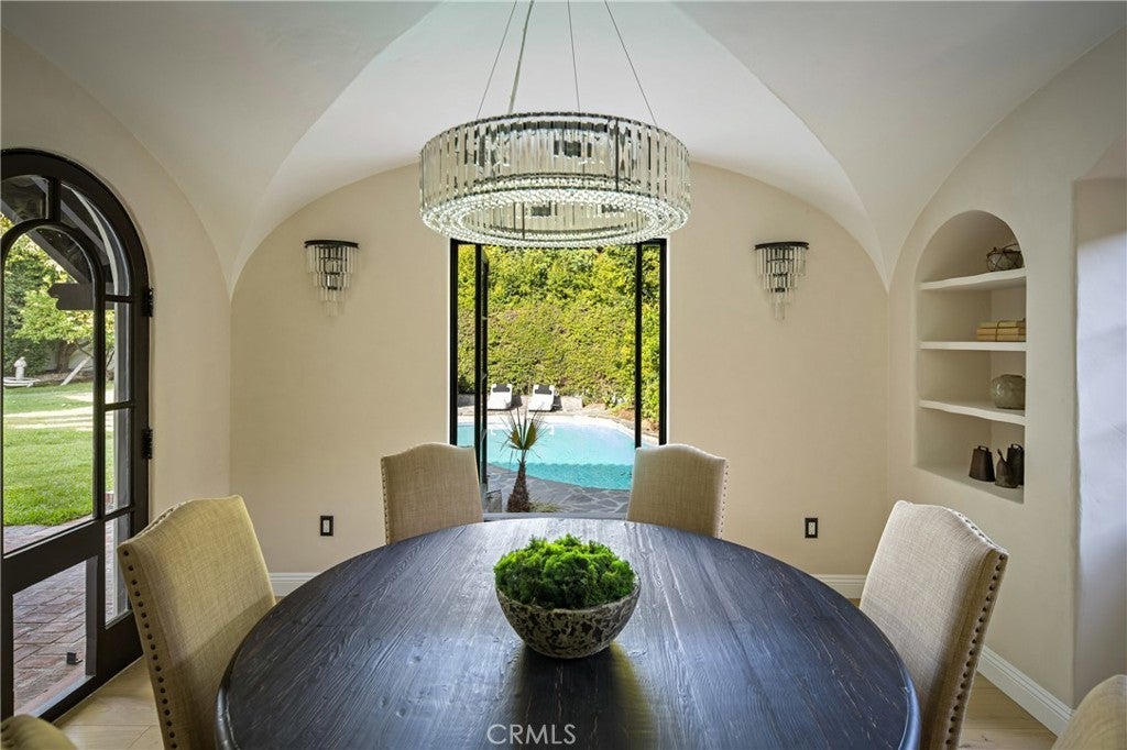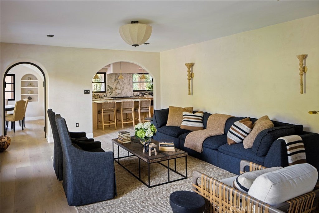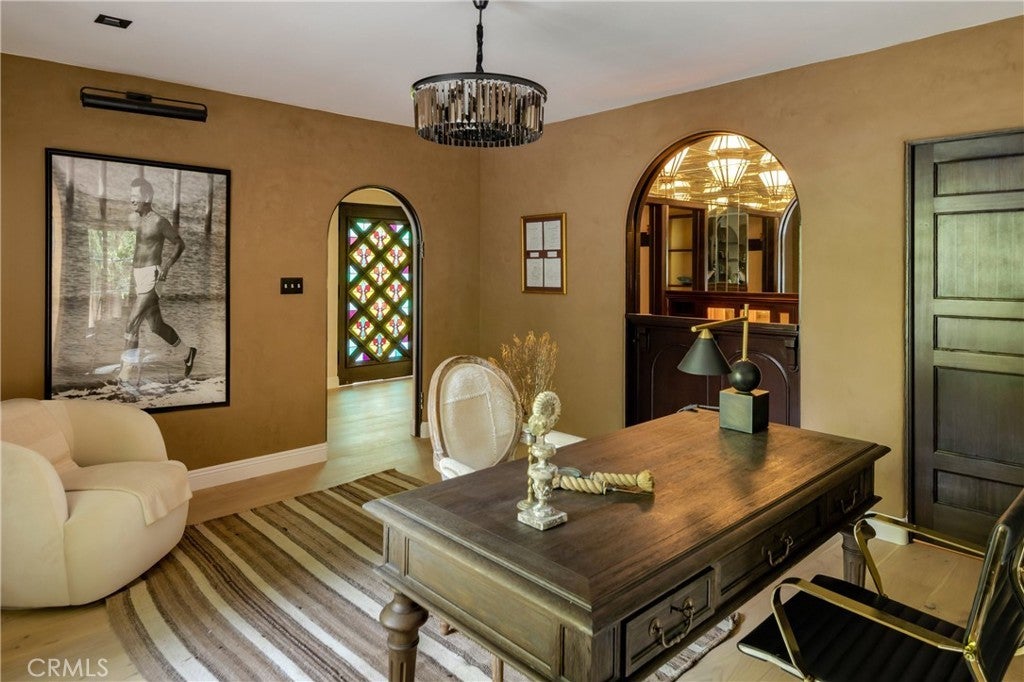 Welcome to a once-in-a-generation opportunity to own one of Hollywood's most iconic estates. Nestled in coveted Outpost Estates, this 1929 Spanish Colonial Revival masterpiece was the longtime residence of legendary host Bob Barker. Restored and reimagined by acclaimed designer Julia Dempster, it embodies the romance of Old Hollywood with the sophistication of contemporary luxury. Built atop the site of "The Outpost," the adobe home that marked Hollywood’s birth, this landmark is Los Angeles Historic-Cultural Monument No. 673. With a provenance as rich as its design, 1851 Outpost Drive is more than a home; it is a chapter of Los Angeles history. The estate features six spacious bedrooms, six baths, and a powder room. A 601 sqft basement includes a sauna and two additional rooms ideal for guests, office, or gym. A stylish home office with en-suite bath doubles as a guest suite or studio. Original details have been preserved, from the fresco ceiling and arched doorways to stained-glass windows and the iconic bar in the wood-paneled library. The dramatic fireplace and sweeping interiors evoke Hollywood grandeur. Dempster’s restoration brings natural textures and warmth, with Roman clay and limewash finishes enhancing the light. The chef's kitchen is a masterclass in form and function, with custom oak cabinetry, Thermador appliances, and breathtaking Viola Monet marble. The home offers two primary suites: the main with dream walk-in closet and his-and-hers baths, and a second with dual closets for guests or family. Bathrooms showcase book-matched travertine showers and marble thresholds. European oak floors run seamlessly, while hand-selected Zia tiles add character to the secondary baths. An infrared sauna offers a serene wellness retreat. Outside, the grounds feel like a private resort: pool, expansive lawn, and a towering oak tree create a sanctuary just moments from Runyon Canyon, the Sunset Strip, and the pulse of Hollywood. With its location, history, and world-class design, 1851 Outpost Drive is not simply a residence; it is a legacy awaiting its next custodian.
