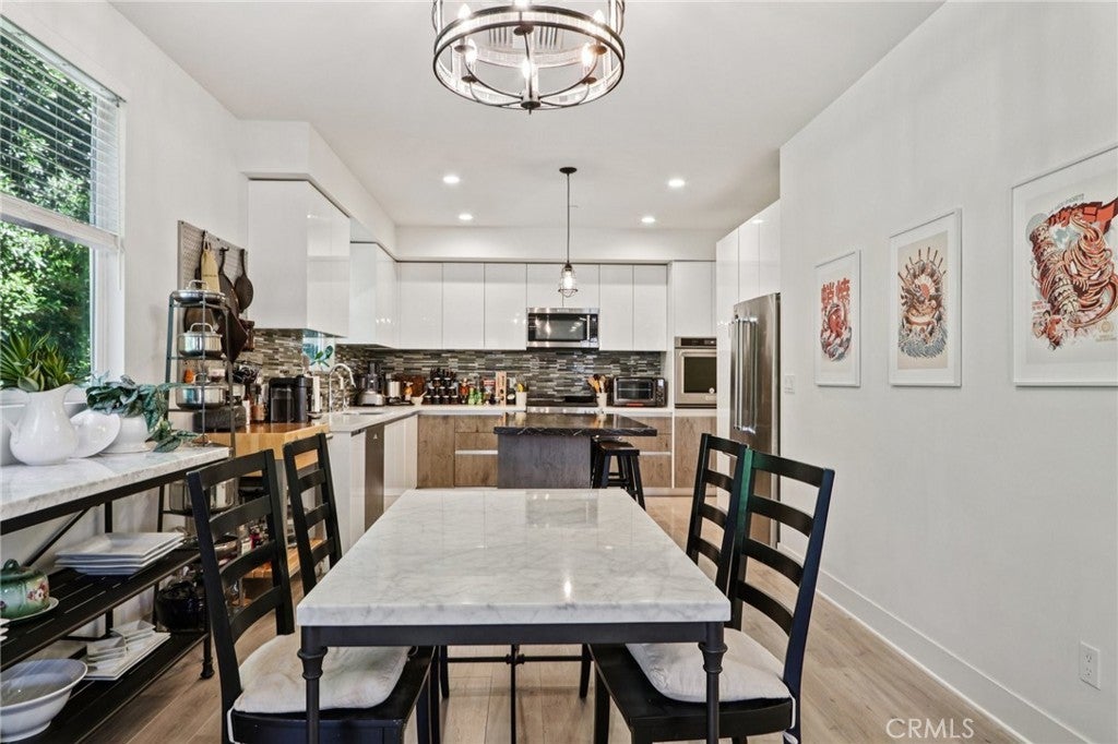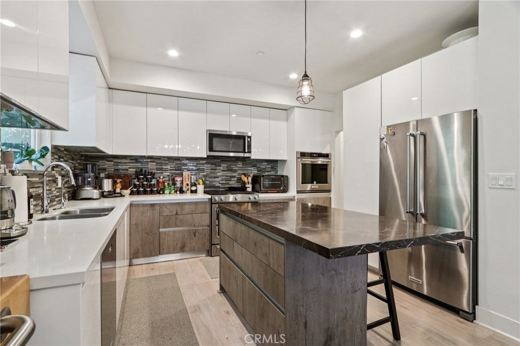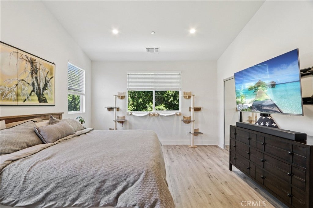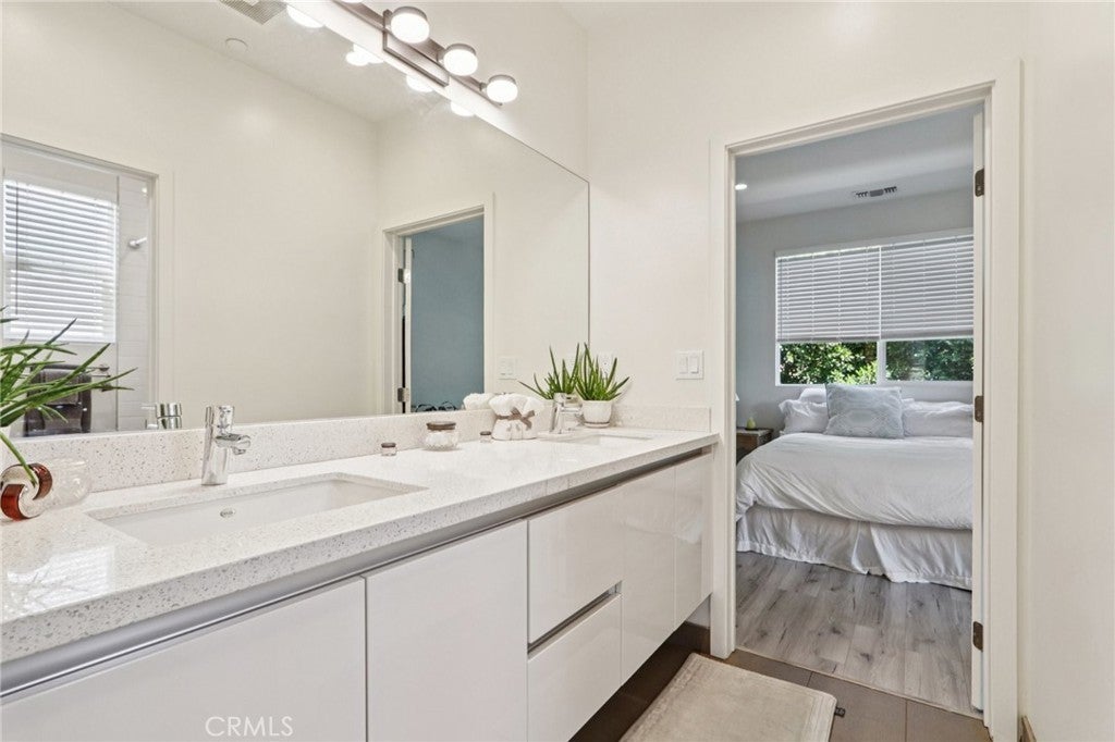 Welcome to Cooper Place! This newer-built traditional Modern Farmhouse features 4 bedrooms, 3 bathrooms, and over 2,500 sqft of living space, all sitting on a beautifully landscaped lot just under 6,000 sqft of land. A charming foyer welcomes you into the open-concept living room, dining area, and modern chef’s kitchen complete with a large center island, quartz countertops, and stainless steel appliances. Upstairs, you’ll find a convenient laundry room and the spacious primary suite with vaulted ceilings, a walk-in closet, and a luxurious en-suite bathroom featuring dual sinks, a walk-in shower, and a soaking tub. Step outside to the private entertainer’s backyard surrounded by mature trees, offering plenty of space to add a pool. Additional highlights include a downstairs bedroom and full bath, laminate flooring, and recessed lighting throughout. The home is tucked away on a private cul-de-sac with a large driveway and incredible privacy. Bringing South of Ventura vibes to Winnetka.