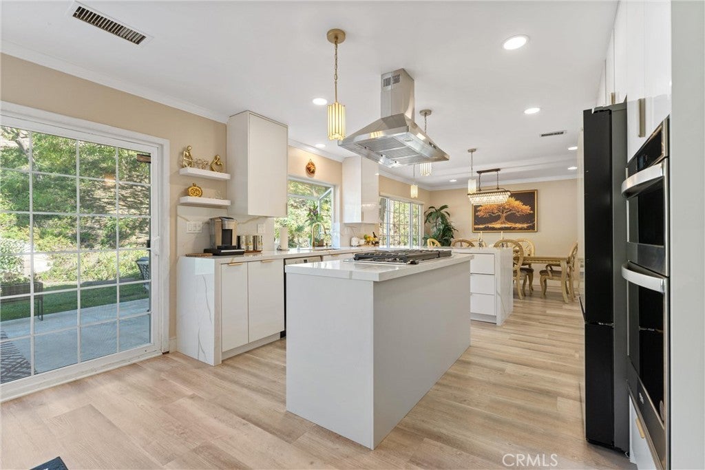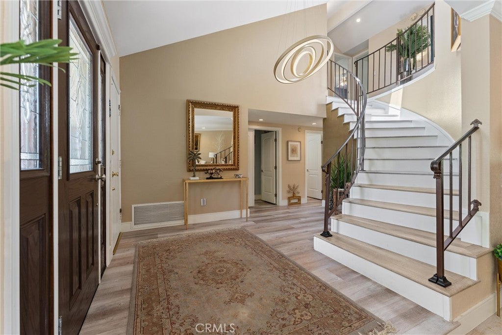 Welcome to 28801 Barragan Street — a beautifully updated two-story home offering 5 bedrooms, 3 bathrooms, and 2,347 sq ft of living space on a generous 10,028 sq ft lot, located in one of Agoura Hills’ most desirable neighborhoods. Step inside to discover a bright and inviting interior with new flooring throughout, new recessed lighting, a spacious formal foyer, and thoughtfully designed living spaces. At the heart of the home is a stunning, fully remodeled gourmet kitchen, featuring quartz countertops, a breakfast bar, brand-new stainless steel appliances, and a walk-in pantry — blending modern design with everyday functionality. The main floor includes a bedroom and a beautifully upgraded bathroom, while upstairs you'll find four additional bedrooms, including a versatile bonus suite that connects to a spacious attic-style bonus room — currently used as a music studio and gym, ideal for a home office, playroom, or creative space. The primary suite is a peaceful retreat with a walk-in closet, private balcony, and mountain views. Throughout the home, French-style windows allow natural light to pour in, especially across the downstairs living areas and select bedrooms, enhancing the home’s open, airy atmosphere. Additional highlights include a fireplace in the family room, three-car garage, and a charming gated entry. The backyard offers a tranquil setting for entertaining or relaxing with mature fruit trees — pomegranate, lemon, tangerine, and jasmine — perfect for outdoor enjoyment. Located in the sought-after Las Virgenes Unified School District, with multiple top-rated schools and a neighborhood park just minutes away. This is a rare opportunity to own a beautifully upgraded, move-in-ready home in a prime Agoura Hills location.