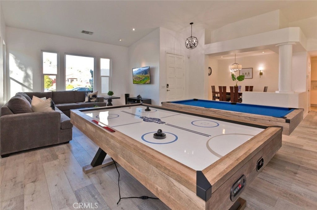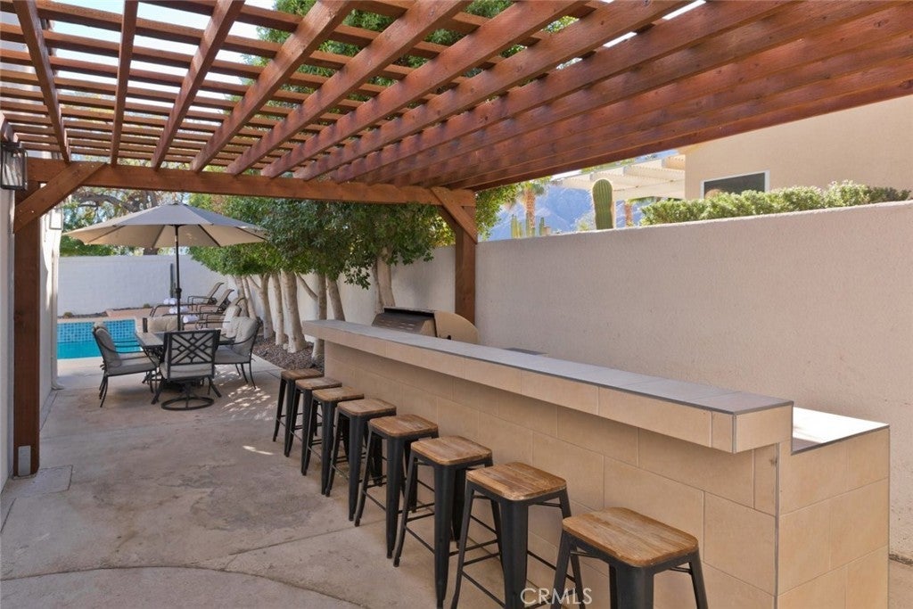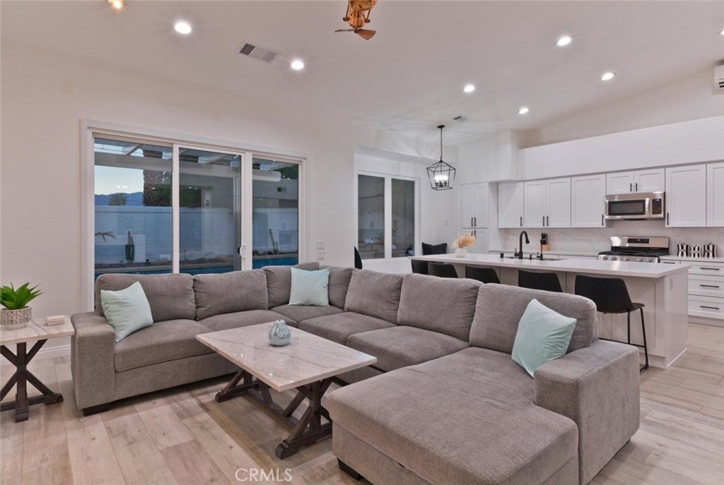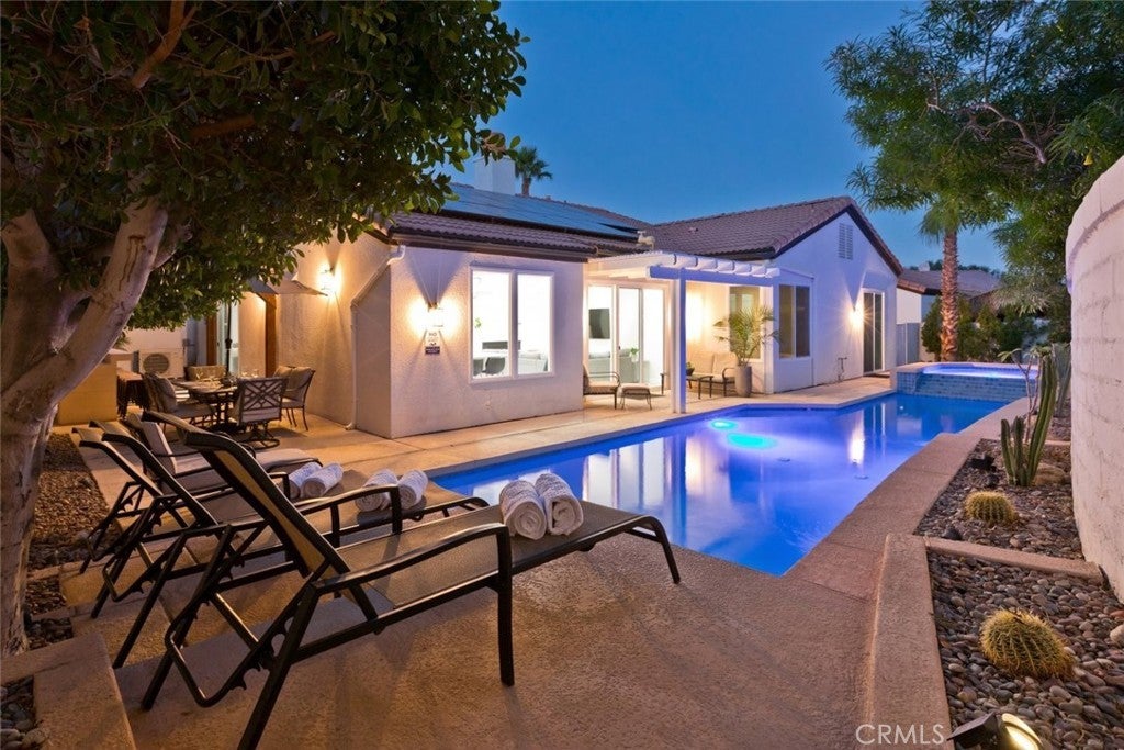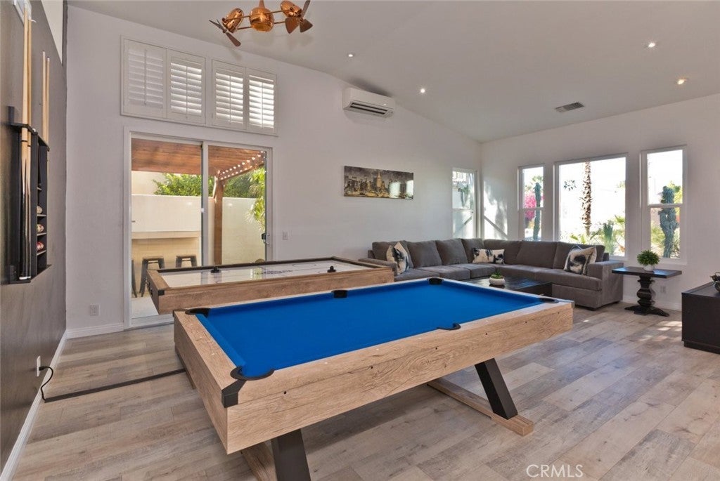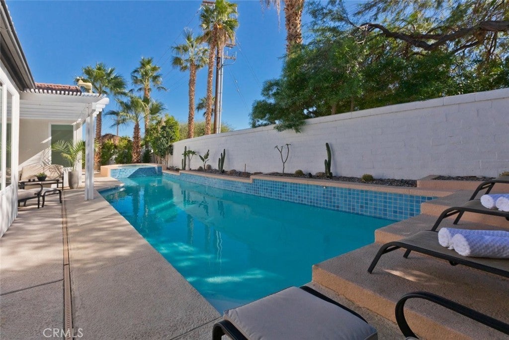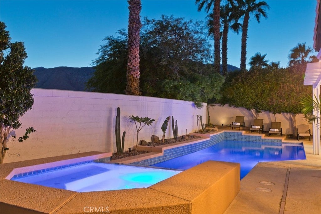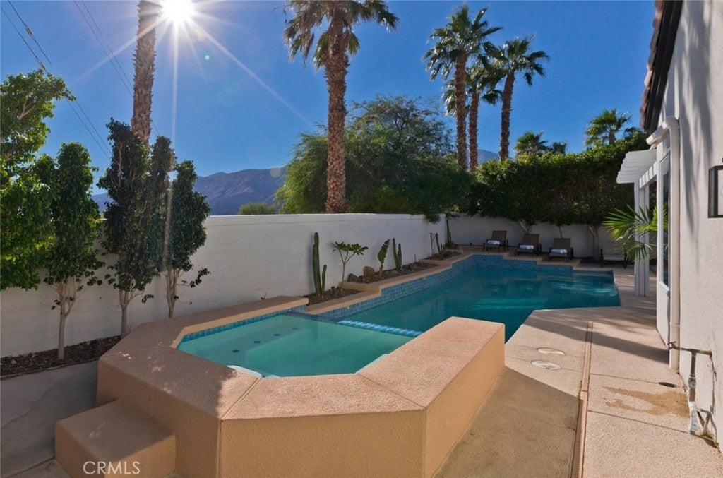 This exquisite home features 4 bedrooms, 3 bathrooms, and 2208 sq ft of elegantly designed living space, all set on a generous 10018 sq ft lot. Upon entering, you are welcomed by a bright and open floor plan that includes a large living room with a cozy fireplace, an ideal spot for relaxing after a long day. Adjacent to the living room, the chefs kitchen offers an expansive island and contemporary finishes that inspire culinary creations. A formal dining room provides the perfect setting for hosting dinners and gatherings. The bright and airy family room, combined with a game area featuring a full size pool table and air hockey table, adds an extra layer of entertainment and enjoyment. The home includes 4 spacious bedrooms with ceiling fans and 3 well appointed bathrooms for added convenience. Outside, your private oasis is enclosed by privacy walls and enhanced with palm trees. The backyard is designed for relaxation and entertainment, featuring a sparkling pool, spa, outdoor barbecue area, and plenty of space to embrace the desert lifestyle. Located in one of Palm Springs most desirable neighborhoods, this residence offers close proximity to dining, shopping, and entertainment. Do not miss the chance to experience desert luxury at its finest.