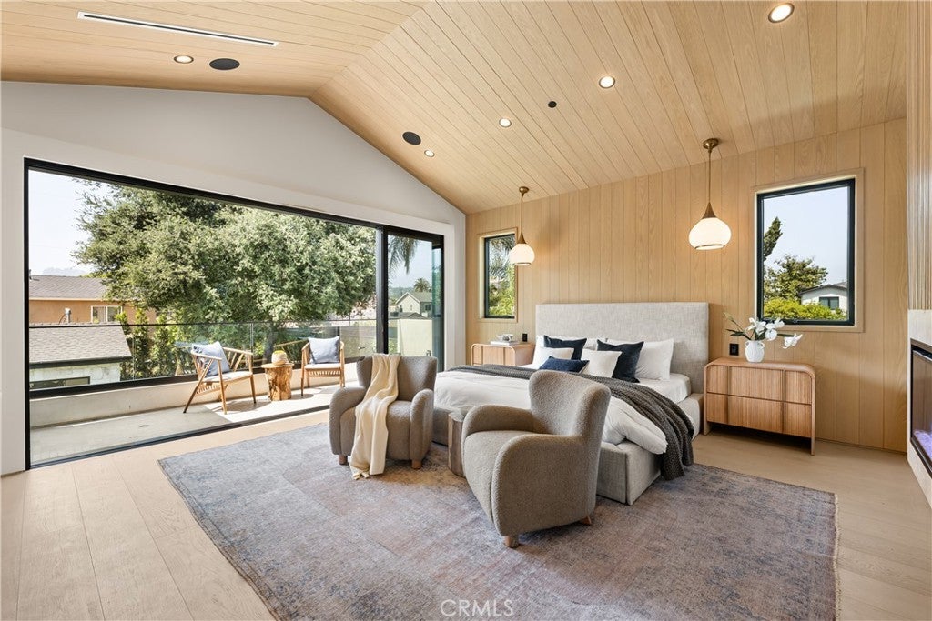 Beamed Ceilings, Balcony, Cathedral Ceiling(s), High Ceilings, Open Floorplan, Pantry, Recessed Lighting, Wired for Sound, Primary Suite, Walk-In Closet(s), Dry Bar