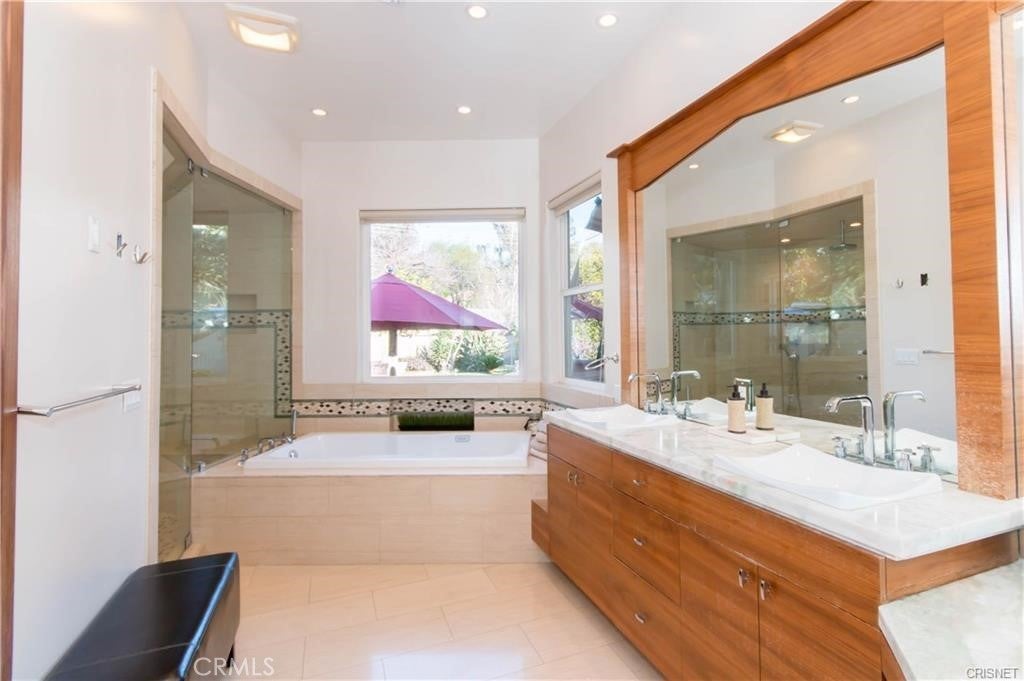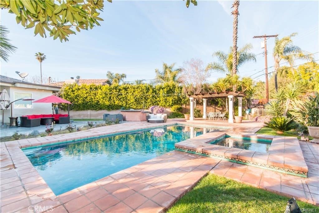 Welcome to this stunning light and bright newer construction home located in the highly sought after South of the Blvd Woodland Hills Community. This home features a main house PLUS a huge new build detached guest house with an additional 2 bedrooms and 2 bathrooms. Set on huge private resort like grounds, this amazing property is a relaxing oasis perfect for family gatherings and making memories. Featuring all things luxury, this home has it all! Some of the wonderful amenities of this home incude: high ceilings, designer fixtures, high end Thermador appliances, open and spacious floor plan, living room with a wood burning fireplace, sparkling pool and jacuzzi, built in BBQ, and much much more. Conveniently located next to The Village, Topanga Mall, the shops and restaurants of Ventura, parks, schools, and just a short ride to the beach.