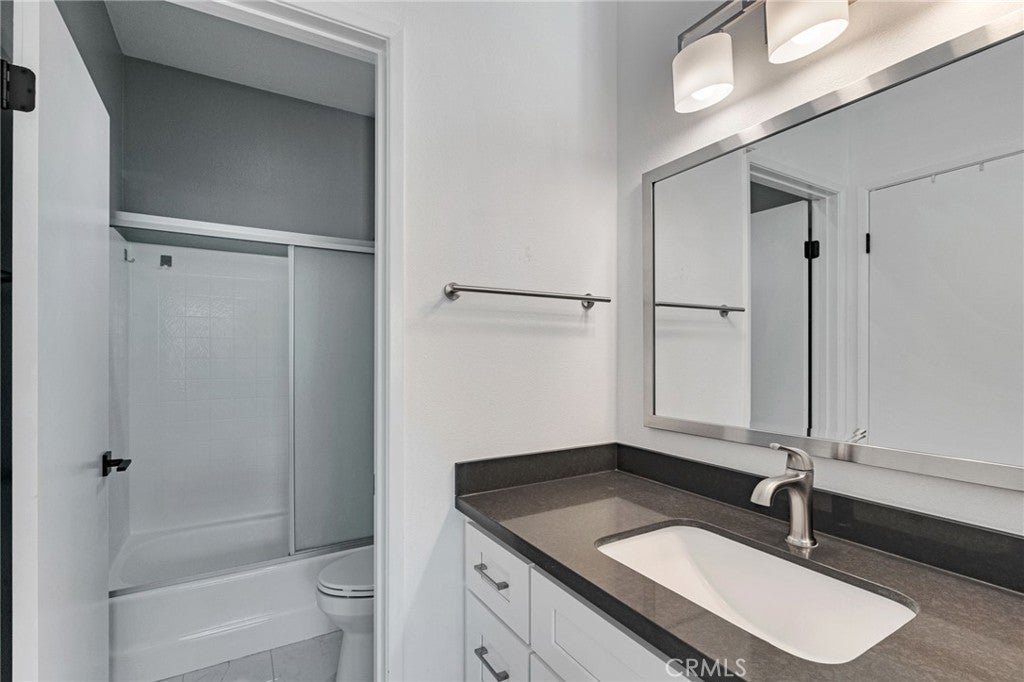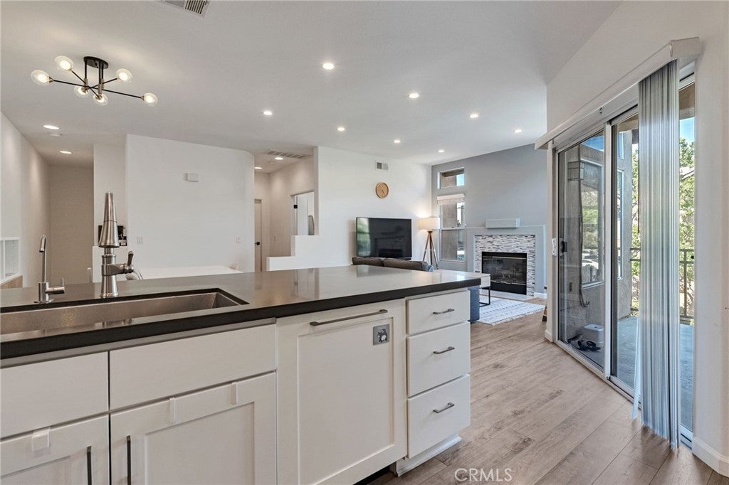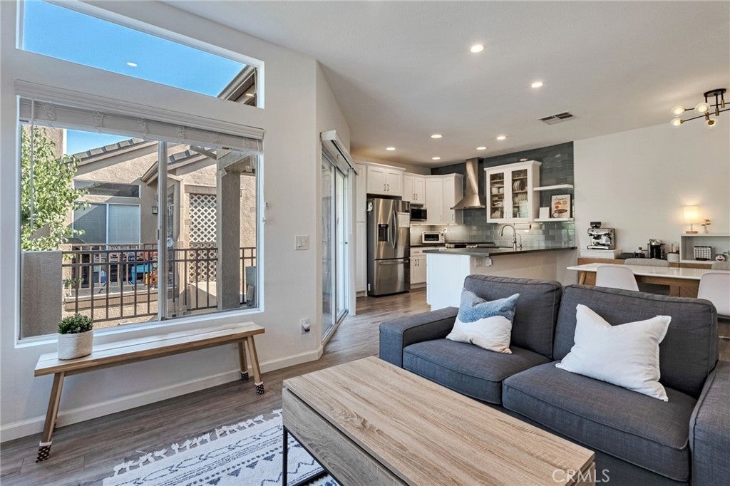 Experience stylish hillside living in the highly desirable Summit Court community of Anaheim Hills! This beautifully upgraded 2-bedroom, 2-bath home offers all living space on a single level, with a private ground-floor entry and direct access from the attached garage. A private staircase leads you to an inviting open-concept layout filled with natural light and elevated views. The spacious living room features a cozy fireplace and flows effortlessly into the dining area and remodeled kitchen—perfect for both everyday living and entertaining. The kitchen is outfitted with sleek stone countertops, a custom tile backsplash, stainless steel appliances, and abundant cabinetry. Step outside to the large balcony and take in sweeping vistas and fresh breezes. This home is move-in ready with features such as rich wood laminate floors, recessed lighting, window blinds, silhouette shades, and a crisp, modern feel that complements any décor. Both bedrooms are generously sized. The primary suite includes a large walk-in closet and remodeled en suite bath, while the secondary bedroom is adjacent to a second upgraded bathroom with a walk-in shower. Laundry is conveniently located in the attached one-car garage, and an assigned covered carport adds extra parking flexibility. Ample guest parking is also available nearby. Enjoy resort-style amenities including a sparkling pool and spa, BBQ area, fitness room, and tot lot—all set against the backdrop of scenic hilltops. Ideally located near dining, shopping, trails, parks, golf, and with easy access to the 91 Freeway and 241 Toll Road, this is Anaheim Hills living at its best!