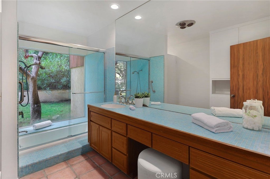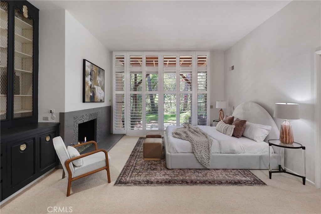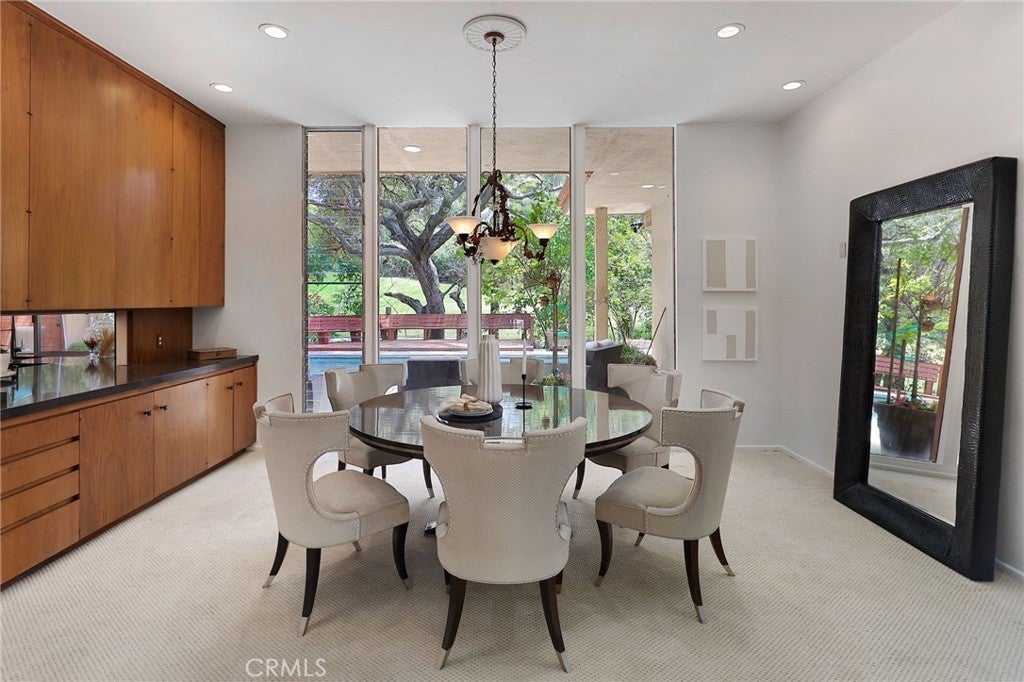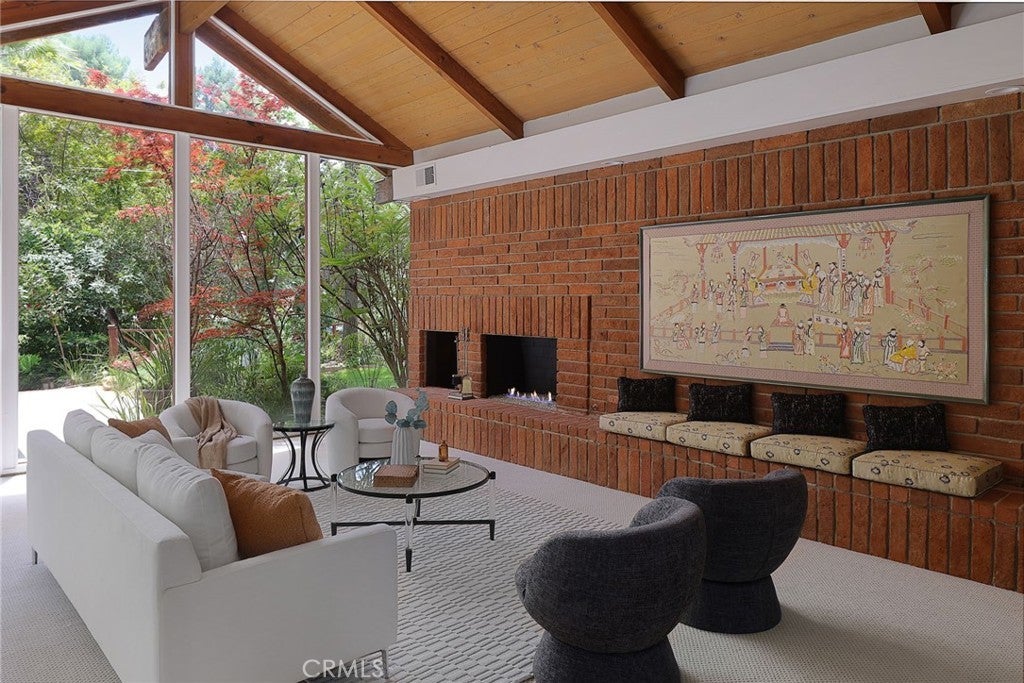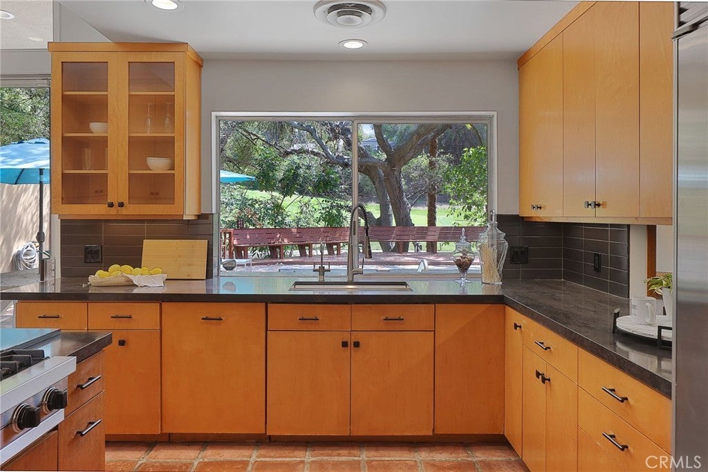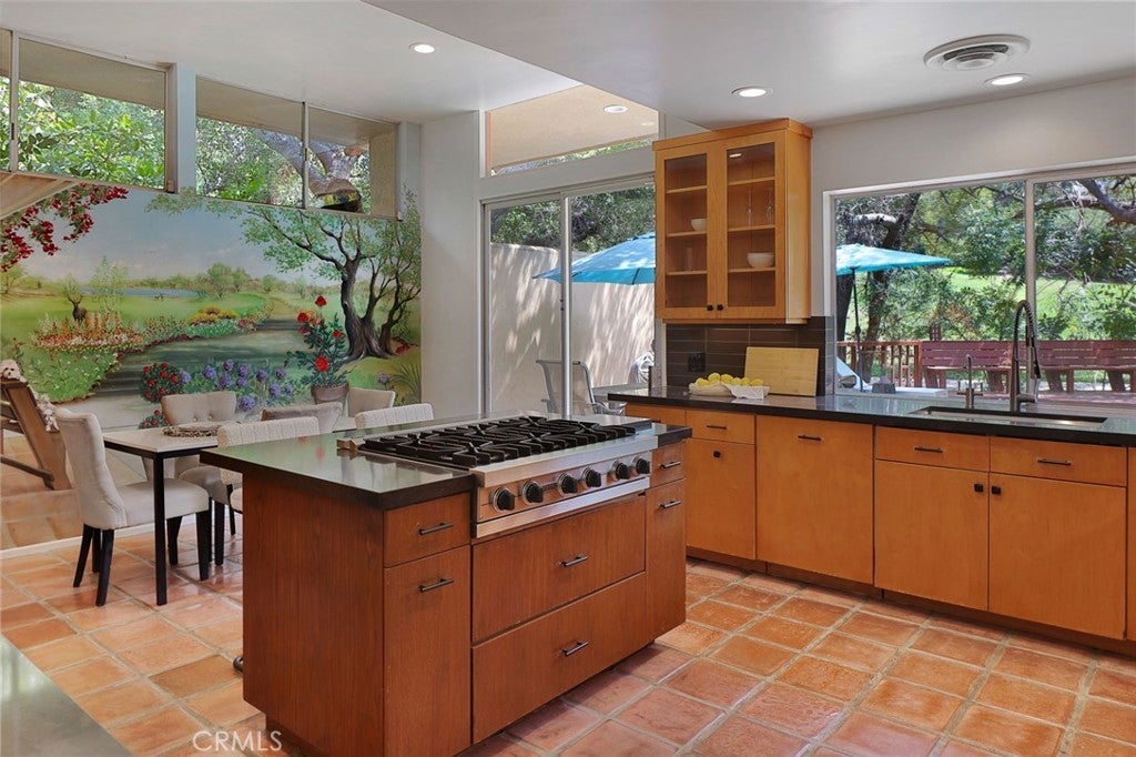 Gated Custom Built, Single story architectural mid century estate bordering Braemar Golf Course on three sides for ultimate privacy. Excudes Hollywood vibe. Located on the Quiet part of Vanalden, 2 ½ miles S. of Ventura. Solar Panels recently installed. Enclosed courtyard entry features captivating water fountain. All major rooms include wall to wall glass doors and windows taking advantage of the views of lush landscaping, towering trees, golf course, and pool connecting you to nature. In addition, high ceilings in every room. Living, Family and Primary bedroom include their own fireplaces. Family Room includes a built-in library, cabinets and wet bar. Sandblasted high beamed wood ceilings flows from exterior to interior. Updated kitchen with quartz counter tops, upgraded appliances and lots of cabinets. Sensational rear yard highlighting Redwood deck providing a picturesque view of the golf course, great for entertaining or enjoying the natural surroundings. Upgraded Salt water, Pebble Tec pool. Lots of yard space with possible room for ADU. Hiking trails nearby. This masterpiece designed home with its harmonious design, luxurious features and connection to nature is a one of a kind coveted retreat. Room for multiple cars behind the gates. Seller will entertain financing!