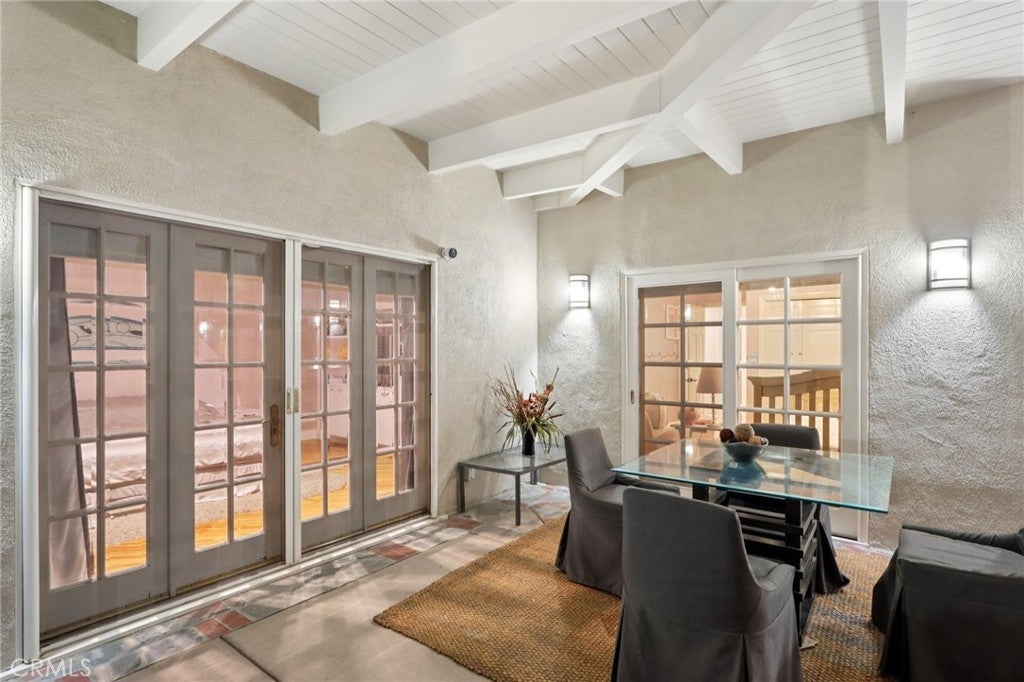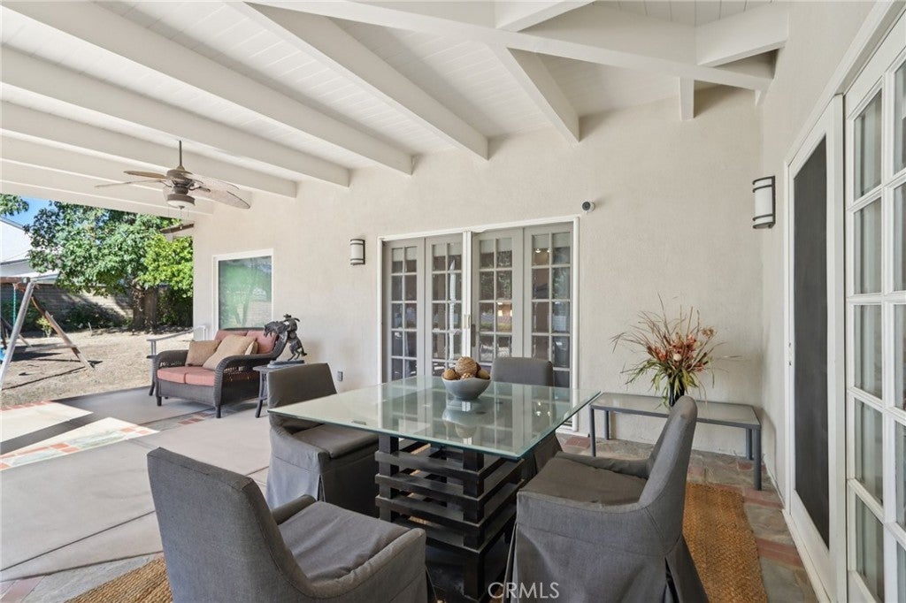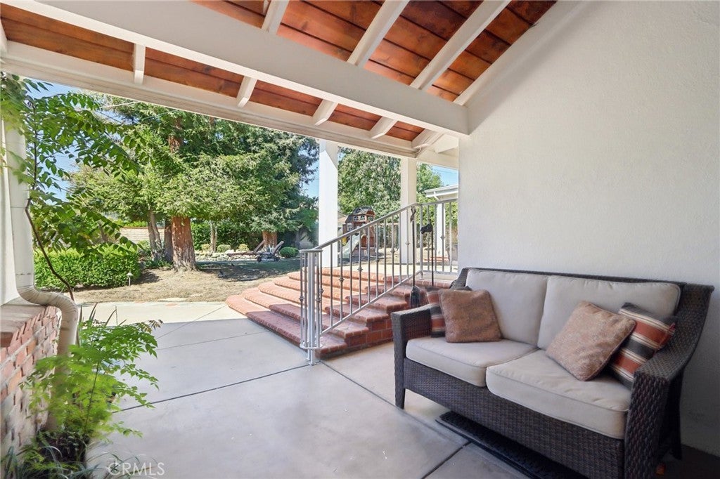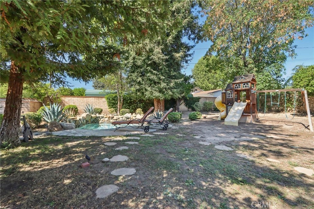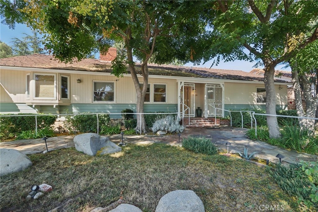 Charming Ranch-Style Retreat in the Heart of Old Granada Hills. Nestled in a picturesque Granada Hills neighborhood, this beautifully maintained single-story ranch home offers timeless character, thoughtful updates, and incredible potential. Situated on an expansive 14,997 sq ft lot, this 4-bedroom, 4-bath home spans 2,271 sq ft of inviting living space—perfect for entertaining, relaxing, or expanding your vision. Step inside to discover a light-filled kitchen adorned with granite countertops, travertine backsplash, stainless steel appliances, a built-in refrigerator, and a charming bay window. The spacious eat-in area flows effortlessly into a formal dining room, ideal for hosting family and friends. The warm and inviting living room is the heart of the home, featuring stunning wood-beamed ceilings, a classic marble fireplace, and elegant French doors that open to your private backyard escape. With four generously sized bedrooms, including two en suites, there’s room for everyone to unwind. The primary suite is a true sanctuary with a walk-in closet, French doors to the backyard, and a luxurious bath complete with a soaking tub and separate shower. A dedicated indoor laundry room adds modern convenience, while original details and tasteful upgrades preserve the home’s unique charm. Outside, the possibilities are endless. Entertain year-round under the expansive 660 sq ft L-shaped covered patio, enjoy cozy evenings around the gas firepit, or soak in the rock spa under the stars. The huge backyard is a blank canvas—whether you envision lush gardens, a pool, or a playground, there’s space for it all. Looking for more flexibility? The detached two-car garage, complete with an additional storage room or den, offers fantastic ADU or guesthouse potential. Located in the highly sought-after Granada Hills Charter High School district and just moments from the beloved Granada Hills Farmers Market, shops, and dining, this home combines comfort, character, and convenience in one incredible package. Don’t miss the opportunity to create your dream lifestyle in this one-of-a-kind Granada Hills gem!