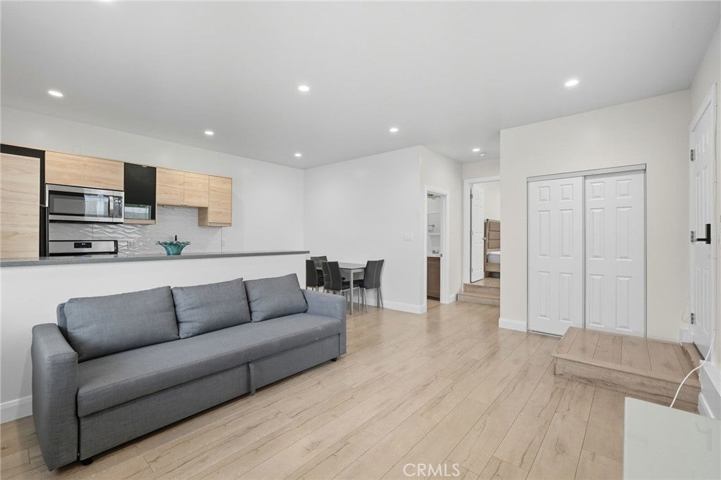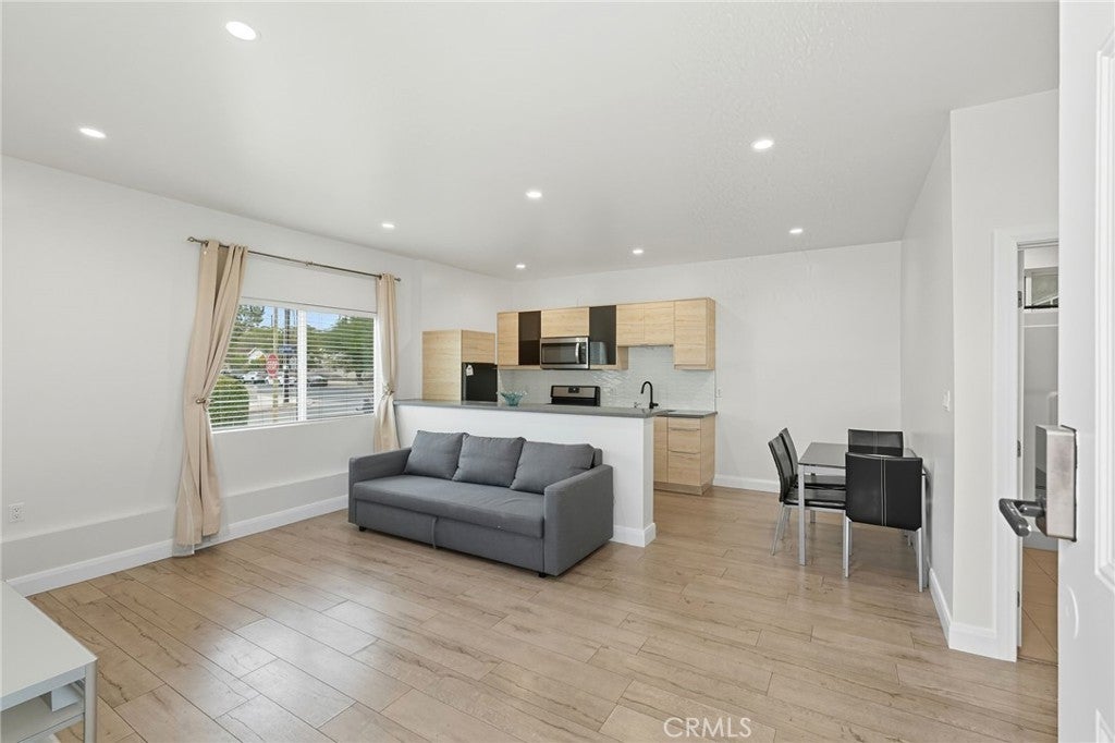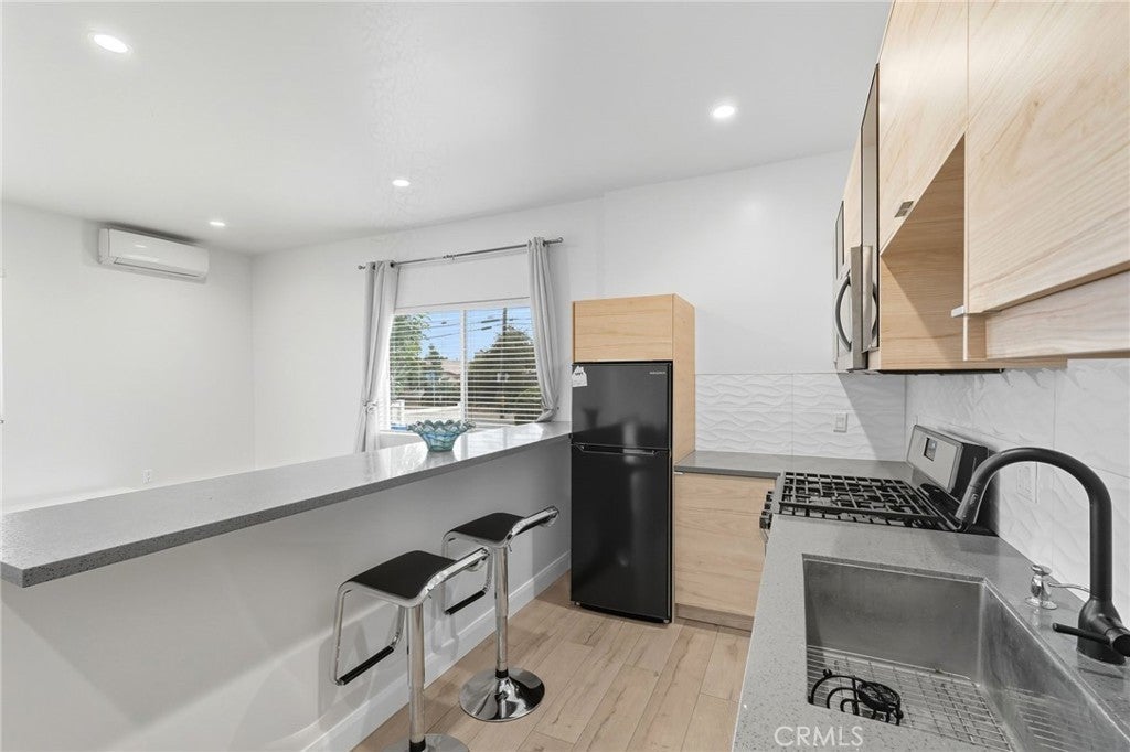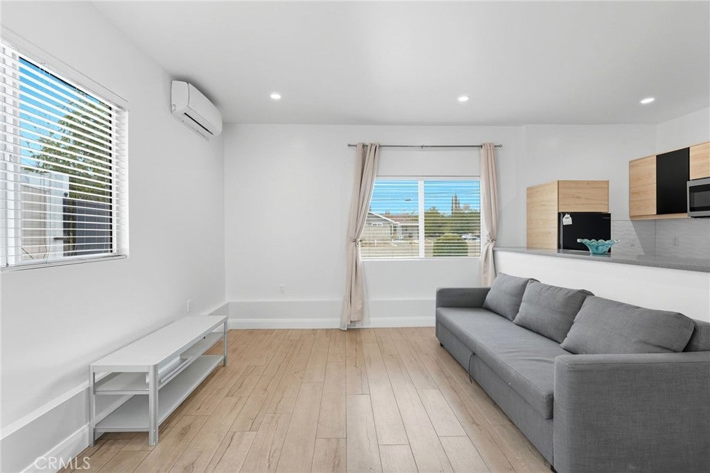Charming and private, this 1-bedroom, 1-bath ADU is nestled in the heart of Granada Hills and offers its own separate entrance for ultimate privacy. Step inside to a cozy living room and dining area, highlighted by recessed lighting and sleek laminate flooring. The modern kitchen features quartz countertops, ample cabinetry, and a stylish backsplash. Comfort is ensured year-round with energy-efficient split AC units. The bedroom offers a peaceful retreat, and the updated bathroom is thoughtfully designed. A convenient in-unit washer and dryer adds practicality, while the private patio area provides a perfect outdoor space for relaxing.