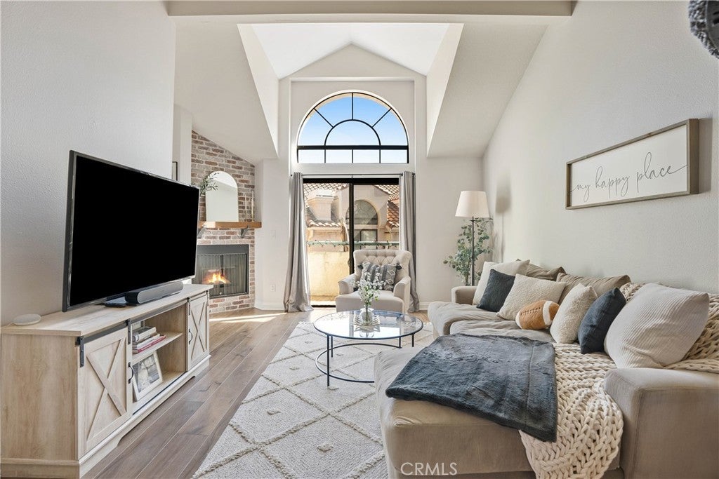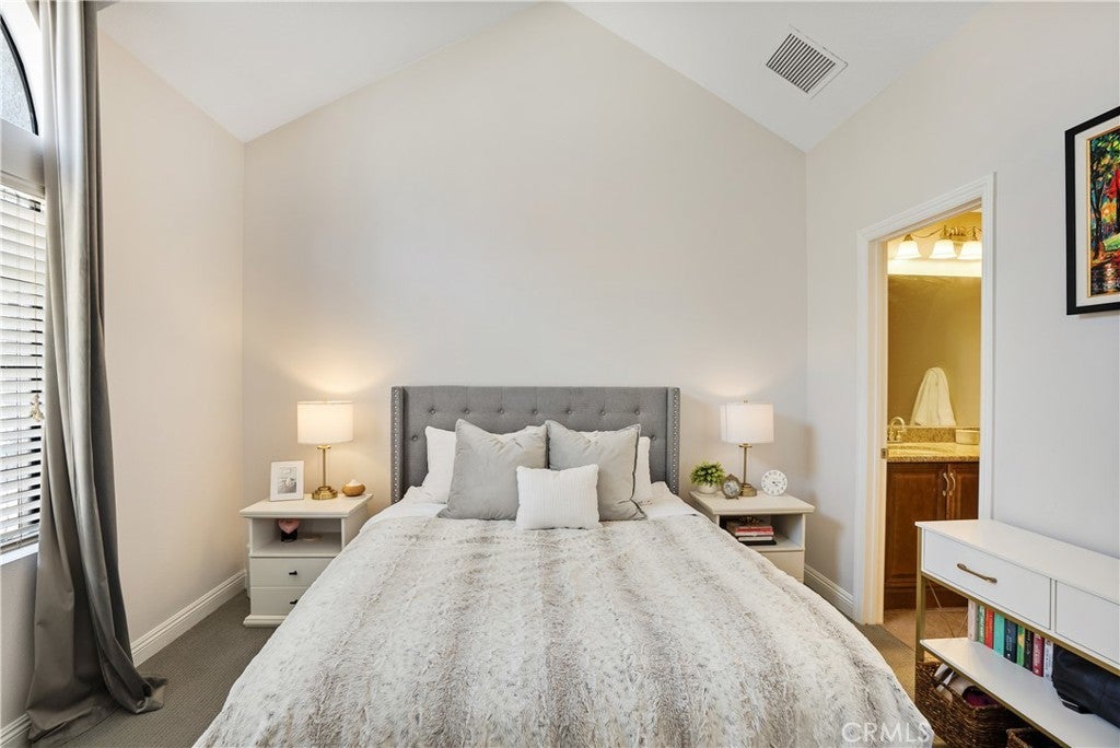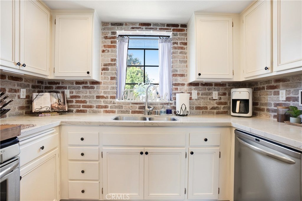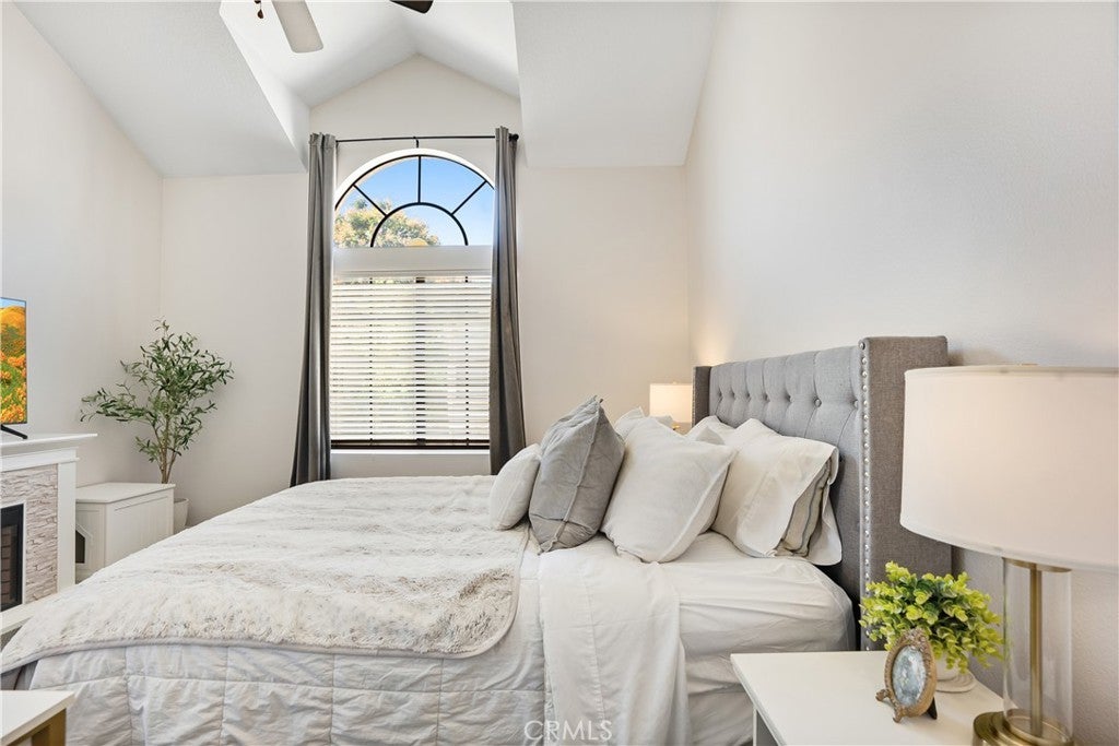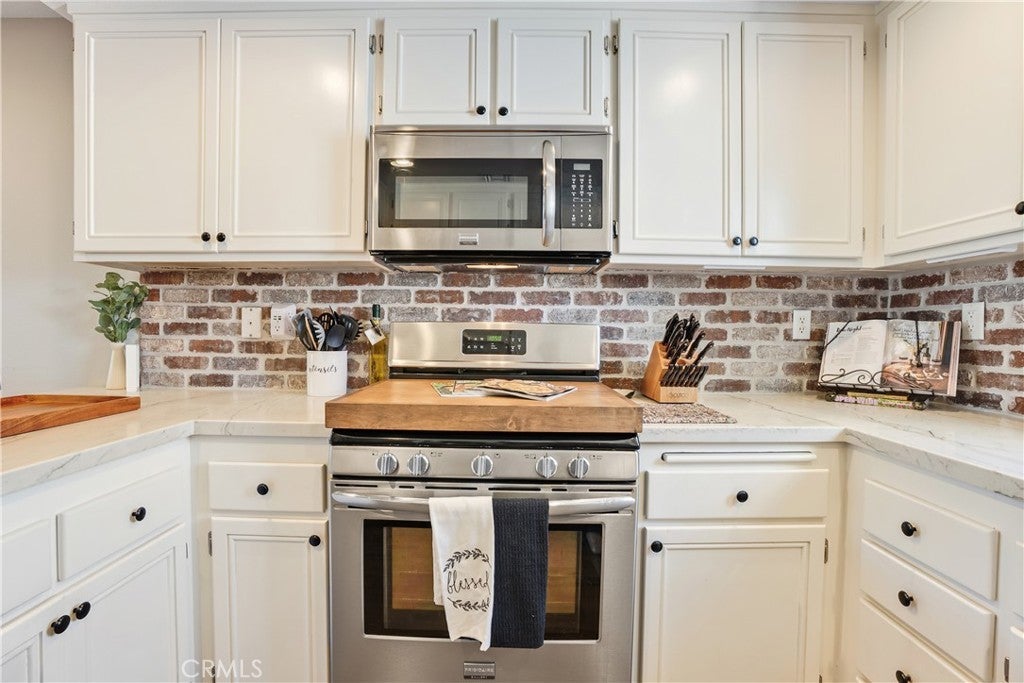 Welcome to 18108 Erik Court Unit 586 – A Stunning, Fully Upgraded Top-Floor Condominium! This beautifully renovated, move-in ready condo offers nearly 1,200 sq. ft. of light-filled, open-concept living space in a peaceful, well-maintained community. Nestled among tranquil walkways and lush landscaping, this home is a true retreat. Step into the spacious living room featuring a gorgeous brick fireplace, perfect for cozy evenings. The adjoining balcony is ideal for BBQs and relaxing outdoors, extending your living space into the serene surroundings. The chef’s kitchen is a showstopper, boasting natural stone quartzite countertops, brick backsplash, stainless steel appliances, and lots of cabinet and counter space – a dream for any home cook. The primary suite is a luxurious escape with soaring ceilings, a fully upgraded walk-in tiled shower, and a dual-sink vanity with modern finishes. The second bedroom is generously sized, and the versatile loft area - which has been extended over the dining area plus a bonus room - offers endless possibilities. Use it as a third bedroom, a private office, or a cozy lounge. Additional upgrades include: New carpet in the bedrooms for added comfort Upgraded guest bathroom vanity and sink Recessed lighting and ceiling fans in the bedrooms Central air and heat Washer and dryer included Newer water heater Two-car garage with a new door and opener, plus added storage Community amenities include a sparkling pool and spa, with trash and water included in HOA dues. Conveniently located near the 14 freeway, top-rated schools, shopping, and dining. This exceptional home won’t last long – schedule your private showing today!