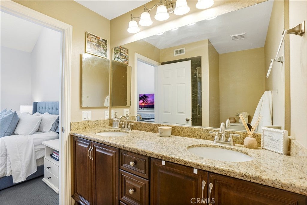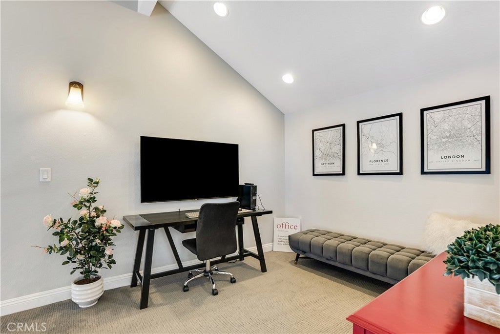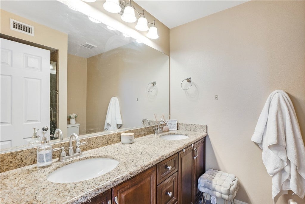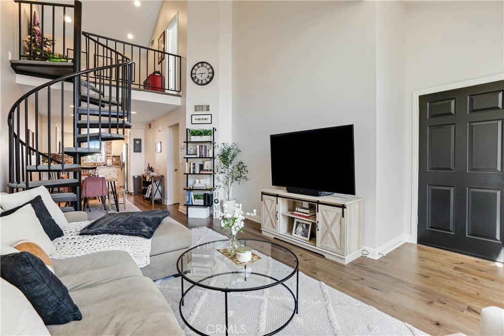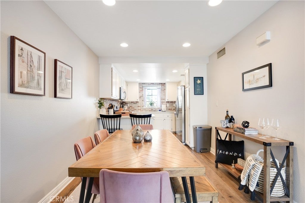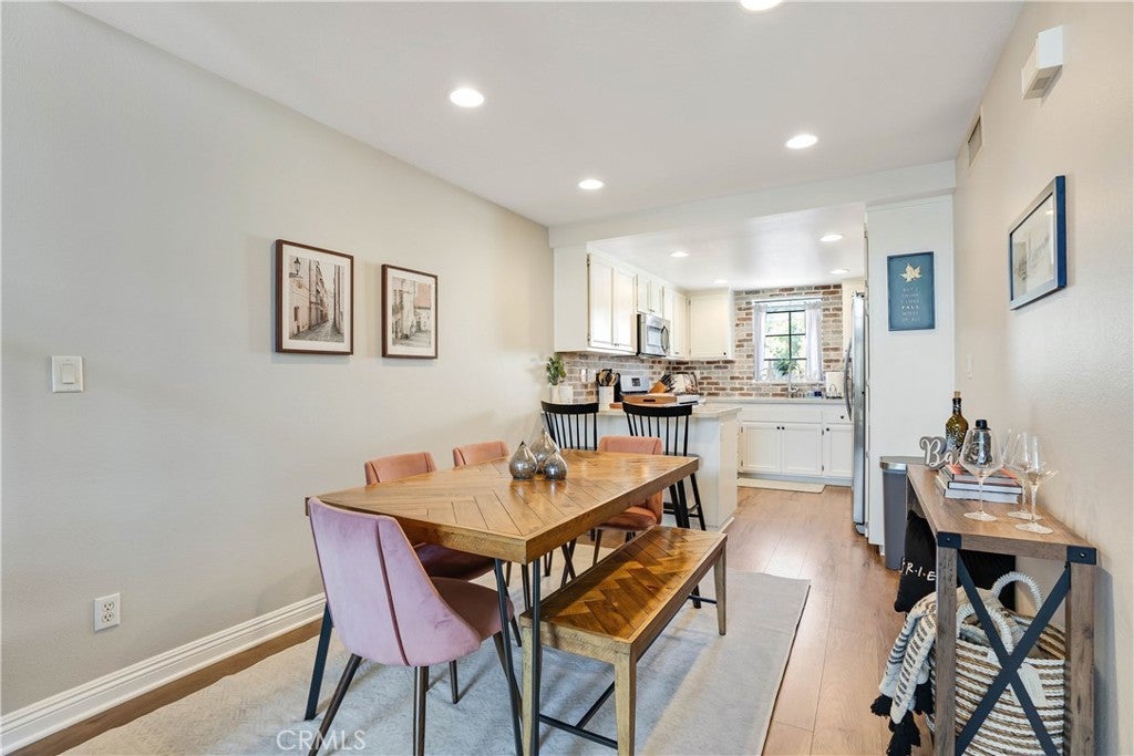 Welcome to 18108 Erik Court Unit 586 – A Stunning, Fully Upgraded Top-Floor Condominium! This beautifully renovated, move-in ready condo offers nearly 1,200 sq. ft. of light-filled, open-concept living space in a peaceful, well-maintained community. Nestled among tranquil walkways and lush landscaping, this home is a true retreat. Step into the spacious living room featuring a gorgeous brick fireplace, perfect for cozy evenings. The adjoining balcony is ideal for BBQs and relaxing outdoors, extending your living space into the serene surroundings. The chef’s kitchen is a showstopper, boasting natural stone quartzite countertops, brick backsplash, stainless steel appliances, and lots of cabinet and counter space – a dream for any home cook. The primary suite is a luxurious escape with soaring ceilings, a fully upgraded walk-in tiled shower, and a dual-sink vanity with modern finishes. The second bedroom is generously sized, and the versatile loft area - which has been extended over the dining area plus a bonus room - offers endless possibilities. Use it as a third bedroom, a private office, or a cozy lounge. Additional upgrades include: New carpet in the bedrooms for added comfort Upgraded guest bathroom vanity and sink Recessed lighting and ceiling fans in the bedrooms Central air and heat Washer and dryer included Newer water heater Two-car garage with a new door and opener, plus added storage Community amenities include a sparkling pool and spa, with trash and water included in HOA dues. Conveniently located near the 14 freeway, top-rated schools, shopping, and dining. This exceptional home won’t last long – schedule your private showing today!