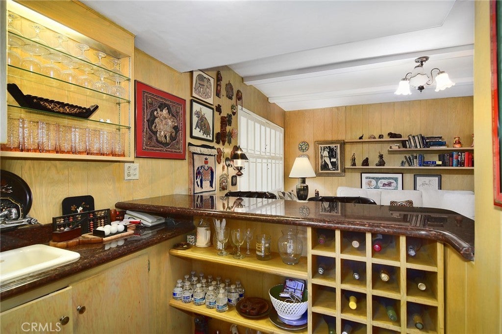 Beamed Ceilings, Built-in Features, Separate/Formal Dining Room, Eat-in Kitchen, Granite Counters, Recessed Lighting, Bar, Main Level Primary, Primary Suite, Wet Bar