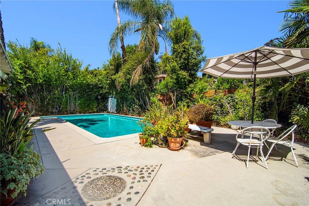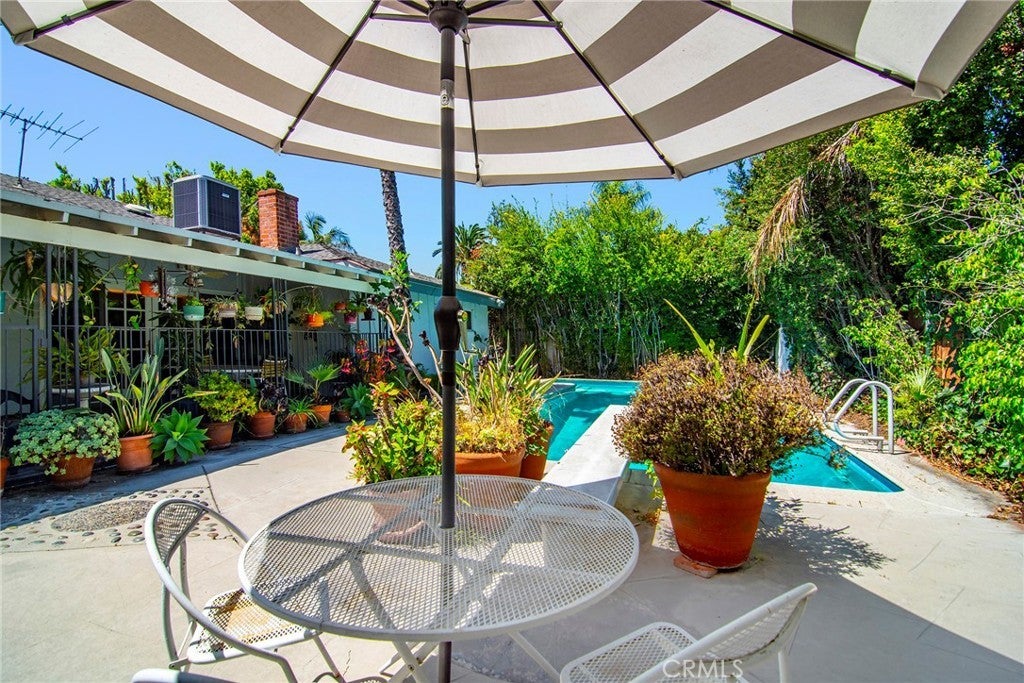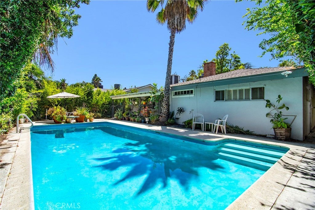 Come embrace this warm, wonderful pool home on an incredible quiet cul-de-sac situated in this sought-after Chandler Estates neighborhood of Sherman Oaks. Newer roof and large concrete drive deliver a pleasing first impression. Childhood memories of fun and frolic are certain to be created on this large concrete driveway & amazing serene street providing an ideal environment for enjoyment. Inside, a large living room with distinct stone fireplace and a unique lighted architectural ceiling accent is enhanced by beautiful vaulted wood beamed ceilings. An adjoining spacious formal dining room offers smooth ceilings and recessed lighting. Separate family room affords a cozy fireplace and classic wet-bar. Spacious and bright kitchen provides ample light wood cabinetry, granite counters, peninsula and an ideal breakfast area. At the east wing enjoy a secluded bedroom and bathroom. Your primary suite features a private bath with convenient rear yard access. Two additional bedrooms and a full bath add to the appeal. Outside, discover a large gated covered dining/entertaining arena that leads to a private rear yard with huge refreshing pool. Just down the street to Sherman Oaks Rec Center/park, brand new Trader Joes, Westfield Fashion Center & all the shops & yummy eateries that line the Blvd. Don’t miss!