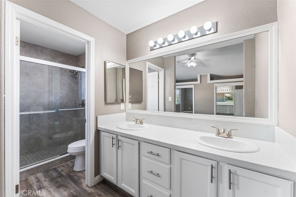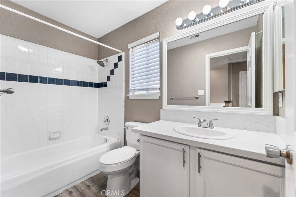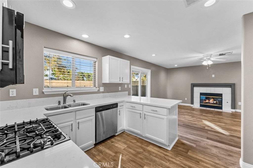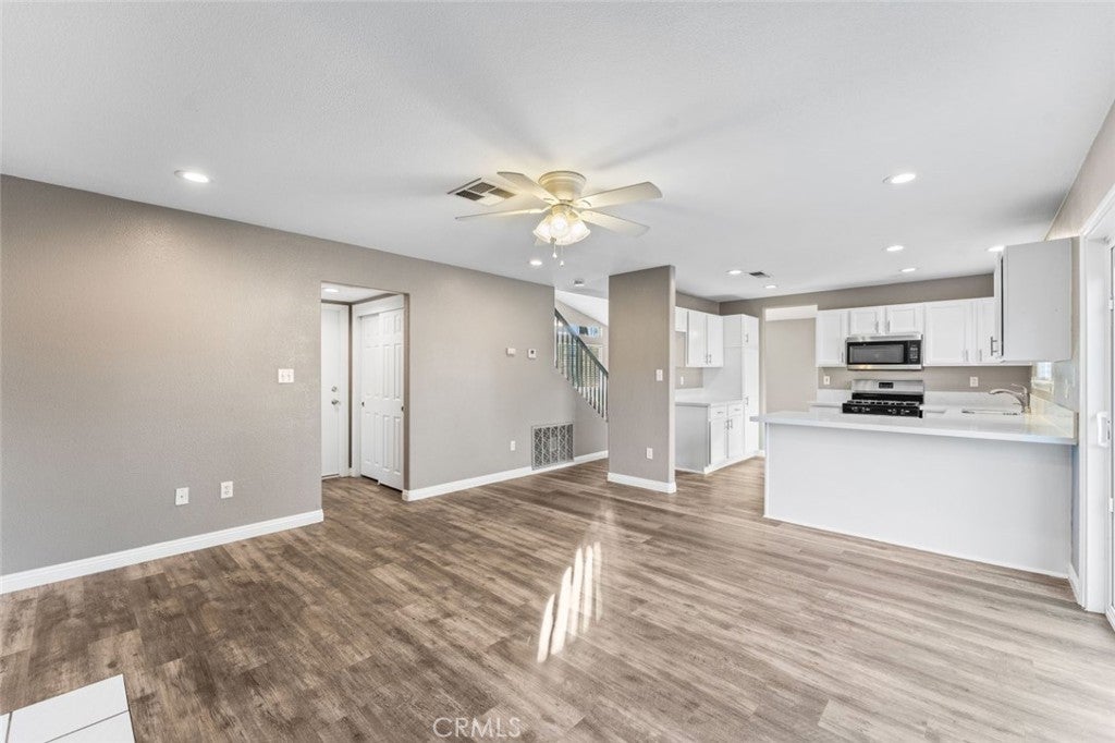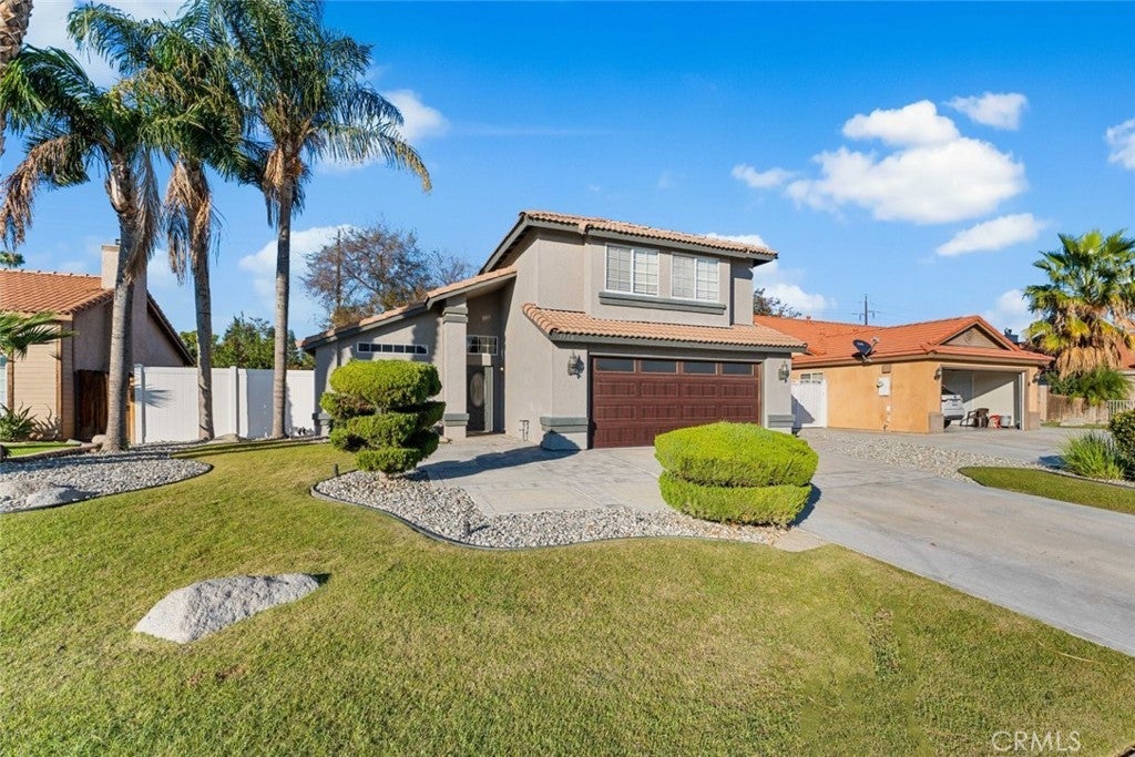 Welcome to this charming two-story single-family home offering 1,748 sq ft of comfortable living space on a generous 7,405 sq ft lot. Featuring an attached 2-car garage, this beautifully maintained residence combines modern upgrades with timeless appeal. Upon entry, you're greeted by an inviting living room highlighted by a cozy fireplace, wood-style flooring, recessed lighting, ceiling fans, and high ceilings that create an airy, open atmosphere. The open floor plan seamlessly connects the living area to the dining and kitchen spaces, perfect for both entertaining and everyday living. The kitchen boasts stainless steel appliances, recessed lighting, and plenty of cabinetry for storage. A stylish staircase leads to the second floor, where you'll find spacious bedrooms with mirrored closet doors. The main bedroom offers a relaxing retreat complete with a dual-sink vanity and ample closet space. With its combination of space, comfort, and modern design, this home is ready to welcome its next owners.