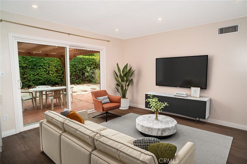 Welcome to this beautifully maintained single-story residence nestled in the heart of Winnetka. Featuring 3 bedrooms, 2 baths, and 1,567 square feet of comfortable living space, this home blends warmth, style, and functionality.Step inside to a spacious living room centered around a double-sided fireplace, creating a cozy ambiance that flows seamlessly into the adjacent family room. The family room opens through sliding glass doors to a newly landscaped backyard—an inviting retreat ideal for entertaining under the trellis-covered seating area. The remodeled kitchen is thoughtfully designed with abundant cabinetry, generous counter space, and a perfect layout for both everyday living and hosting gatherings. The large primary suite offers a private escape with wall-to-wall closets and a beautifully updated en-suite bath. Two additional bedrooms provide versatility for family, guests, or a home office. Completing this wonderful property is an attached two-car garage with direct access, offering convenience and ease of living.(Some images have been virtually staged for illustrative purposes only.)