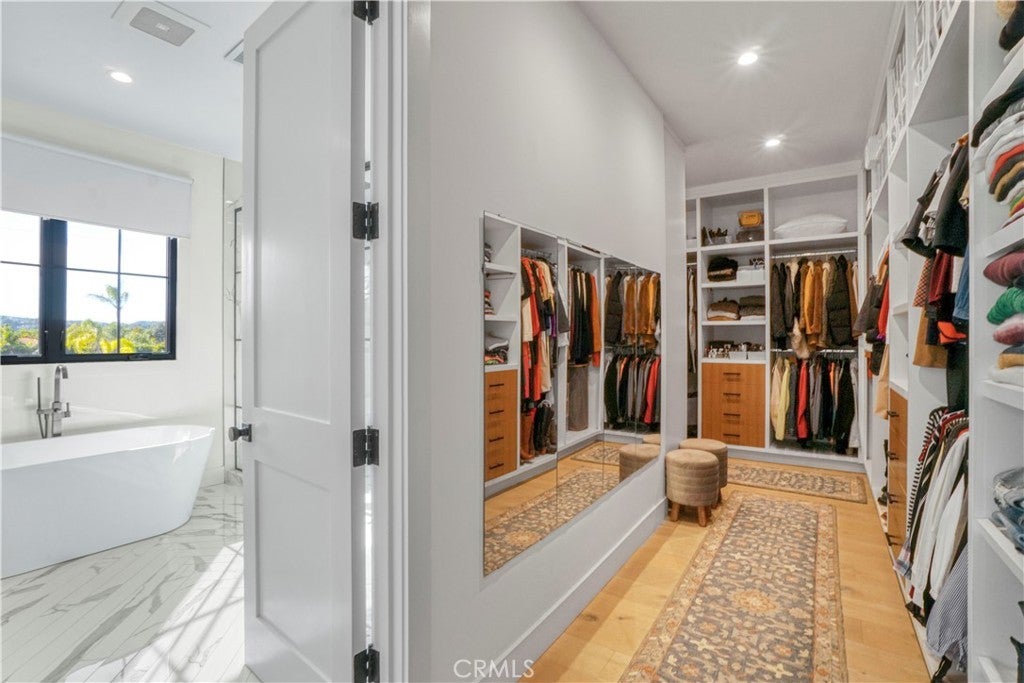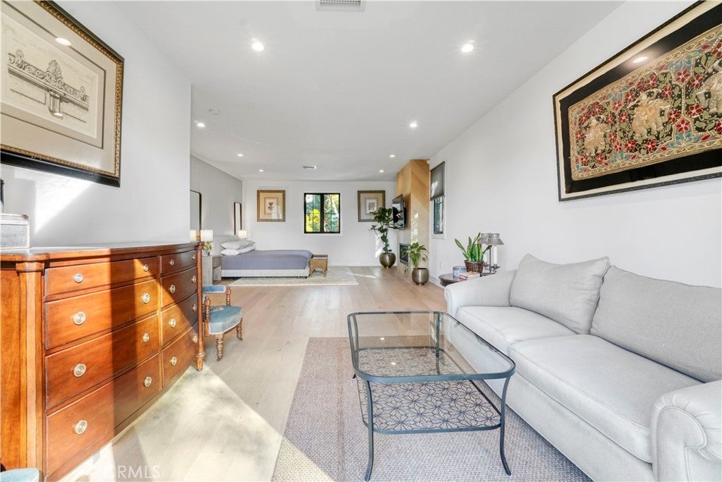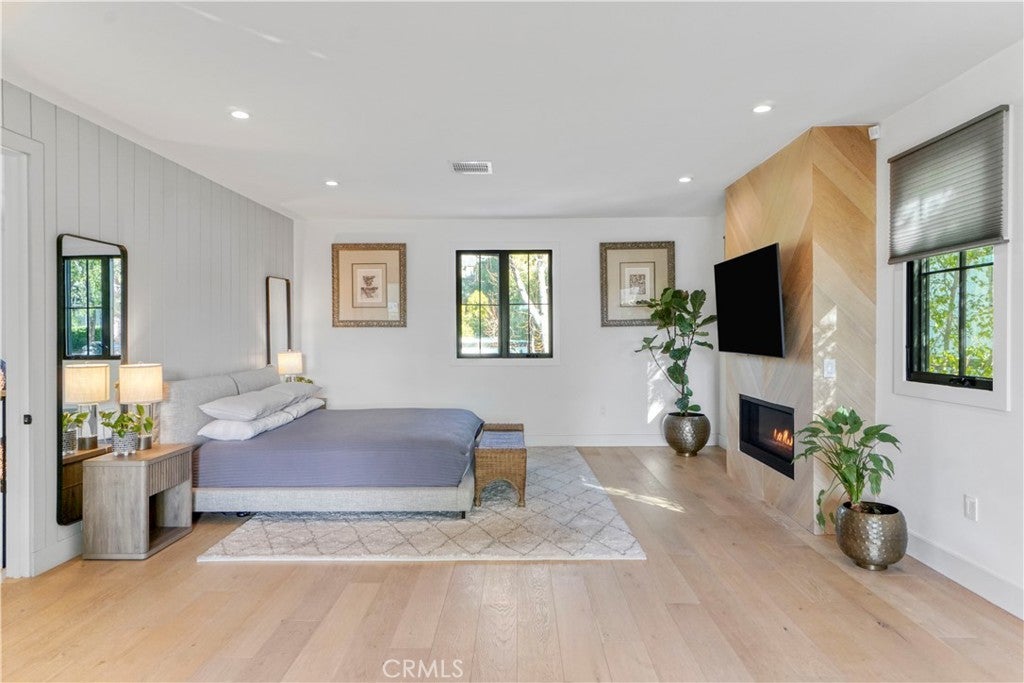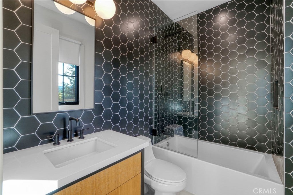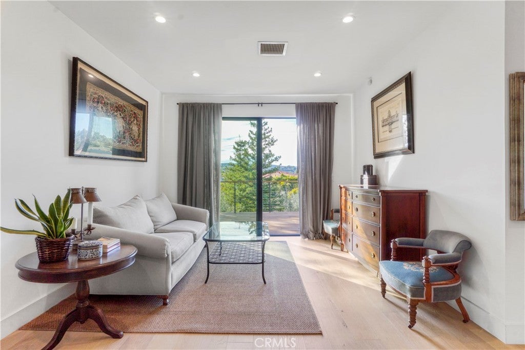 Nestled in the quiet and serene neighborhood of Encino Hills and surrounded by mature trees, this recently and completely renovated home offers stunning views and a thoughtfully designed floor plan featuring five spacious en-suite bedrooms, a powder room and library that could also function as a playroom. The expansive primary suite includes a large walk-in closet and a peaceful seating area, creating a true retreat. A beautiful wooden deck on the second floor, extending across the length of the house, provides a panoramic viewing point. The gourmet kitchen boasts high-end stainless steel appliances and custom cabinetry, complemented by abundant natural light throughout the home. Set on nearly half an acre, the property features a sparkling pool and jacuzzi—both with new tile and plaster—a dedicated dog run, fruit trees, and a vegetable garden. The yard is thoughtfully divided into several seating areas, perfect for relaxation and entertaining. Additional highlights include a three-car garage, integrated smart home technology for convenience and security, and a community tennis court. Elegant interior finishes evoke a relaxed yet refined atmosphere. This home is perfect for entertaining or simply relaxing and enjoying the serene surroundings.