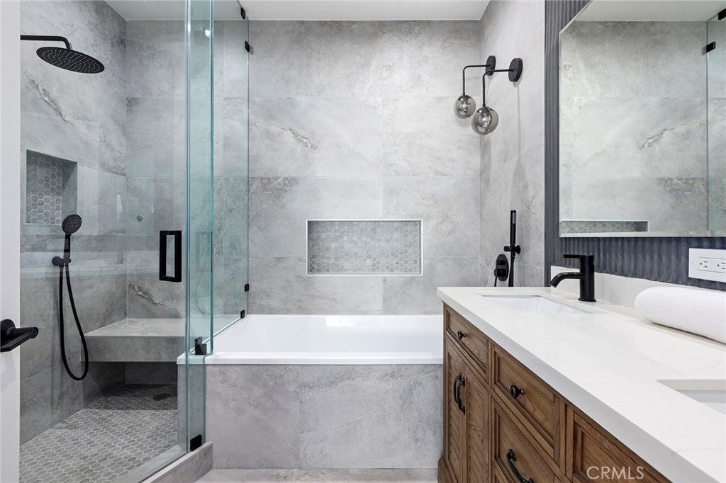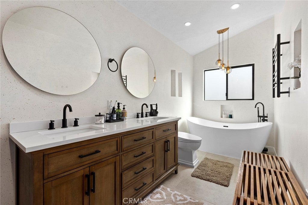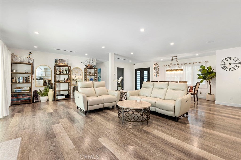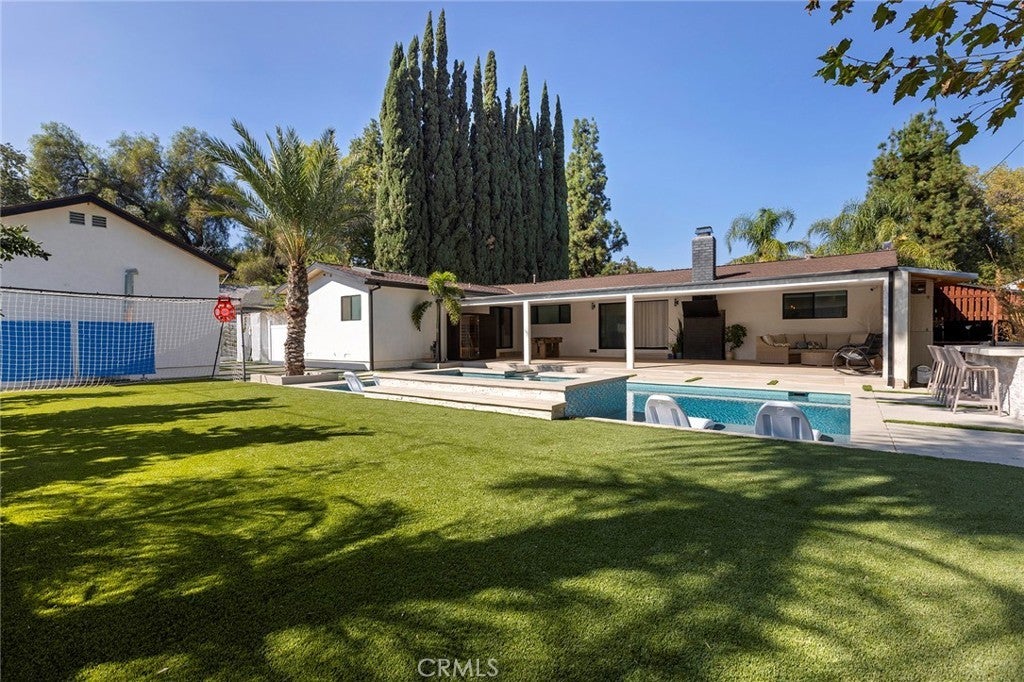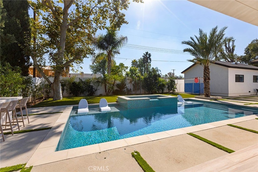 Welcome to a one-of-a-kind, fully remodeled and fully furnished contemporary retreat in the heart of West Hills. This stunning property blends modern design, high-end finishes, and resort-style amenities for the ultimate luxury living experience. The main residence offers approximately 2,800 sq ft with five bedrooms and three-and-a-half bathrooms. The chef’s kitchen features sleek cabinetry, stainless steel appliances, and a massive center island that opens to a spacious family room with fireplace. Designer details include recessed lighting, wide-plank wood floors, Italian lime plaster walls, and custom fixtures throughout. The primary suite is a private sanctuary with a spa-inspired bathroom, freestanding tub, steam shower, walk-in closet, and direct backyard access. The backyard delivers true resort living with a heated pool and spa, sauna, oversized covered patio, built-in BBQ and bar, flat-screen TV, mature fruit trees, custom lighting, and a built-in 300-gallon aquarium. Additional highlights include two Tesla chargers and a large driveway with RV access. The newly constructed ADU—approximately 600 sq ft—features its own full kitchen, laundry, and spa-style bathroom with steam shower, ideal for extended family, guests, or a private office or studio. Centrally located minutes from the 101 and 118 freeways, Westfield Topanga, and The Village, this home defines modern luxury!