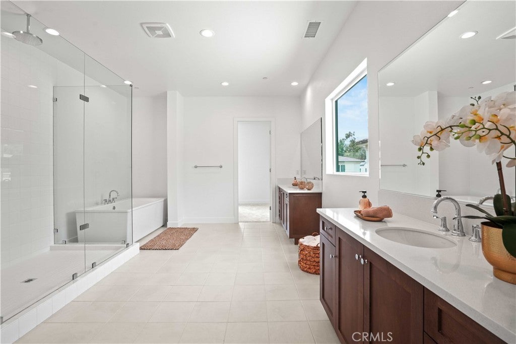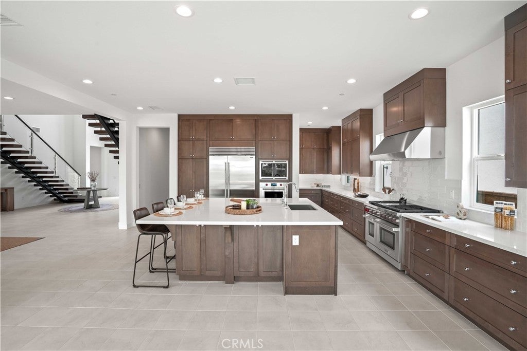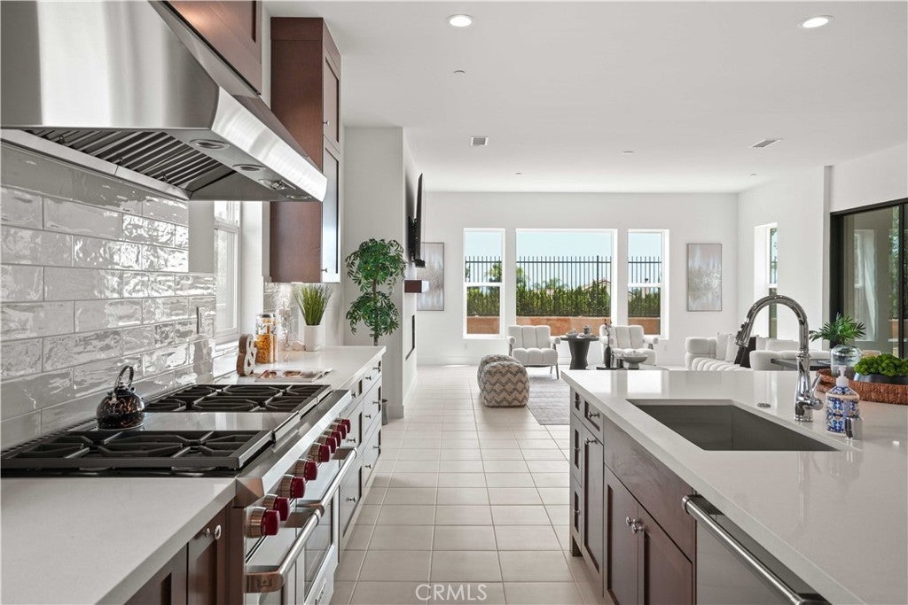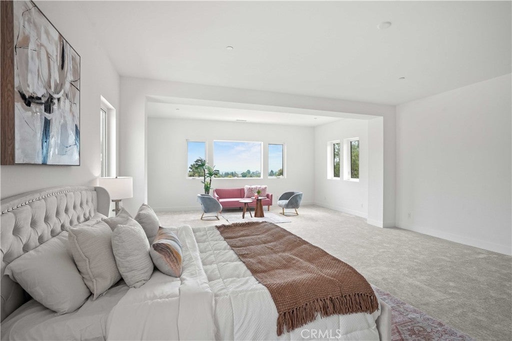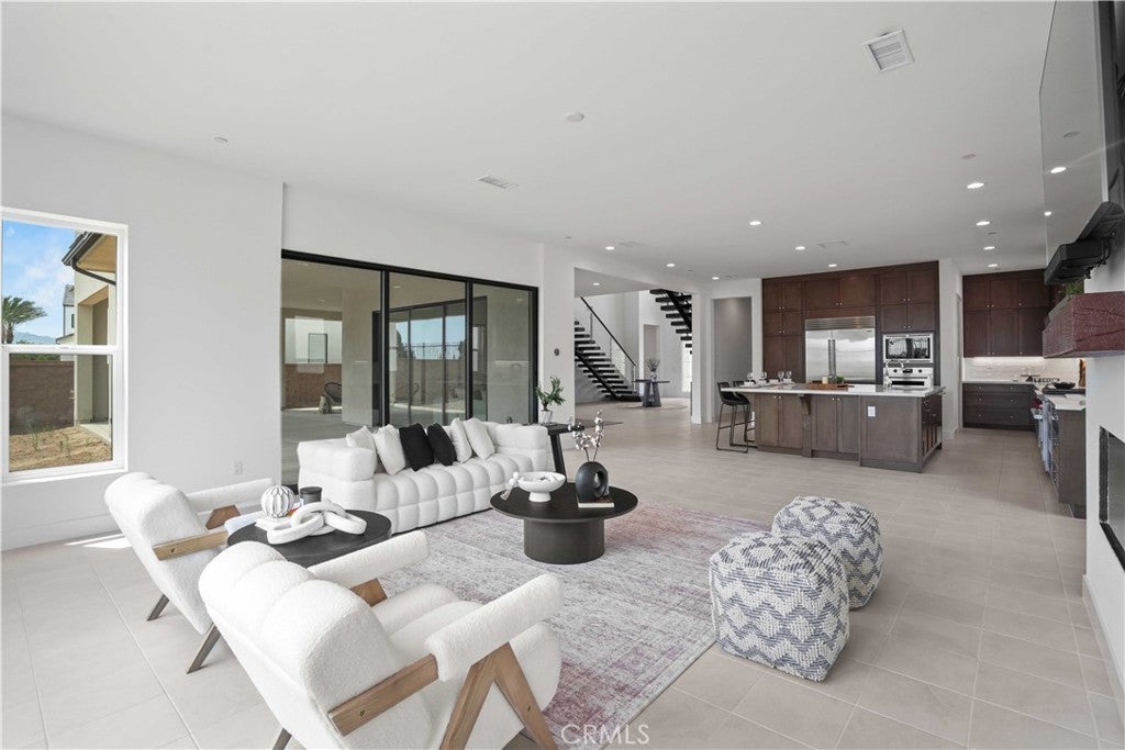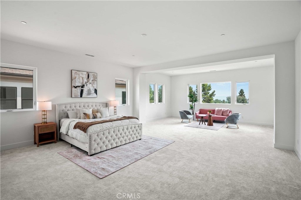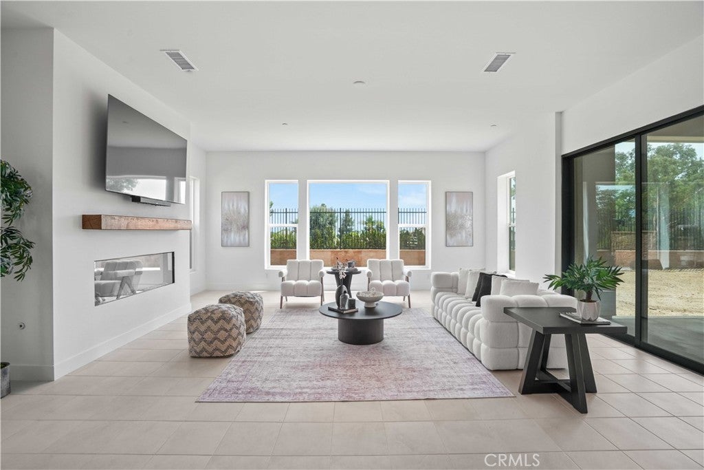 Introducing a stunning brand new construction home located in the exclusive gated community of Verona Estates in Chatsworth. This exquisite residence showcases 5 bedrooms and 6 bathrooms, situated on a generous 11,868 sq ft lot with an impressive 5,754 sq ft of refined living space. Upon entry, You'll be greeted by a stunning double-sided floating staircase and soaring ceilings that sets the tone for modern luxury and architectural elegance. The spacious living area features a sleek linear fireplace and is flooded with natural light during the day, while recessed lighting provides an ambient glow in the evenings.The bright and spacious living room features sliding glass doors that open to the backyard, creating seamless indoor-outdoor. The chef’s kitchen is a true showstopper, boasting an oversized quartz island, Sub-Zero refrigerator, Wolf appliances, walk-in pantry and custom soft-close cabinetry, perfect for hosting and gatherings in style. The main-level primary suite is a private retreat, complete with dual sinks, a luxurious soaking tub, and a generously sized walk-in closet. The upstairs primary suite offers breathtaking views, along with a spa-inspired bathroom featuring a spacious walk-in shower with dual shower heads, double sinks, a separate soaking tub, and a generously built-out walk-in closet. All bedrooms are en-suite, offering ultimate privacy and comfort for every member of the household. The home features a spacious loft, ideal for a private office, media room, or additional living space, Additional highlights include a fully paid-off solar system, Energy Star-rated efficiency, dual-pane windows. Verona Estates consists of only 37 homes, ideally situated near the new Porter Ranch Vineyards shopping center, upscale dining, and a newly developed community park. This exceptional home combines modern elegance, premium finishes, and an unbeatable location.