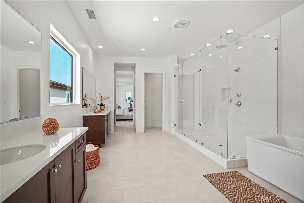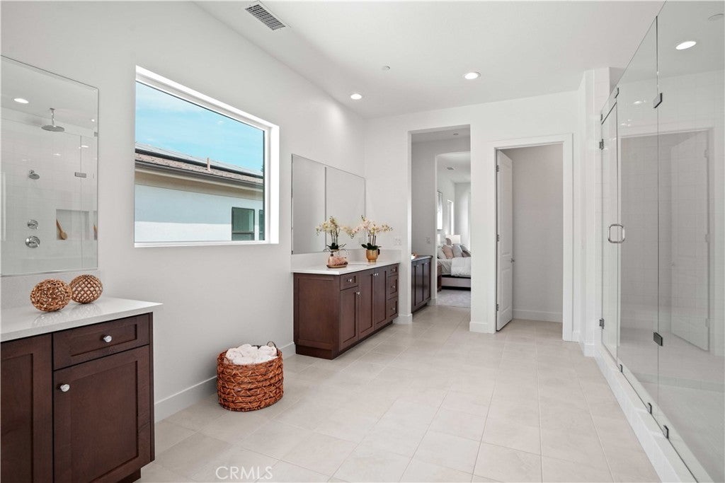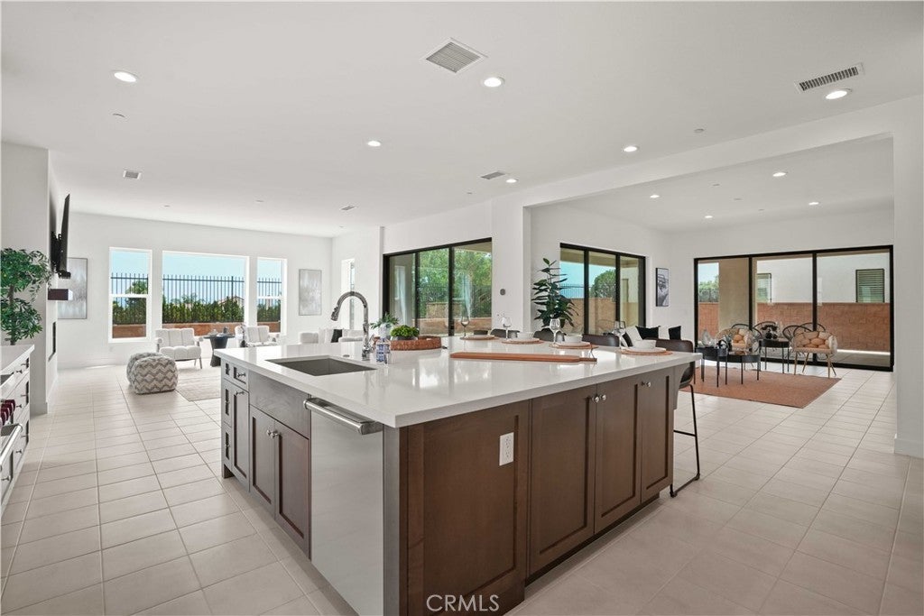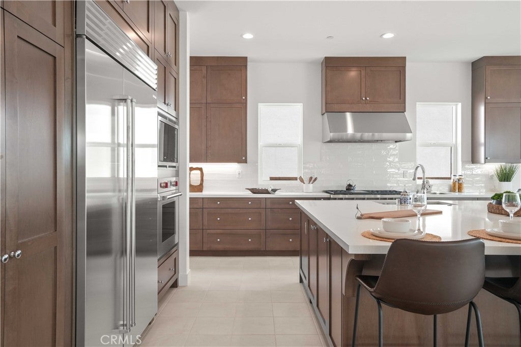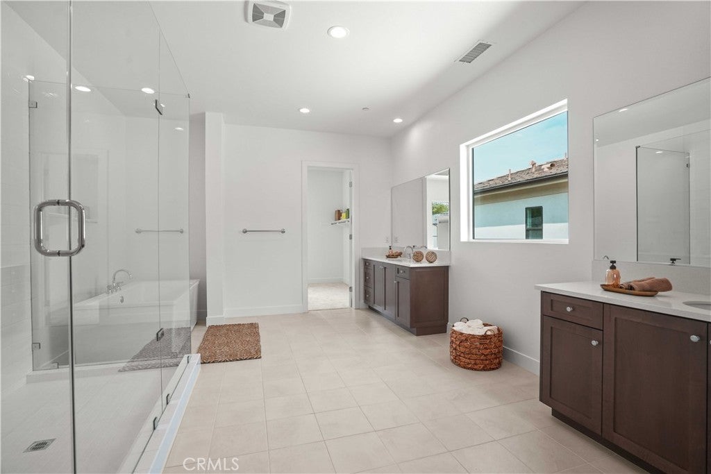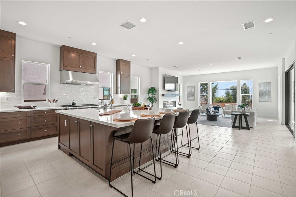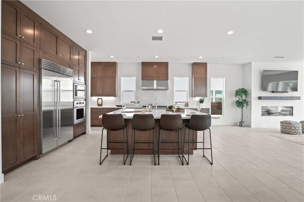 Introducing a stunning brand new construction home located in the exclusive gated community of Verona Estates in Chatsworth. This exquisite residence showcases 5 bedrooms and 6 bathrooms, situated on a generous 11,868 sq ft lot with an impressive 5,754 sq ft of refined living space. Upon entry, You'll be greeted by a stunning double-sided floating staircase and soaring ceilings that sets the tone for modern luxury and architectural elegance. The spacious living area features a sleek linear fireplace and is flooded with natural light during the day, while recessed lighting provides an ambient glow in the evenings.The bright and spacious living room features sliding glass doors that open to the backyard, creating seamless indoor-outdoor. The chef’s kitchen is a true showstopper, boasting an oversized quartz island, Sub-Zero refrigerator, Wolf appliances, walk-in pantry and custom soft-close cabinetry, perfect for hosting and gatherings in style. The main-level primary suite is a private retreat, complete with dual sinks, a luxurious soaking tub, and a generously sized walk-in closet. The upstairs primary suite offers breathtaking views, along with a spa-inspired bathroom featuring a spacious walk-in shower with dual shower heads, double sinks, a separate soaking tub, and a generously built-out walk-in closet. All bedrooms are en-suite, offering ultimate privacy and comfort for every member of the household. The home features a spacious loft, ideal for a private office, media room, or additional living space, Additional highlights include a fully paid-off solar system, Energy Star-rated efficiency, dual-pane windows. Verona Estates consists of only 37 homes, ideally situated near the new Porter Ranch Vineyards shopping center, upscale dining, and a newly developed community park. This exceptional home combines modern elegance, premium finishes, and an unbeatable location.