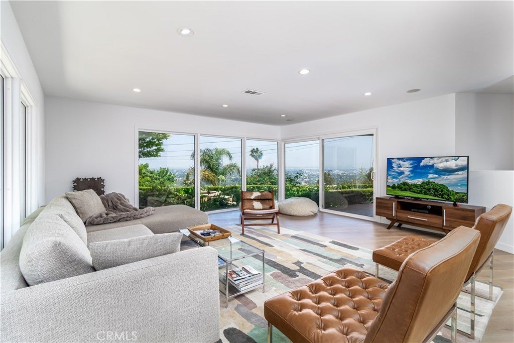 Gated private property in the Mulholland corridor. Jetliner views, swimming pool, basketball court, top-of-the-line property. Perfect for single celebrity. Walls of glass allow for an abundance of natural light throughout this open floor plan. A completely open and airy kitchen that looks out to canyon & mountains, that provide a tranquil setting. The master is a mini suite, with incredible city views, and a walk in closet. Master bath features an exposed glass window that lets in lots of natural light, a sunken tub and a separate shower. The second bathroom also takes in natural light and opens to Incredible city lights. This home is perfect for entertaining. Step out to paradise, the brick patio leads you to a heart shaped pool and spa tub, and of course the most incredible sweeping views of the valley.