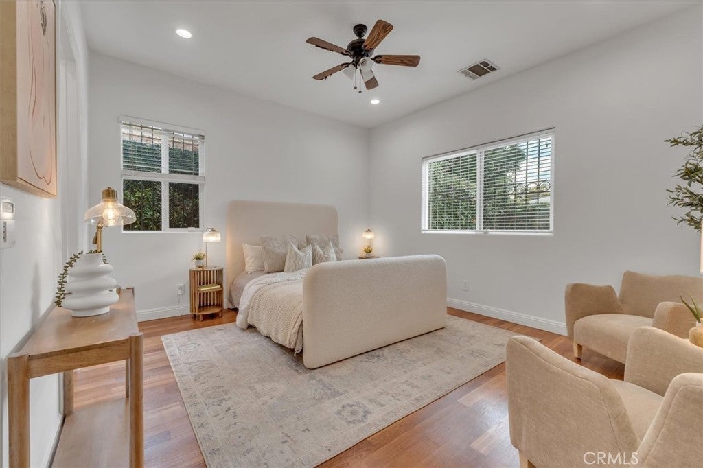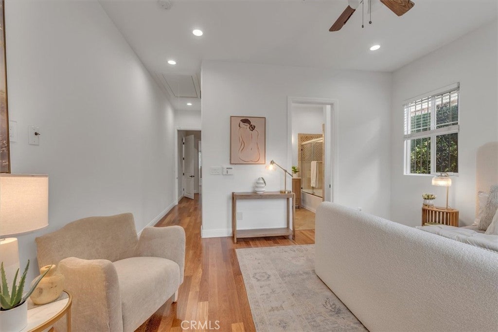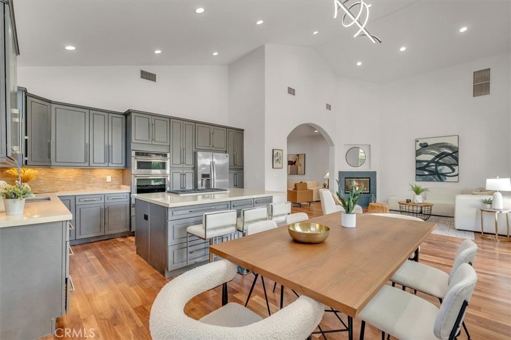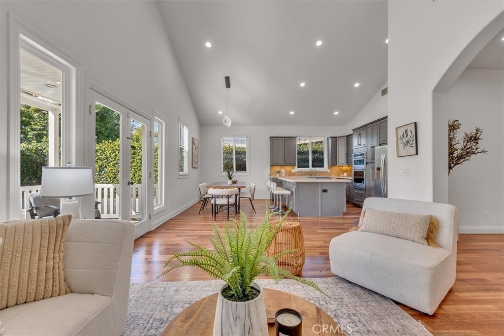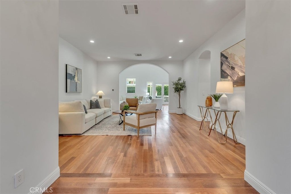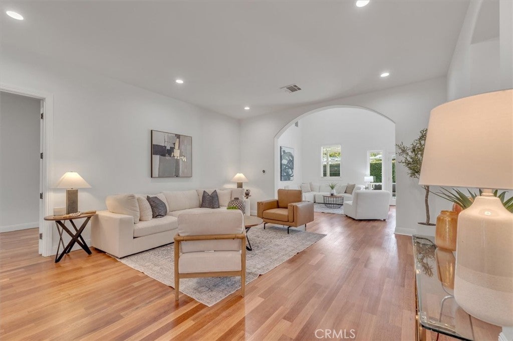 Welcome to this stunning Encino Village residence! This beautifully updated home features 4 bedrooms plus a complete attached Guest Studio/ADU (converted garage with a private entrance, kitchenette, and full bathroom) — offering incredible flexibility for extended family, guests, or rental income. Enjoy 4 stylishly updated bathrooms with new vanities, a bright open floor plan, and real red oak hardwood floors complemented by elegant crown molding. The spacious living and family rooms boast high ceilings and a cozy Fireplace, creating the perfect setting for both relaxation and entertaining. The modern eat-in kitchen showcases sleek quartz countertops, a central island with cooktop, stainless steel appliances, and a welcoming dining area overlooking the private patio and heated pool — perfect for indoor-outdoor California living. Located in the highly sought-after Encino Village neighborhood, within the boundaries of award-winning Encino Charter Elementary School, this home offers prime access to the 101 and 405 freeways, local parks, tennis courts, bike paths, the Encino Community Center, and Balboa Park & Golf Course. Move-in ready and turnkey — this home truly has it all!