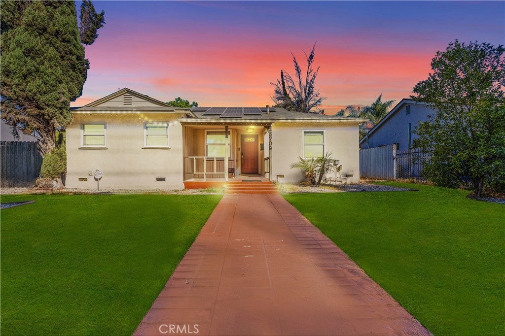 Nestled in one of Granada Hills’ most desirable neighborhoods, this beautifully updated single-story residence seamlessly blends modern comfort with versatile living. Featuring 5 bedrooms and 4 bathrooms, including a fully permitted one-bedroom, one-bath ADU with separate utilities, this home offers approximately 1,854 square feet of living space on a generous 7,801-square-foot lot. Step inside to an inviting, light-filled open floor plan adorned with large windows, stylish modern finishes, and thoughtfully designed spaces. The primary suite features dual en-suite baths, allowing for flexible living arrangements and added privacy. The main residence includes four bedrooms and three baths, while the detached ADU provides the perfect setup for multi-generational living or an excellent rental opportunity. Both the main home and ADU are equipped with paid-off solar panels, enhancing energy efficiency and reducing monthly costs. An electric gated entry offers added security and convenience, complemented by RV access, a gated driveway, and ample parking. The outdoor spaces are equally impressive, with a covered patio, paved entertaining areas, and beautifully landscaped yards offering a serene retreat. The kitchens boast granite countertops and tasteful modern upgrades throughout. Zoned LARD6 with no HOA, this property delivers the freedom and flexibility every homeowner desires. Ideally situated near major freeways, shopping, dining, and top-rated schools—including Haskell STEAM Magnet, George K. Porter Middle, and John F. Kennedy High—this home represents the perfect balance of lifestyle, location, and investment potential. Don’t miss the chance to own this exceptional Granada Hills gem—schedule your private showing today!