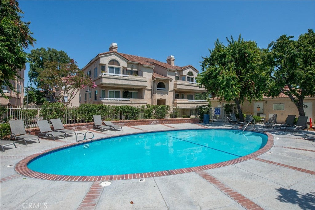Located in a beautiful pocket of Newhall, this gated, top floor corner condo offers a peaceful retreat in a serene neighborhood. The spacious 3 bedroom, 2 bath layout is move-in ready! Highlights include a modern kitchen with quartz countertops, a cozy fireplace in the living room, sweeping views of the hills and mountains, and a private en suite primary bedroom. A versatile loft easily accessible by staircase which features a wet bar. Enjoy the convenience of in unit laundry, generous storage throughout, and a refreshing cross breeze. The well maintained community pool is just steps away, and the neighborhood is perfect for scenic walks and easy living.