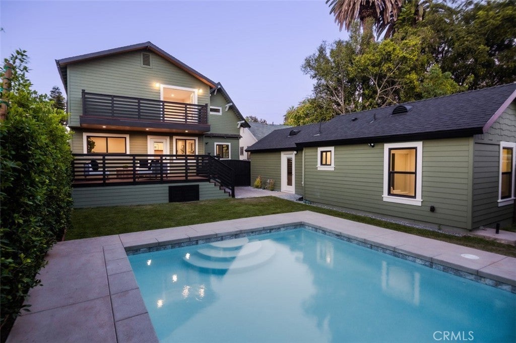 In the heart of storied Angelino Heights, this meticulously restored Craftsman originally built in 1907 and fully reimagined by DesignBuildLA, seamlessly blends timeless character with modern sophistication. Every detail has been thoughtfully considered to honor its historic soul while introducing contemporary comforts, with all-new systems, designer finishes, and architectural updates that celebrate both heritage and luxury. Spanning over 3,500 square feet, the main residence offers 4 bedrooms and 4 bathrooms, with an office and interiors flooded in natural light from original period windows. Soaring ceilings, a wood-burning fireplace, and expansive living and dining areas create a backdrop equally suited for intimate evenings or grand entertaining. Flexible spaces abound, from a dedicated office and cozy reading nook to a family room with a custom bar that flows effortlessly to the backyard and deck.The chef's kitchen is a true centerpiece, appointed with striking Viola marble, custom oak cabinetry, handmade tilework, stone-edged details, built-in appliances, and a spacious walk-in pantry. Upstairs, the primary suite is a serene retreat with sweeping views of Downtown Los Angeles, a private balcony, a custom walk-in closet, and a spa-like bath featuring dual vanities, handmade zellige tile, a freestanding soaking tub, and a separate shower. Outdoors, the home unfolds into a private oasis with a brand-new pool, landscaped grounds, and an expansive deck framed by lush greenery. A detached two-bedroom, one-bath ADU with a full kitchen offers endless flexibility perfect for guests, extended family, or additional income.Set within Los Angeles' first designated suburb and a protected Historic Preservation Overlay Zone (HPOZ), Angelino Heights is renowned for its iconic collection of Victorian and early Craftsman homes many immortalized in film, television, and music videos. Just moments from Echo Park Lake, Silver Lake, and some of the city's most beloved cafes, dining, and cultural destinations, this property offers not only a home but an invitation to live at the intersection of history, design, and modern Los Angeles living.