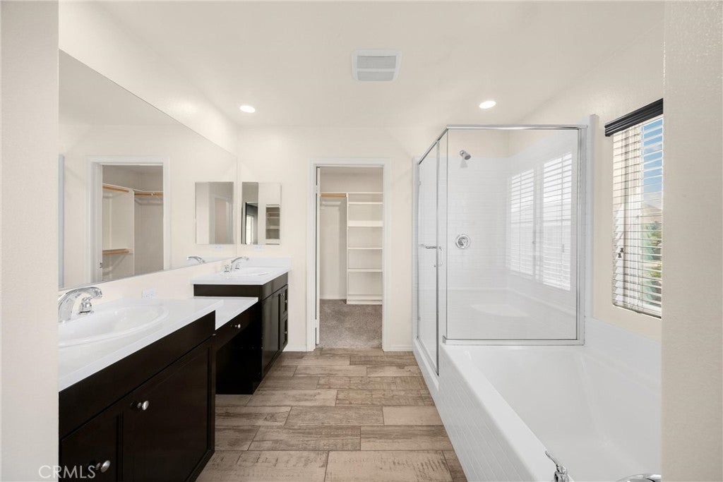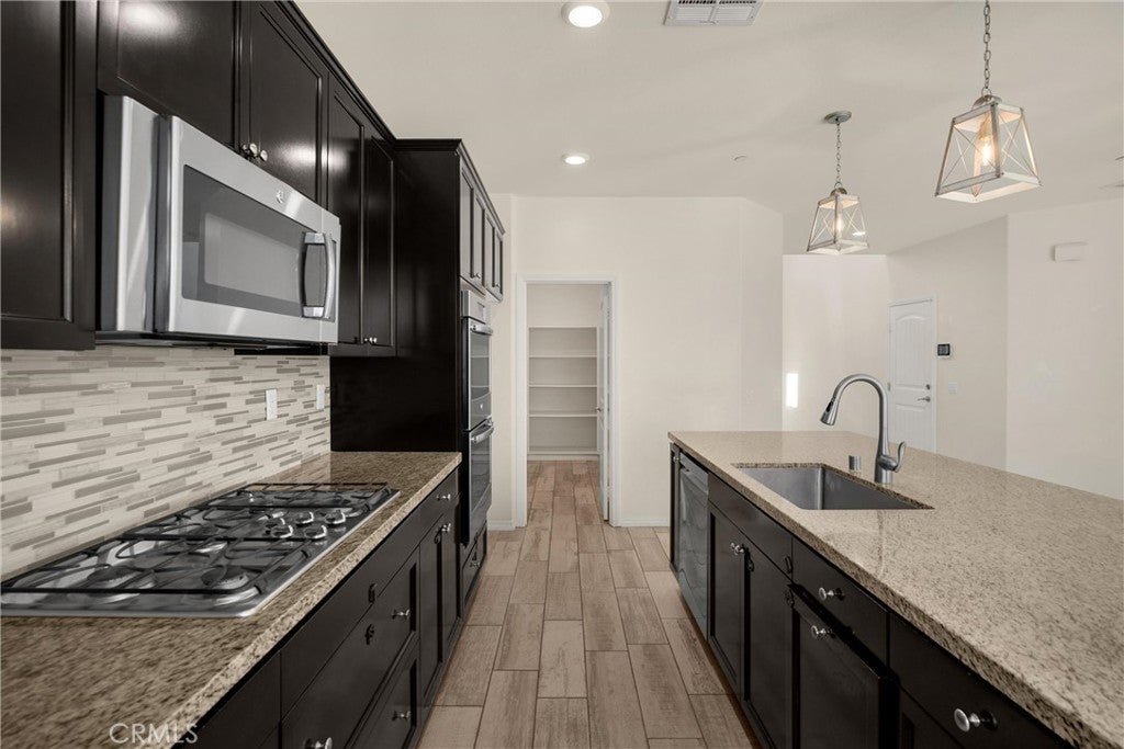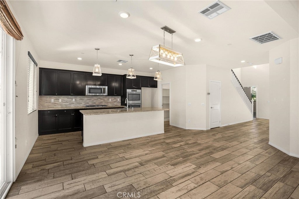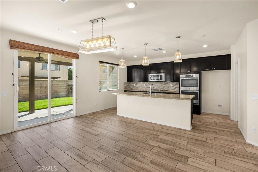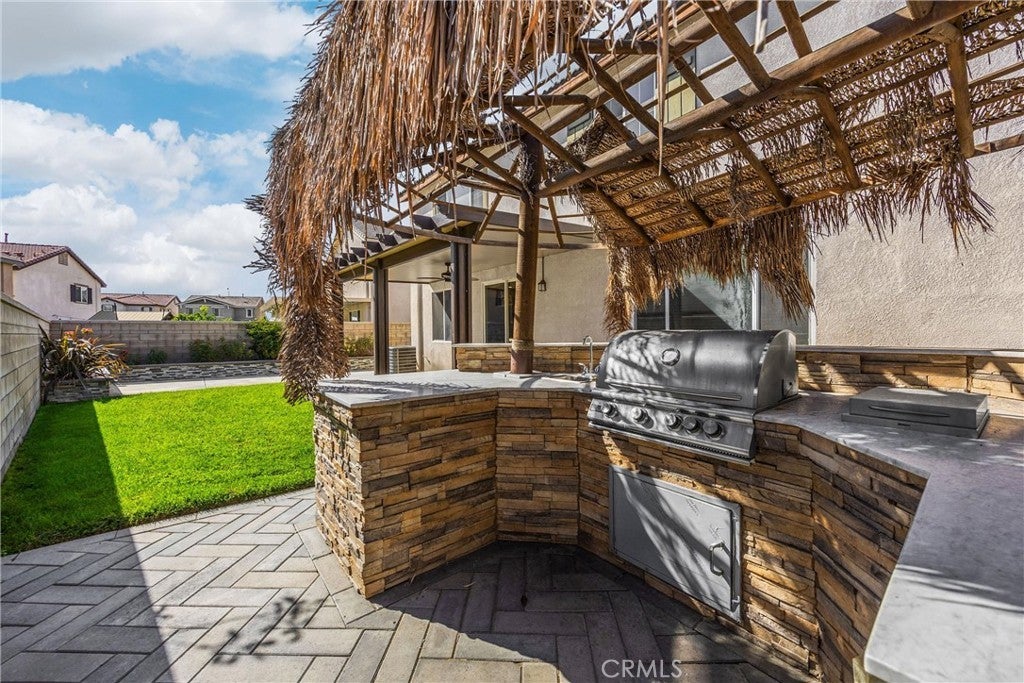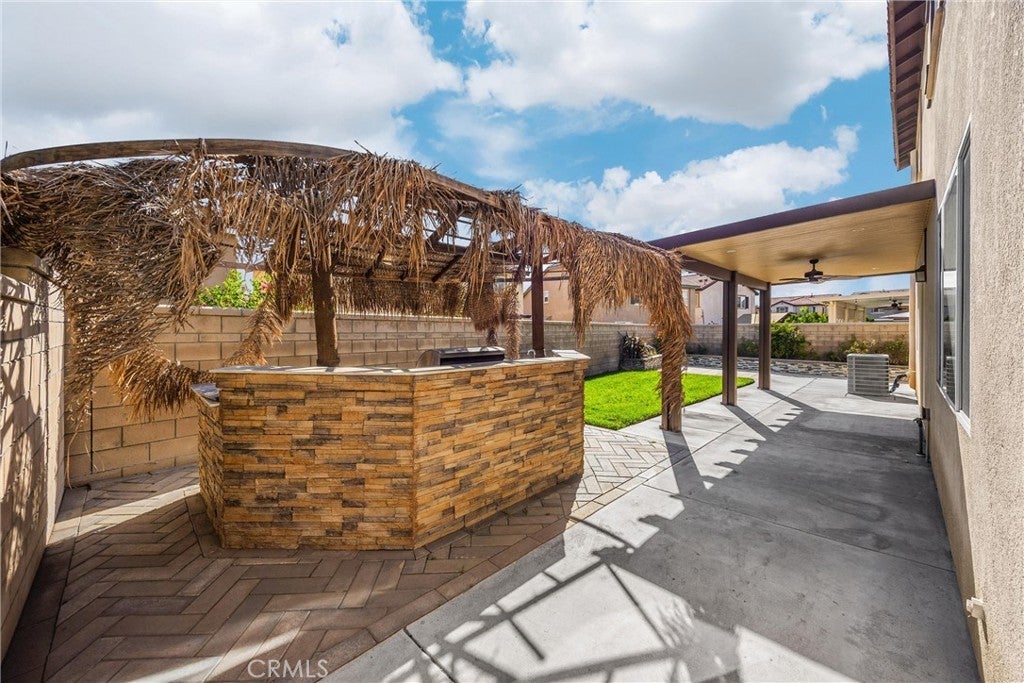 Turn-key 4-bedroom, 3-bath, 2,400+ sq ft Spanish-style home in the desirable Riverbend community of Jurupa Valley. Built in 2016, this bright two-story layout includes a large loft, soaring entry ceilings, hardwood flooring, generous storage, and a spacious living area with natural light, fireplace, and backyard access and is located within the highly regarded Corona-Norco Unified School District. The adjoining galley-style kitchen features granite countertops, a seated island, stainless steel appliances, and a large walk-in pantry. A first-floor bedroom and full bath complete the lower level, ideal for guests, office use, or extended-stay family. Upstairs, the expansive loft offers a perfect second living area or media space. The primary suite features a spa-style bath with dual-sink vanity, soaking tub, separate shower, sliding barn-door entry, and a large walk-in closet. Two additional bedrooms, a dual-sink guest bath, and a large spacious laundry room with built-ins complete the upper level. System upgrades include tankless water heater, water softener, security system, and financed solar. The private backyard is designed for entertaining and offers a large covered patio with a ceiling fan, manicured yard, play area, raised garden bed, and a tiki-style gazebo with a full outdoor kitchen— equipped with quartz countertops, built-in BBQ, sink, range, and mini-fridge. Community amenities include a park, BBQ area, playground, basketball court, equestrian trail, and 9-hole Frisbee golf course. Premium location near Costco, 99 Ranch Market, Eastvale Gateway, and top-rated Corona-Norco USD schools including River Heights Intermediate and Eleanor Roosevelt High School, with quick access to the 15, 60, 10, and 91 freeways. A turnkey opportunity in one of Jurupa Valley’s most desirable neighborhoods—offering space, style, and modern comfort with outstanding community and regional amenities.