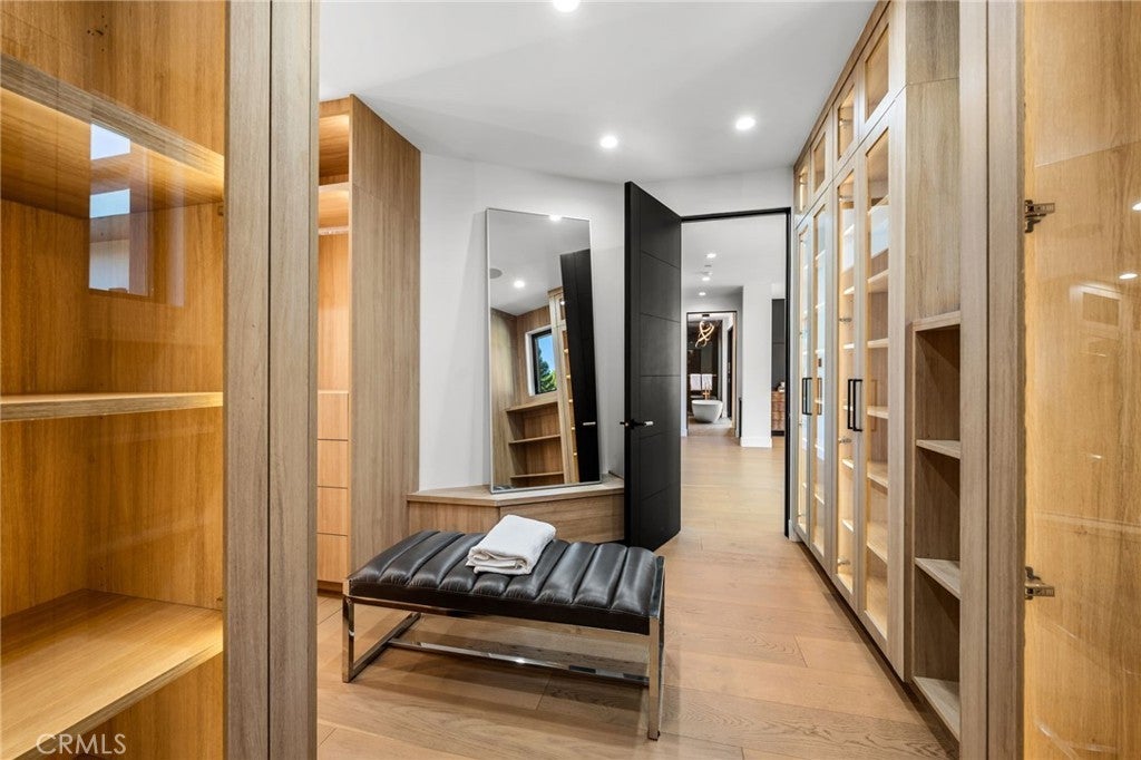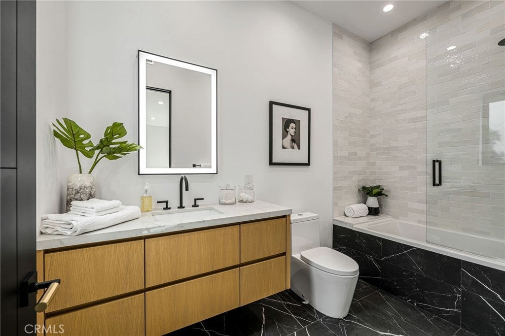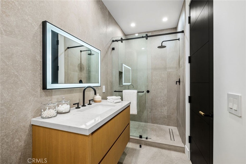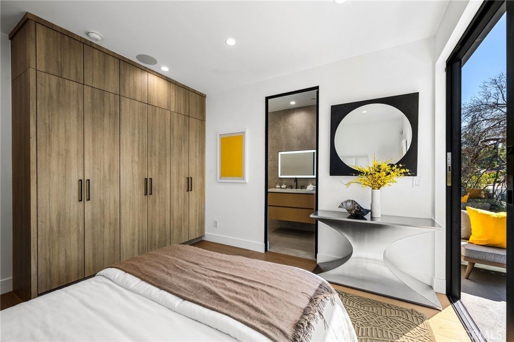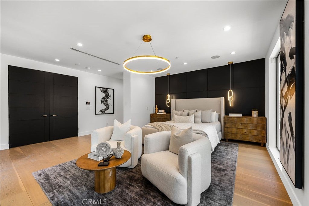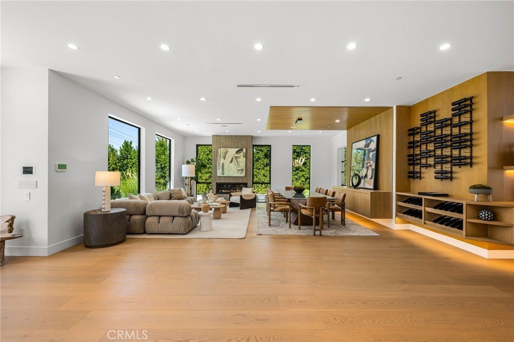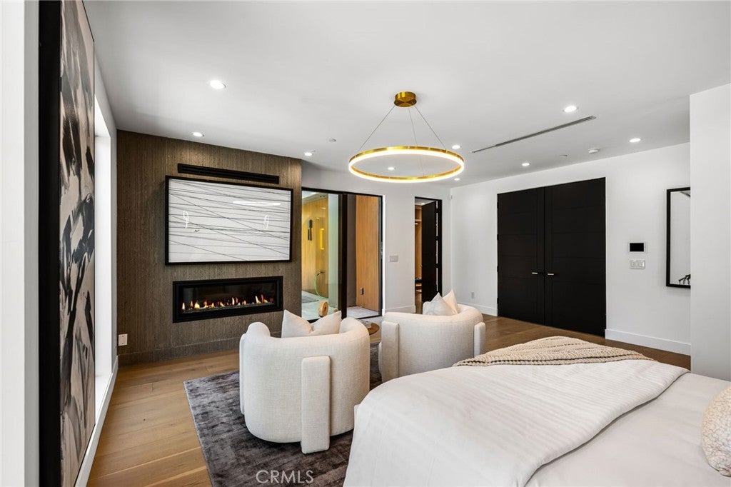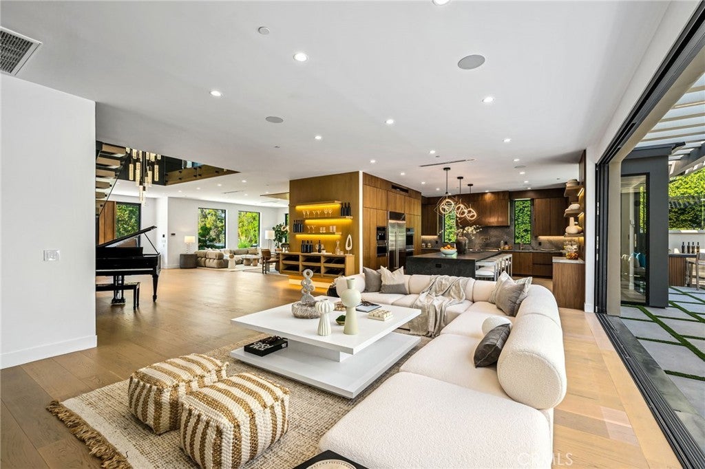 Stunning Private Estate South of the Boulevard located in one of the most desirable neighborhoods in Tarzana, this exceptional private gated estate offers the perfect blend of modern design and luxurious living. Set on beautifully landscaped grounds, the home boasts 5 bedrooms, 7 bathrooms, a study, a media room, and an array of high-end amenities that make it an entertainer's dream. The open floor plan creates a seamless flow between the living spaces, making it ideal for both intimate gatherings and large-scale entertaining. The chef’s kitchen is a culinary masterpiece, featuring Wolf and Sub-Zero appliances, a large center island, quartz countertops, a breakfast area, and a Miele coffee maker. The romantic primary suite serves as a serene retreat with a cozy fireplace, a spa-like bathroom, a large walk-in closet, and two private balconies. Additional highlights include 6 fireplaces throughout the home, a Crestron smart home system, Fleetwood pocket doors, integrated indoor and outdoor speaker systems, and security cameras. The exterior is just as impressive, with lush landscaping, a large reverse infinity pool and spa, a pool house, and a fully equipped outdoor kitchen with a 5-burner stove, BBQ, and beverage refrigerator. A covered patio with dual fireplaces is perfect for year-round entertaining and relaxation. For active pursuits, there’s a lighted sport court and a putting green, ensuring there’s something for everyone. Other standout features include a detached garage with ample parking space for luxury vehicles, RVs, and tour buses, as well as room for 10+ additional cars. The property is fully equipped with solar panels and underground utilities for enhanced sustainability. This home offers unparalleled privacy, comfort, and style, making it an ideal sanctuary for those seeking the ultimate in luxury living.