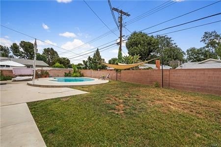 Come see this beautiful remodeled home in the desired area of West Hills! 3 beds and 2 baths, just under 1,400 sqft of living space on a nearly 8,000 sqft private lot. Perfect open layout filled with natural light. The Chef's kitchen with a center island showcases luxury living with the finest finishes and opens to the family room. The private backyard with a large grassy area is perfect for entertaining, while the sparkling large pool and lush landscape make it feel like a resort. Two attached car garage , epoxy floors and AC unit. Garage can be easily concerted to an ADU with a separate entrance and his own backyard for additional income. Located on a quiet and beautiful street. This one won't last!
