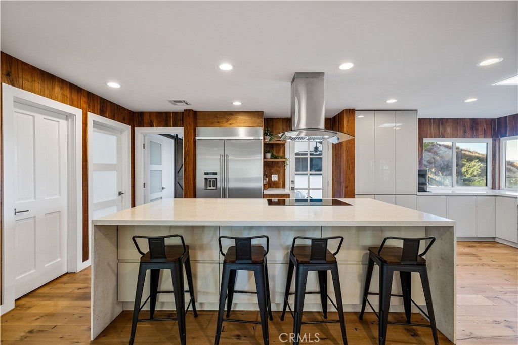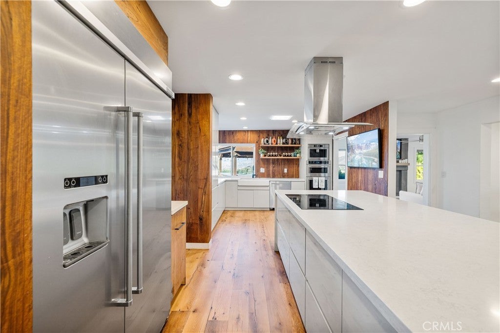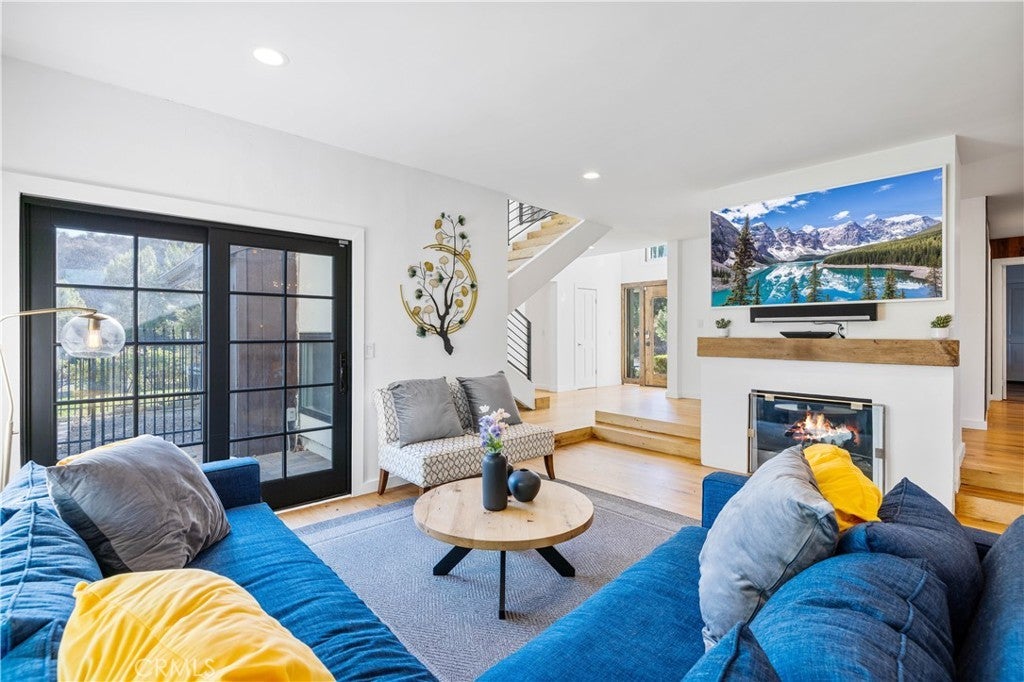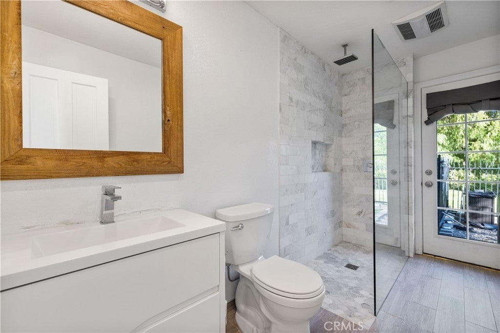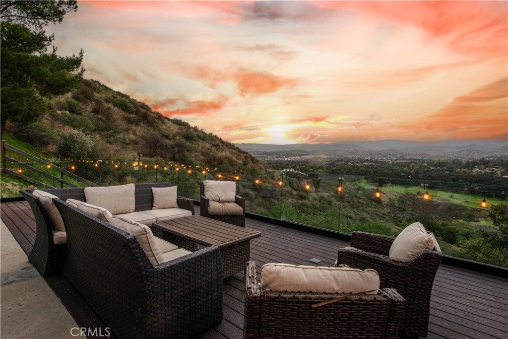 Nestled behind private gates atop a secluded Sand Canyon lot, this stunning move-in-ready home offers over 3,000 sq ft of beautifully updated living space with 4 spacious bedrooms and 3 elegant bathrooms. Enjoy sweeping panoramic views of the surrounding mountains and sparkling city lights — among the best in Sand Canyon. Inside, discover an inviting open layout with reclaimed white oak flooring and a remodeled kitchen featuring a striking reclaimed walnut backsplash, combining modern design with eco-conscious touches. The spacious primary suite offers a cozy fireplace, walk-in closet, and spa-like en-suite bathroom with dual sinks, a luxurious shower, and freestanding soaking tub. Perfect for both entertaining and everyday living, the home features a dedicated office, Cat6 wiring throughout, 11 mounted TVs, and Lutron smart automation for effortless control of lighting and climate. Energy efficiency shines with a paid-off solar system, two Tesla Powerwalls, a new roof, and upgraded electrical panel (2021). Step outside to a resort-style backyard showcasing a sparkling pool, a custom wood-fired pizza oven, and breathtaking views from every angle. A two-car garage on the lower level provides ample parking and storage, and there’s exciting potential to build an ADU for guests or rental income. Located near horse trails, award-winning schools, shopping, and the newly renovated Sand Canyon Country Club, this home offers the perfect blend of privacy, technology, and luxury living. 16337 Ravenglen Road truly defines serenity and sophistication — welcome home.