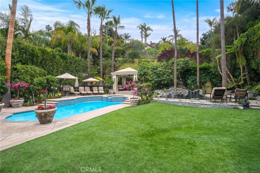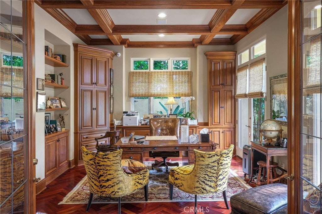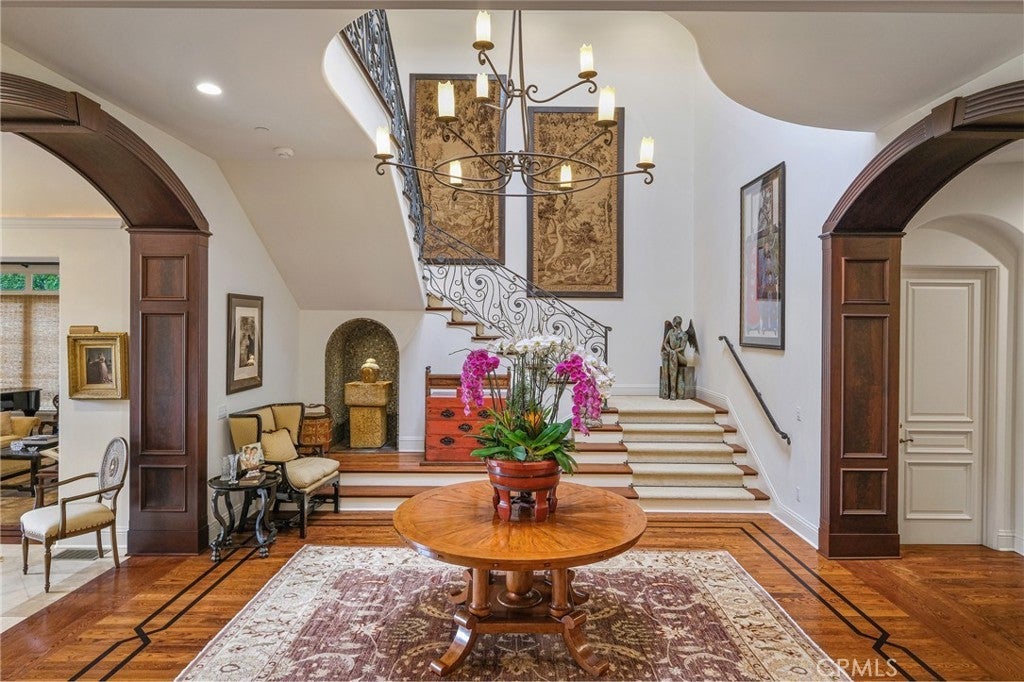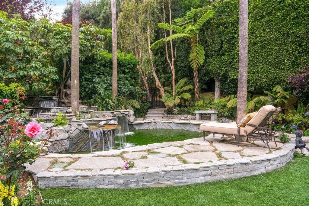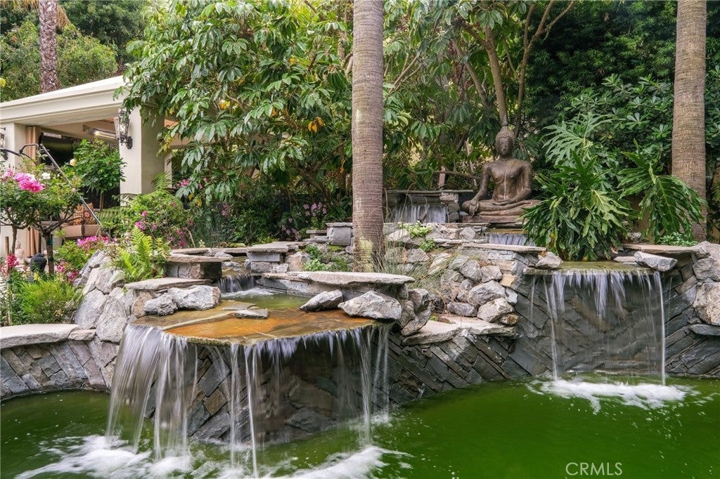 Welcome to this stunning Mediterranean home located in the exclusive guard-gated Mulholland Estates community. This magnificent residence offers 5 spacious bedrooms and 7 luxurious bathrooms across 7,630 square feet of refined living space on a 20,351 sq ft lot. Step into a dramatic two-story foyer that sets the tone for elegance throughout. The home features a formal living room, oversized dining room, executive office/den, and a versatile family/media room. The gourmet chef’s kitchen is a culinary dream, complete with a center island, breakfast area, and top-of-the-line stainless steel appliances, all overlooking the beautifully landscaped backyard. Enjoy resort-style living with a private pool, spa, built-in BBQ, koi pond,(koi not included) and secluded cabana—perfect for entertaining or relaxing in your own oasis. The second level boasts dual staircases and a private elevator, leading to a grand primary suite with a fireplace, sitting area, spa-like bath, steam shower, and expansive walk-in closet. Additional en-suite bedrooms and a cozy den with patio access complete the upper level. The finished lower level includes maid’s quarters, ample storage, and a 4-car tandem garage. Smart home features, 3 generators and architectural details such as beamed ceilings, crown molding, and recessed lighting elevate the home’s character and charm. Located on a cul-de-sac lot of over 20,000 sq ft, this property offers privacy, security, and convenience—just minutes from the Westside, Valley, and top-rated private schools.