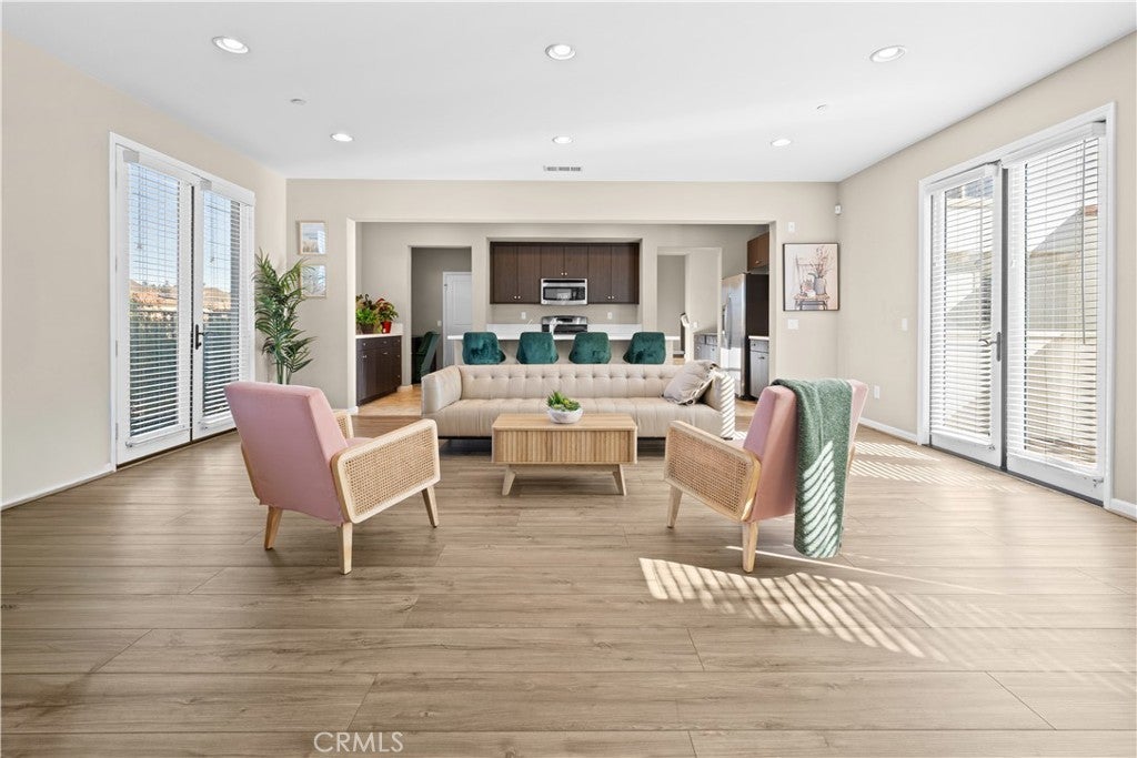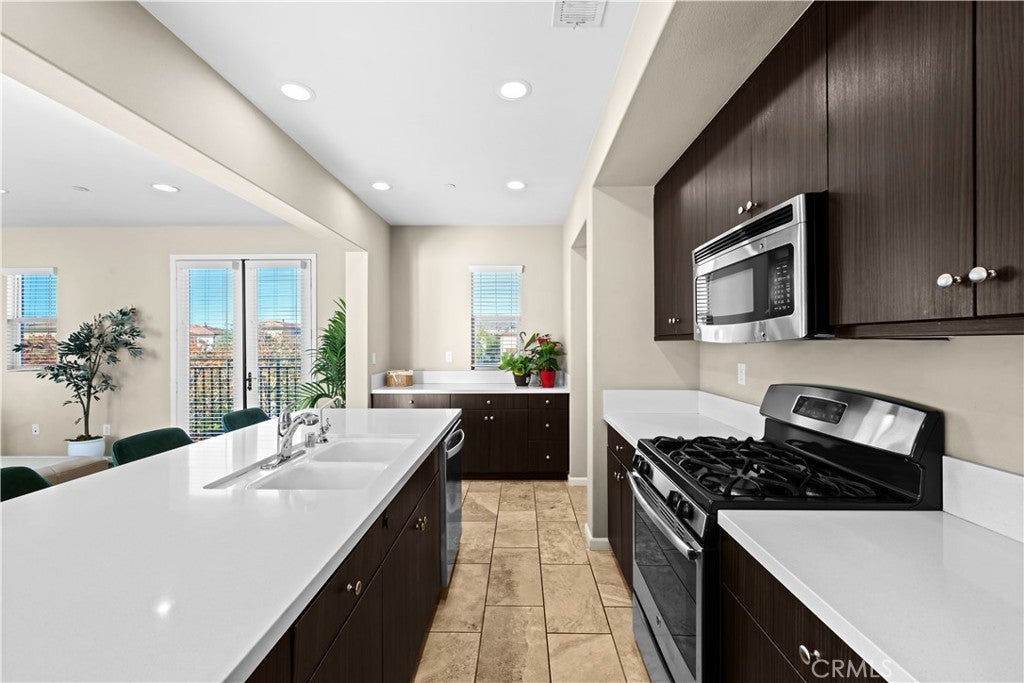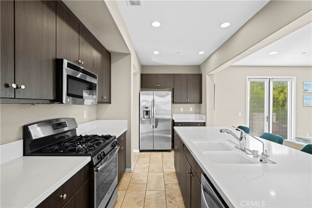 Come see this one of a kind Mediterranean townhome in the Villa Metro community of the Cielo subdivision! It combines stylish living with an adaptable 400 sq ft retail space on the bustling main street delivering a seamless live/work/play vibe. Inside you'll find an open light filled layout highlighted by an updated kitchen with quartz countertops, stainless steel appliances and recessed lighting, plus hardwood floors, a convenient laundry closet and a cozy study nook. The bedrooms sit on the top floor, for maximum privacy, each with its own ensuite bath and generous walk-in closet, while an attached private 2-car garage on the ground floor adds easy, secure parking. The gated retail space features a private bathroom and a spacious front patio, offering diverse possibilities from a store-front or studio, to an additional living or entertainment area, all just steps away from restaurants and Metrolink station. The community compliments the lifestyle with a pool, fire pits, clubhouse, play areas and a garden, creating a welcoming backdrop for work, home and a social life.