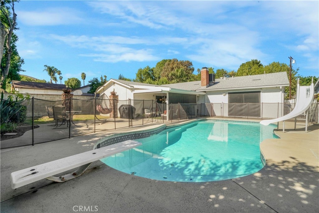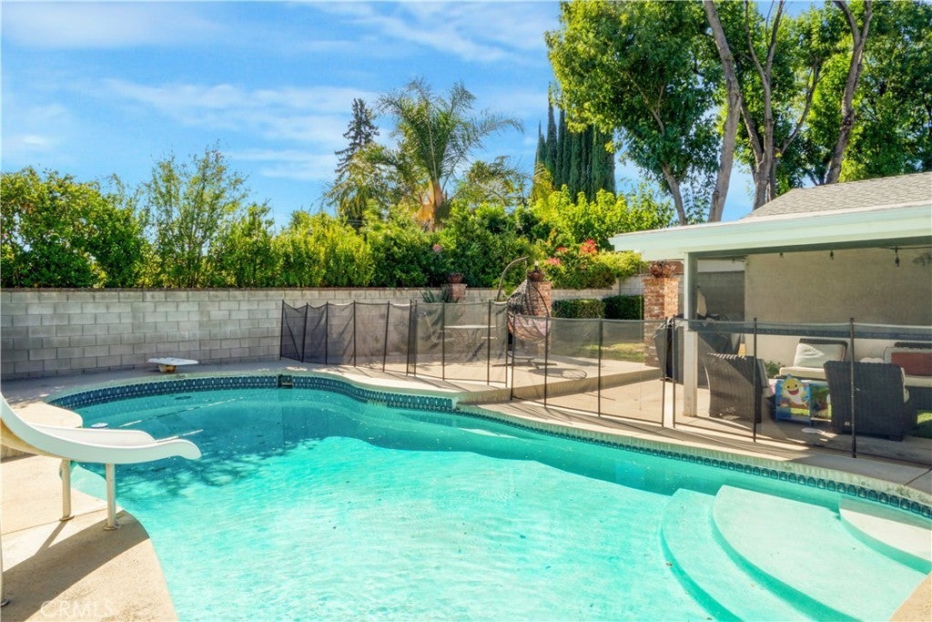 Discover your peaceful haven in the heart of West Hills! This safe and serene neighborhood, framed by picturesque tree-lined streets and natural beauty, is where you'll find this inviting 2,380 sq ft home. Featuring 4 generous bedrooms and 3 baths, its open layout is designed to maximize natural light and comfortable living. The versatile interior offers an eat-in breakfast area, formal dining space, and a welcoming, large living room with a wood burning fireplace, all adorned with tile flooring. Modern upgrades include a cool roof, new garage door, covered patio with remote controlled shades, wood shutters, copper plumbing and new sewer line, whole house water filtration system, and a pool with water slide and diving board. The expansive backyard is your private oasis, complete with a covered patio, ideal for year-round enjoyment, from grilling to relaxation to family fun. Families will appreciate the top-tier school district, including Pomelo Community Charter, Hale Middle School, and El Camino High School (tenants are encouraged to verify enrollment requirements). Luxury ADU for extra income. The brand new ADU features include 1 Bedroom and 1 Bathroom, and a full kitchen with stainless steel appliances, a new refrigerator, a gas range, and a dishwasher. A laundry in the closet with a brand-new washer and dryer. Also offers wood vinyl flooring, double pane windows, a tankless water heater, and a new wall-mounted split A/C and heat unit with a remote control. The ADU has a private entrance. Enjoy a unique blend of country-like tranquility and urban convenience with grocery stores, dining, public transport, Old Town Calabasas, and the Topanga Village at Warner Center all within easy reach. Walking distance to the community park with playgrounds, outdoor gym, and basketball courts. Plus, sunny beaches are just a half-hour drive!