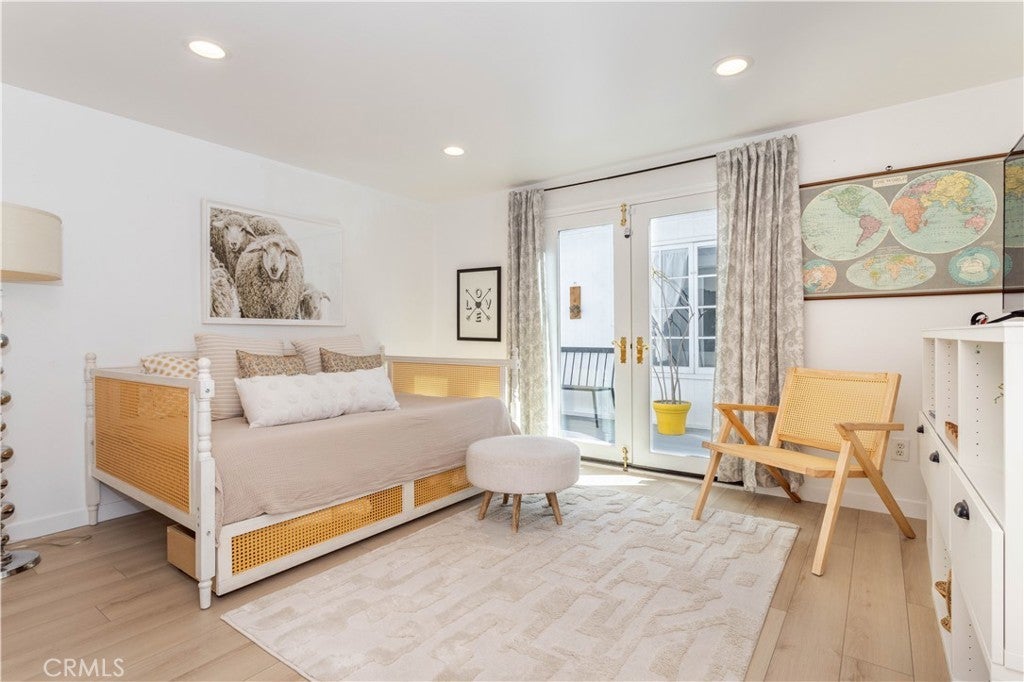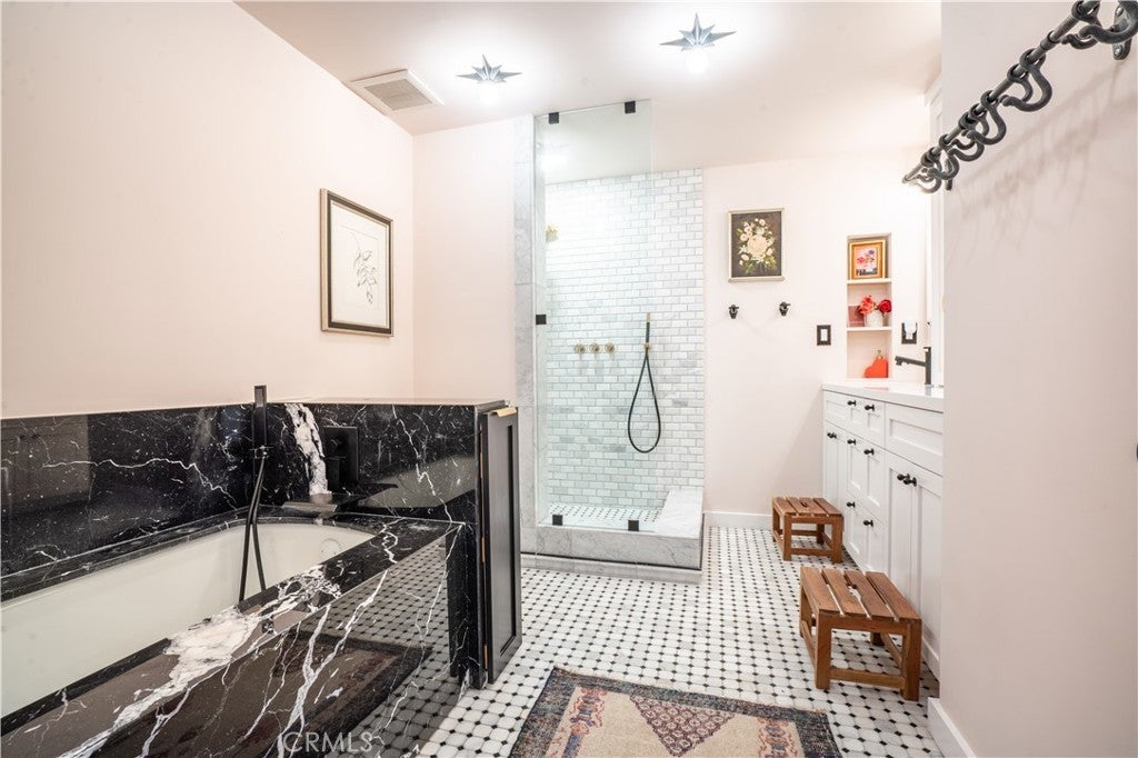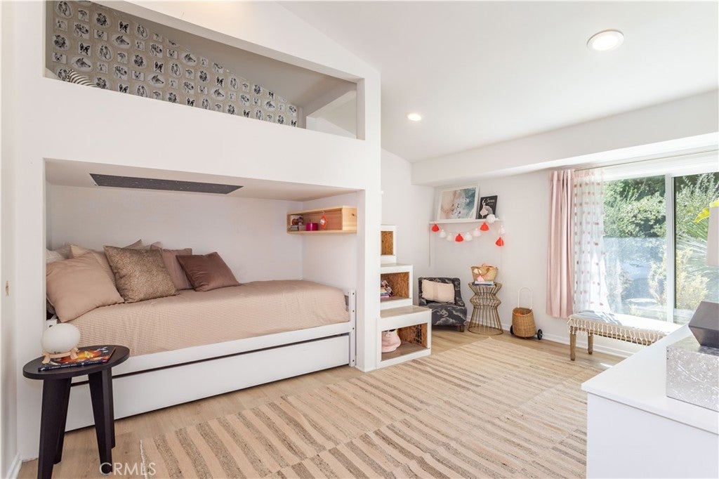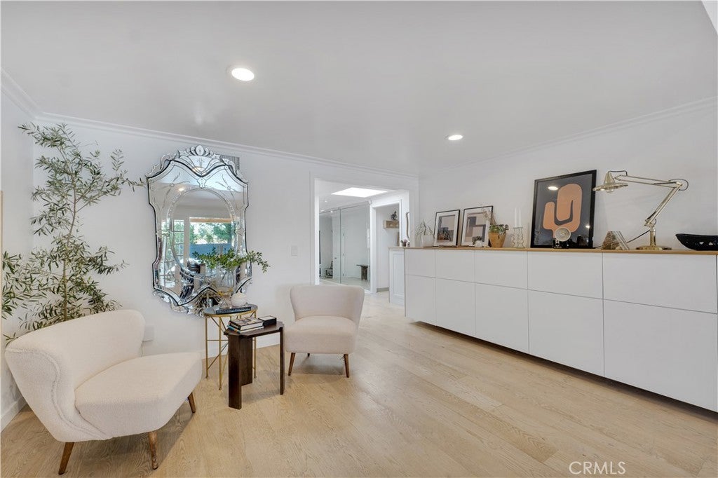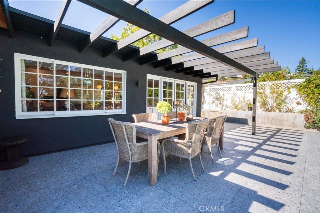 Stunning Mid-Century one story ranch seamlessly blends timeless charm with modern elegance. This is an interior designer’s home, every detail of this home has been carefully curated for style and functionality. A beautifully landscaped front yard sets a serene tone as you approach this 3,080-square-foot home, situated on an expansive 11,286-square-foot lot. Offering five bedrooms and four bathrooms, the layout is both spacious and versatile. The fifth bedroom and bath are privately positioned apart from the others, making it ideal for guests, extended family, or home office. The primary suite is a true retreat, featuring a walk-in closet plus an additional floor-to-ceiling closet space and French doors looking at the backyard. Its newly renovated ensuite bathroom boasts double sinks and a stunning marble shower. The additional bedrooms are generously sized, each offering ample closet space. One bedroom features a custom-built bunk bed, perfect for kids or anyone seeking a cozy, private space to read and relax. At the heart of the home, the open-concept kitchen is a chef’s dream. Designed with soaring ceilings, an exposed beam, and custom cabinetry adorned with unlacquered brass handles, this space is both elegant and practical. Premium Thermador appliances, including a six-burner stove, extensive counter space, a custom wood center island, and an inviting eat-in kitchen area. The kitchen seamlessly flows into the great room, featuring a custom fireplace surround, built-in dry bar, and French doors that open to the backyard—creating a warm and inviting atmosphere. Step outside into your private backyard retreat, where a sparkling pool with water jets, a relaxing spa, and a cozy firepit await. Multiple seating areas, a covered patio designed for outdoor dining and relaxing, and lush drought-tolerant landscaping—including stunning olive trees—make this space both breathtaking and low maintenance. This lovely backyard comes complete with an inspiring art studio and a welcoming craft corner. Located within the highly sought-after El Camino Charter School District, this exceptional property is just minutes from the freeway, Hidden Hills, Calabasas, and Warner Center. A rare blend of mid-century charm and modern luxury that must be seen to be fully appreciated.