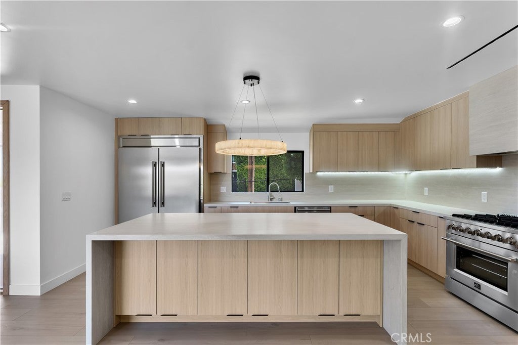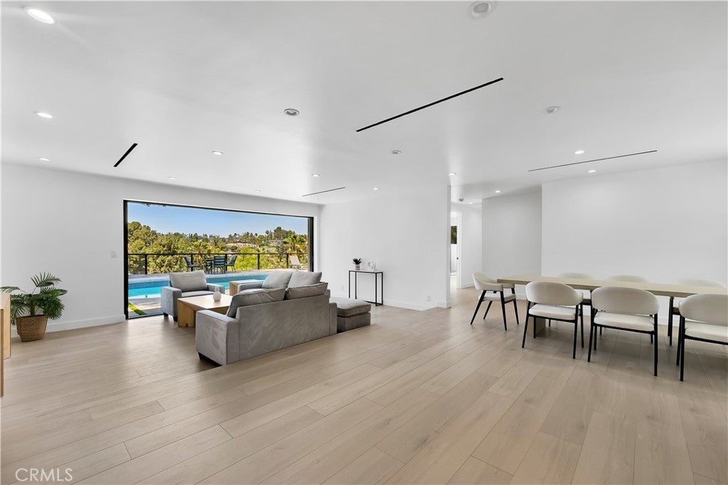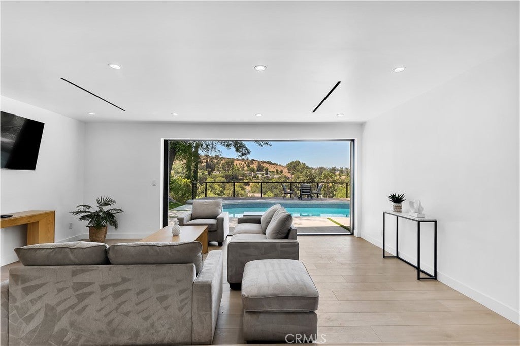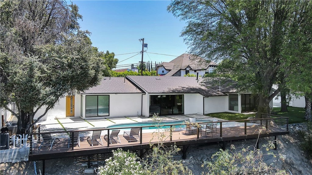 17072 Oak View Drive welcomes you to a fully remodeled showpiece nestled in one of Encino’s most prestigious neighborhoods. Behind a gated entrance on a generous lot, this home offers the perfect blend of privacy, sophistication, and style. Step inside to discover an open-concept floor plan flooded with natural light, featuring wide-plank hardwood floors and designer finishes throughout. The gourmet chef’s kitchen is the heart of the home, outfitted with premium stainless steel appliances, quartz countertops, a stunning waterfall island, and custom cabinetry. Designed for seamless indoor-outdoor living, the expansive living and dining areas open directly to a private backyard oasis—complete with a sparkling pool, manicured landscaping, multiple lounge and dining spaces, and even a private basketball court. The luxurious primary suite is a true retreat, boasting a spa-inspired bathroom with soaking tub, oversized walk-in shower, dual vanities, and a generous walk-in closet. A dedicated office and three additional bedrooms offer comfort and flexibility for family, guests, or work-from-home needs. Unwind each evening with breathtaking, unobstructed views of the city skyline—an unforgettable backdrop to your new life in this one-of-a-kind Encino estate.