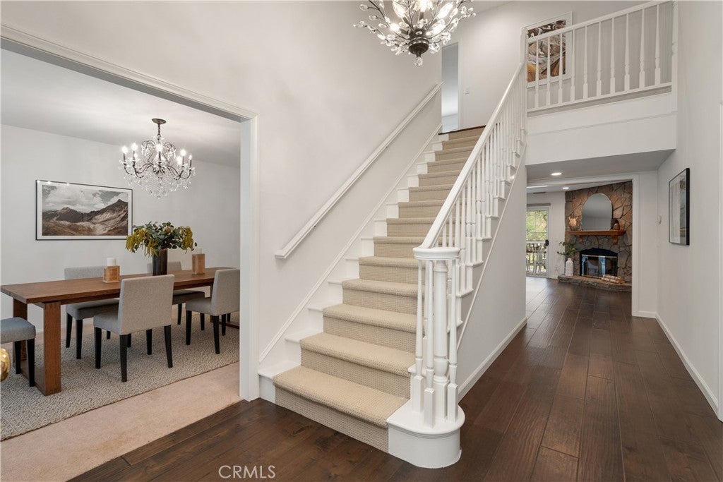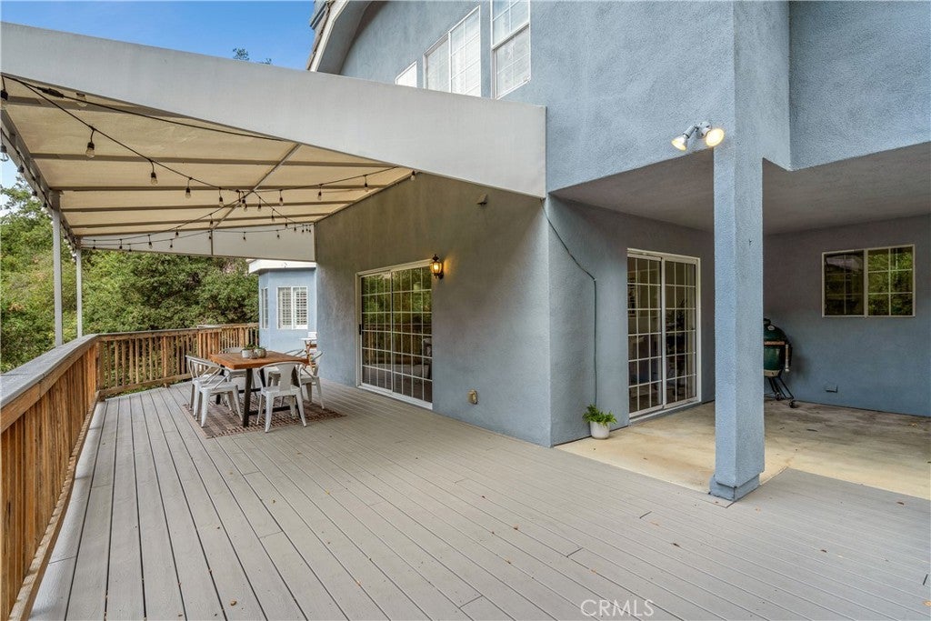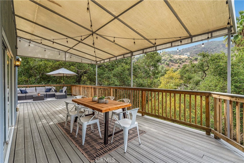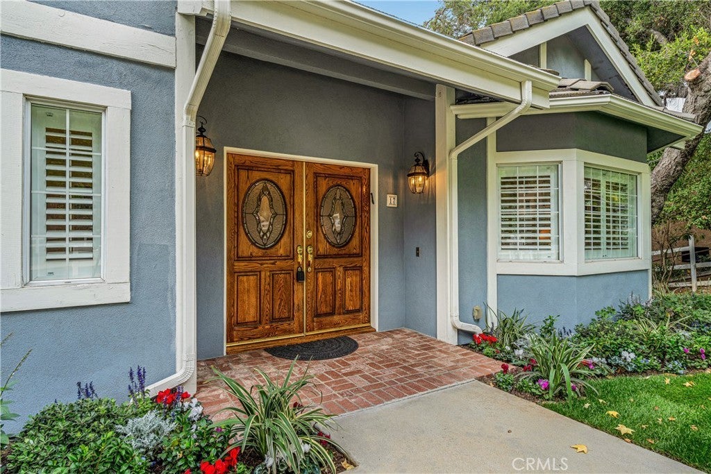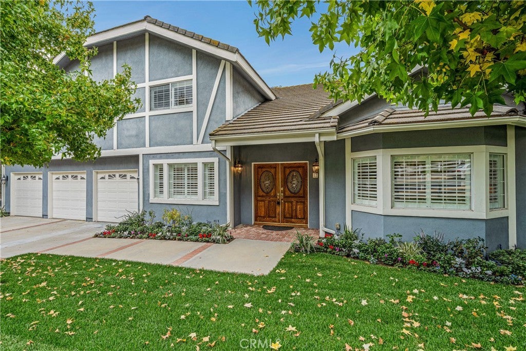 Welcome to Bell Canyon. Enjoy this 5 bedroom/3.5 bath home with almost 3200 square feet of comfortable living space. Enter elegant double beveled-glass doors into a bright foyer flanked by formal living and dining rooms that frame the staircase. The spacious chef’s kitchen features abundant cabinetry, a walk-in pantry, granite counters, and a sunny breakfast nook with views of the lush canyon greenery. Enjoy meals at the counter, in the breakfast area, or outdoors on the expansive deck. The adjoining family room, complete with a decorative stone fireplace, opens to the deck — perfect for indoor/outdoor entertaining. The deck spans the length of the home and offers multiple covered sitting areas, sparkling string lights, and a relaxing hot tub — ideal for entertaining or quiet evenings surrounded by nature. There’s also plenty of space to expand these outdoor areas if desired. Upstairs, you’ll find five bedrooms (one currently used as an office). Two of the bedrooms are large en suites with beautifully updated bathrooms, including the spacious primary suite featuring ample closet space. The primary bath offers dual sinks, a soaking tub, a subway-tiled shower, and a Toto Washlet toilet — complete with a remote control (because luxury can be fun, too!). A full bathroom serves the remaining bedrooms, while the powder room on the main level is perfect for guests. The laundry room includes built-in shelving and a utility sink and provides direct access to the three-car garage. Additional highlights include Milgard dual-pane windows, plantation shutters throughout, fresh interior paint, exterior touch-ups, and brand-new carpet in the upstairs rooms. Come experience this beautiful Bell Canyon home — where scenic trails, equestrian paths, tennis and pickleball courts, a fitness center, and 24-hour guarded gate access offer the perfect blend of nature, community, and comfort.