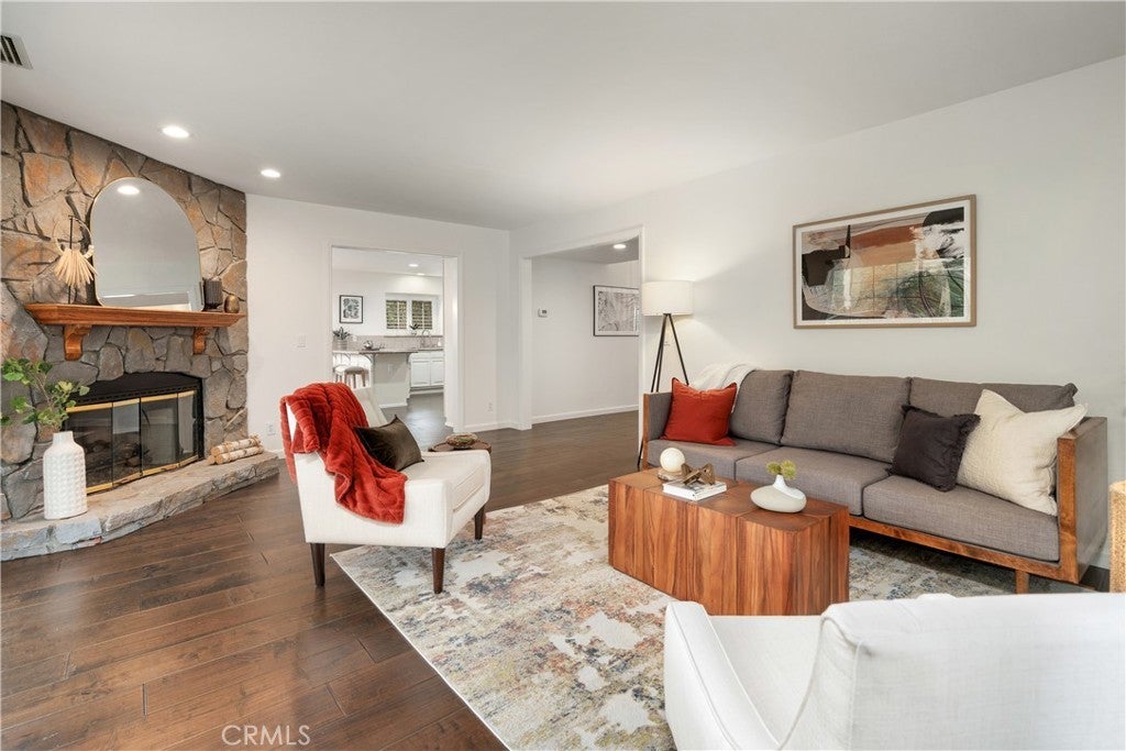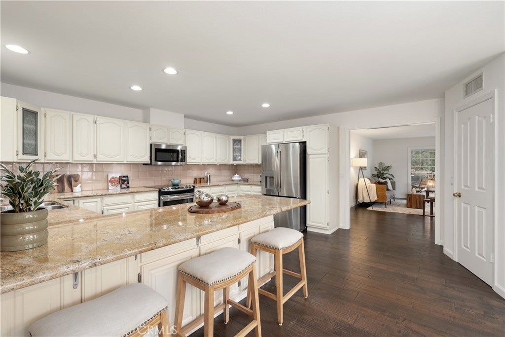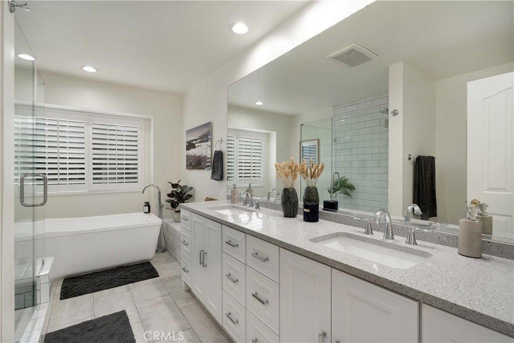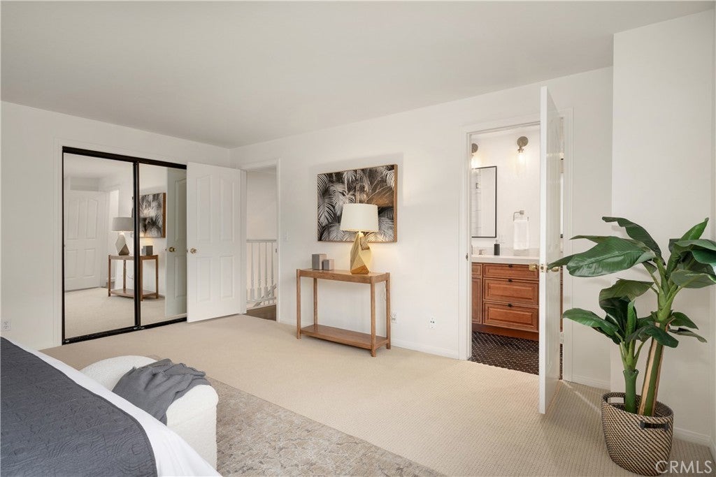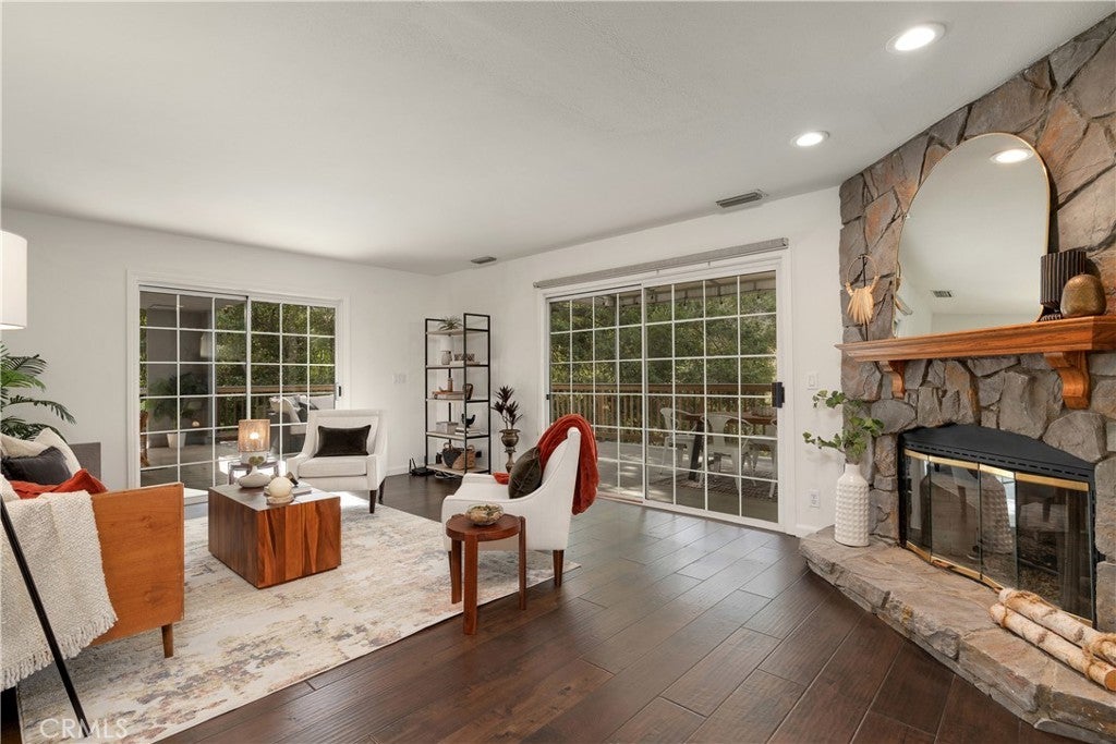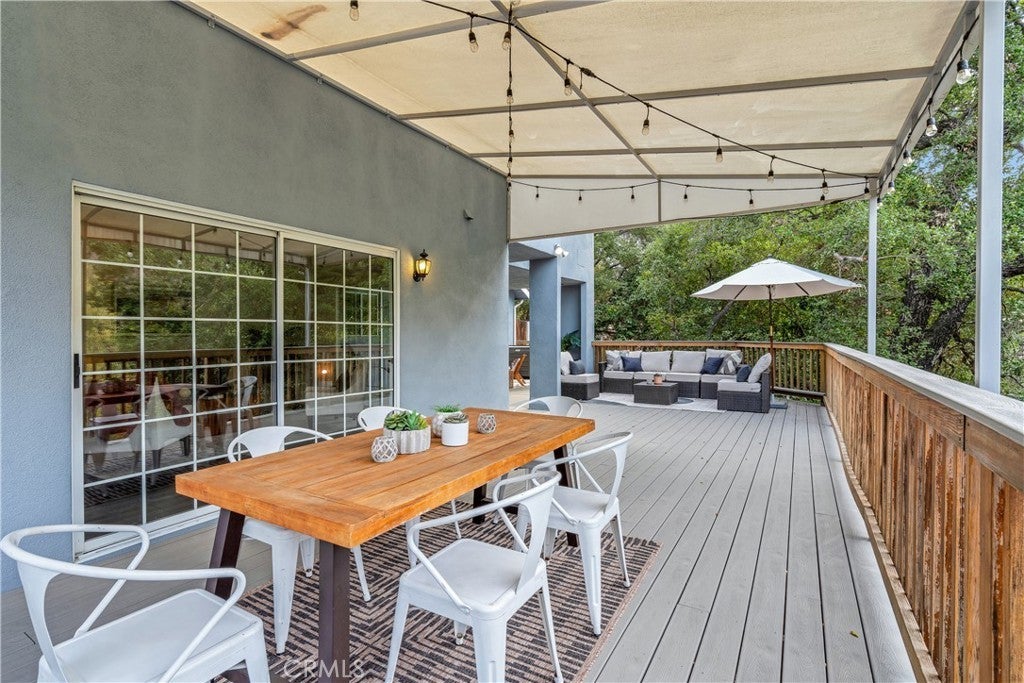 Welcome to Bell Canyon. Enjoy this 5 bedroom/3.5 bath home with almost 3200 square feet of comfortable living space. Enter elegant double beveled-glass doors into a bright foyer flanked by formal living and dining rooms that frame the staircase. The spacious chef’s kitchen features abundant cabinetry, a walk-in pantry, granite counters, and a sunny breakfast nook with views of the lush canyon greenery. Enjoy meals at the counter, in the breakfast area, or outdoors on the expansive deck. The adjoining family room, complete with a decorative stone fireplace, opens to the deck — perfect for indoor/outdoor entertaining. The deck spans the length of the home and offers multiple covered sitting areas, sparkling string lights, and a relaxing hot tub — ideal for entertaining or quiet evenings surrounded by nature. There’s also plenty of space to expand these outdoor areas if desired. Upstairs, you’ll find five bedrooms (one currently used as an office). Two of the bedrooms are large en suites with beautifully updated bathrooms, including the spacious primary suite featuring ample closet space. The primary bath offers dual sinks, a soaking tub, a subway-tiled shower, and a Toto Washlet toilet — complete with a remote control (because luxury can be fun, too!). A full bathroom serves the remaining bedrooms, while the powder room on the main level is perfect for guests. The laundry room includes built-in shelving and a utility sink and provides direct access to the three-car garage. Additional highlights include Milgard dual-pane windows, plantation shutters throughout, fresh interior paint, exterior touch-ups, and brand-new carpet in the upstairs rooms. Come experience this beautiful Bell Canyon home — where scenic trails, equestrian paths, tennis and pickleball courts, a fitness center, and 24-hour guarded gate access offer the perfect blend of nature, community, and comfort.