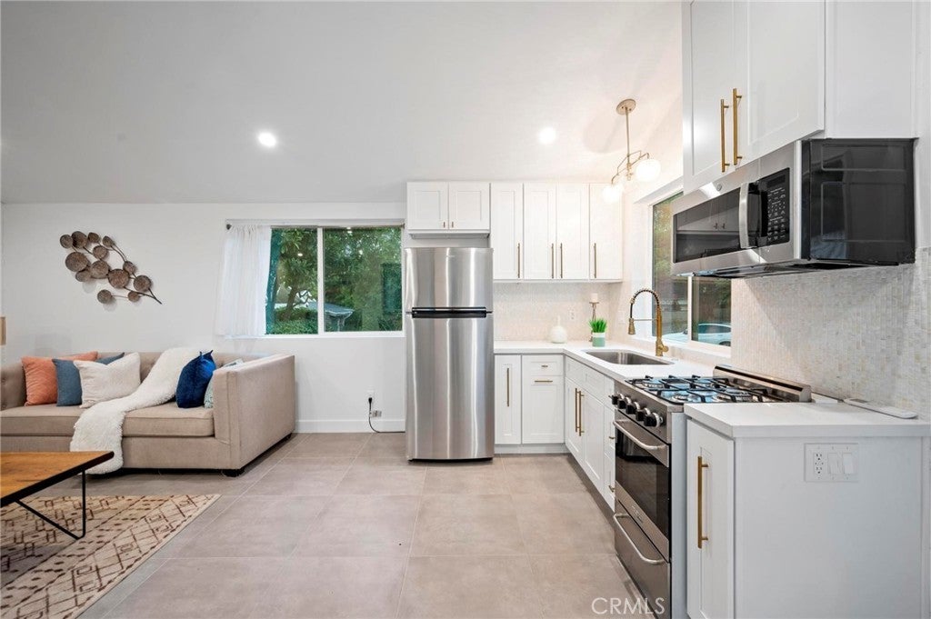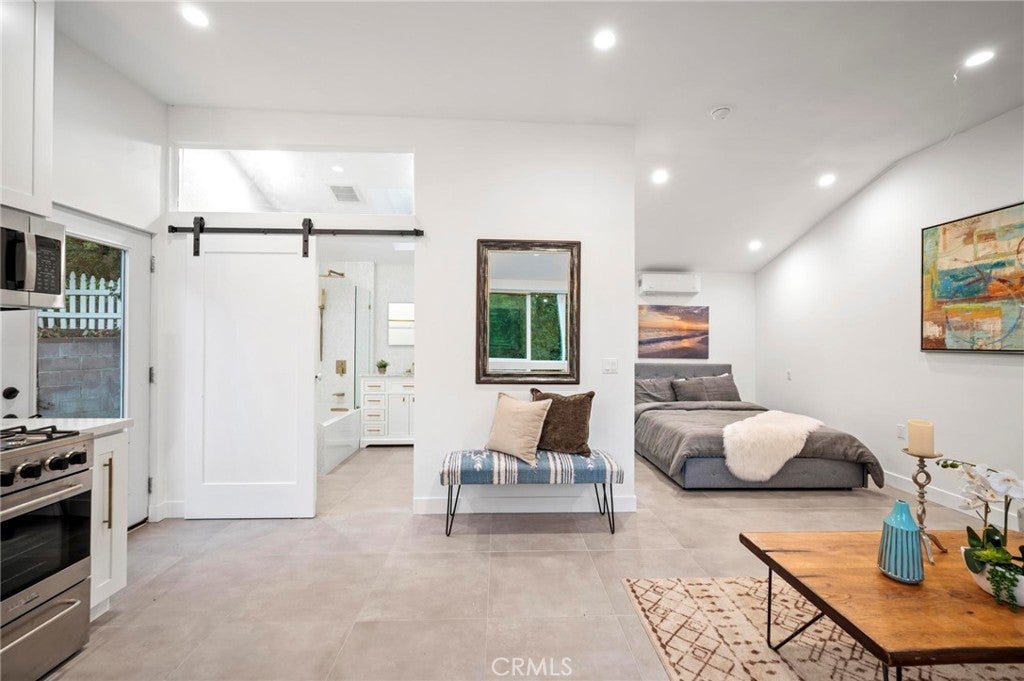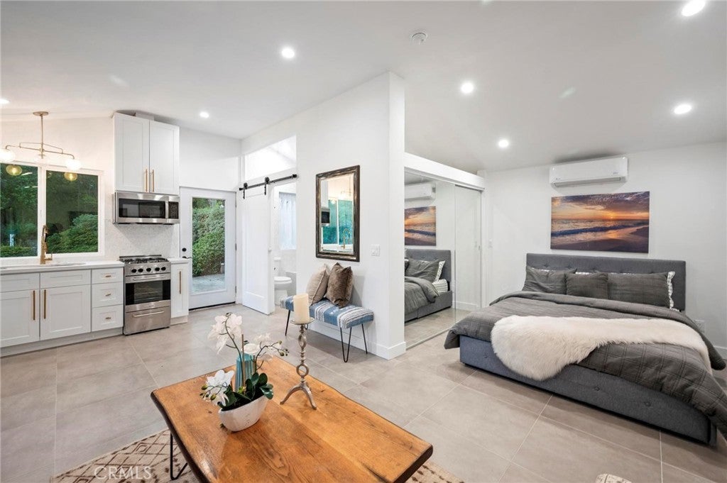 RUN! to this beautifully updated gem nestled in the heart of Woodland Hills! South of the Boulevard on a quiet street in a charming neighborhood close to everything, with efficiency galore that includes solar panels with $36/month lease payments!, a TESLA charging port, and income potential or extra living space with a gorgeous ADU. The stunning home is bathed in natural light, flows with hardwood floors, and efficiently offers pull-out kitchen shelving, large closets, and extra storage. A combination of high-end updates and classic mid-century roots enhances the home’s charm and coziness. The front brick courtyard is enchanting, and the graceful flow includes a wall of French doors in the living room that open to a spacious backyard with room for play, relaxation, and entertainment. An easy walk to parks, school, and Trader Joe’s, and wonderful neighbors all around. This is a lovely place to call home!