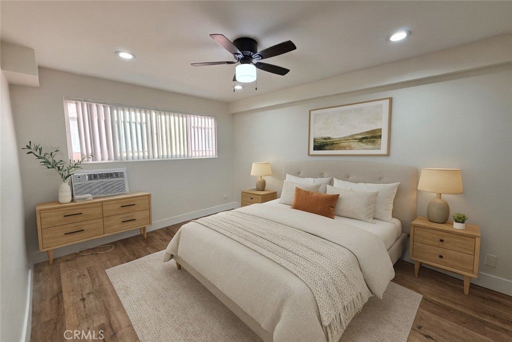 Welcome to this beautifully updated 2-bedroom, 1-bath apartment located in the heart of Van Nuys. This spacious unit features an open and bright floor plan with tile flooring throughout the living areas and modern wood-style flooring in the bedrooms. The large living room offers recessed lighting, fresh paint, and sliding glass doors that open to a private patio area, allowing for plenty of natural light. The kitchen has been tastefully updated with granite countertops, ample cabinet space, and a stylish subway tile backsplash, complete with a gas stove and modern fixtures. Both bedrooms are generously sized and include ceiling fans, recessed lighting, and large closets for extra storage. The bathroom features an updated vanity with granite countertops, tile shower walls, and a clean, modern look. Additional highlights include air conditioning units, energy-efficient lighting, and an overall bright and inviting atmosphere. Conveniently situated near major freeways, public transportation, shopping centers, restaurants, and schools, this charming apartment offers comfort, convenience, and a central location perfect for any lifestyle.