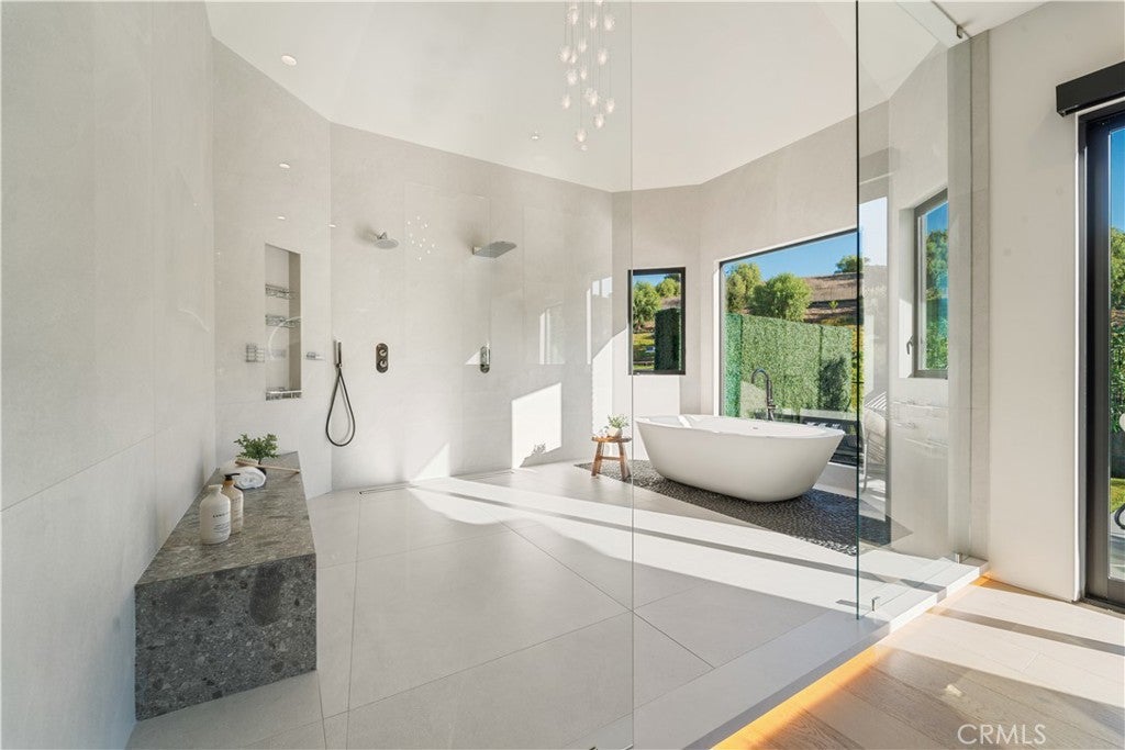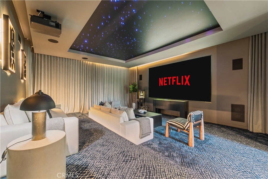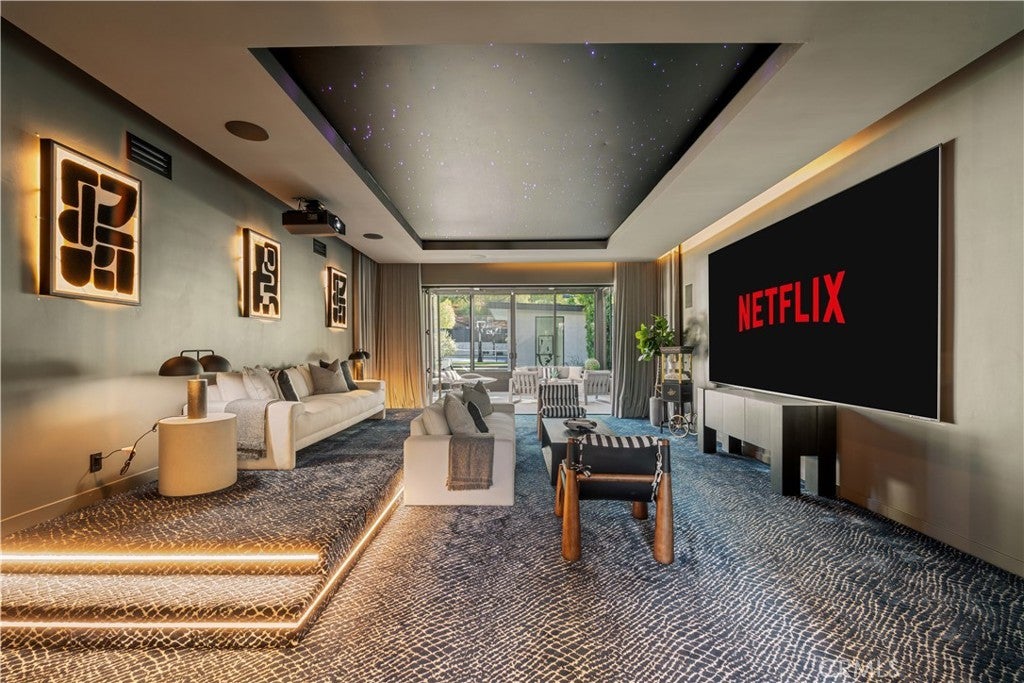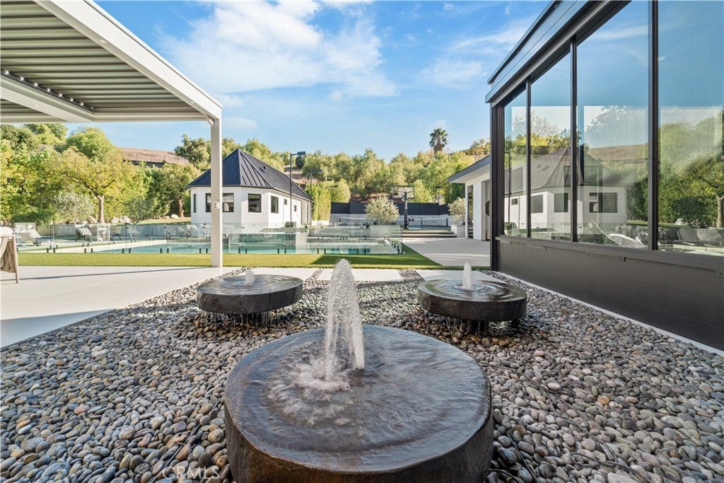 GATED COMMUNITY 7 BEDROOMS,10 BATHROOMS, DETACHED GUESTHOUSE, FULL SIZE SPORT COURT. 2023 REBUILD. STUNNING LUXURY MANSION SOUTH OF VENTURA (24 HOUR ARMED GUARD GATED COMMUNITY), WESTCHESTER COUNTY home to just 160 residences, this showcase estate redefines modern luxury. Set on nearly one acre and completely reimagined down to the studs in 2023 with over $3 million in recent upgrades, this 10,000+ sq. ft. masterpiece offers an unmatched level of privacy, sophistication, and cutting-edge design. Step inside to soaring cathedral ceilings, Custom Designer Chandeliers, dramatic floor-to-ceiling marble fireplaces, and seamless indoor-outdoor living with automatic pocket doors and Lutron smart home automation controlling lights, shades, TV’s and premium sound (interior/Exterior) throughout. The residence boasts a state-of-the-art security system with interior/exterior cameras, a Control4 system, and a fully soundproof oversized home theater with, Premium Sound Package, massive Upgraded Projector Screen, and a walkout enclosed patio. The chef’s dream kitchen showcases Two 12-foot waterfall islands, a walk-in pantry, 2 Dishwashers, full-size refrigerator & freezer, high-end appliances, and a custom wine display. Upstairs, you’ll find 5 en-suite bedrooms, each with custom cabinetry and walk-in closets. The primary suite impresses with Custom Fireplace, Sitting Area, 2 oversize walk-in Closets 1 that has its own ELEVATOR an Oversize Spa like bathroom with Huge Rainfall Shower, Separate Tub, Vanity Area, and Walk-out balcony overlooking park like grounds. The amenities continue with two laundry rooms, a 3 car garage with metallic epoxy floors, and a massive loft space ideal for a gym, office, or playroom. Outdoor living rivals a resort with designer Lighting, landscaping, multiple entertaining patios, outdoor grill, cabana, custom glass pool fence, GLASS SPA, putting green, and full-size NCAA basketball court /Tennis Court. Outdoor Shower, A detached guest house,A Main Level En-Suite Bedroom perfect for guests. The Ideal Floorplan. This estate offers the perfect blend of modern technology, refined elegance, and resort-style luxury in one of the most coveted gated communities south of Ventura WESTCHESTER ESTATES, Patrolling armed Guard, Street Surveillance. dream home and one of the Safest Neighborhoods in LA for the most discerning buyer. UPGRADES SHEET AVAILABLE UPON REQUEST Minutes to the 101, Target, Costco, Topanga Village, Fine Dining, Shops and Restaurants.