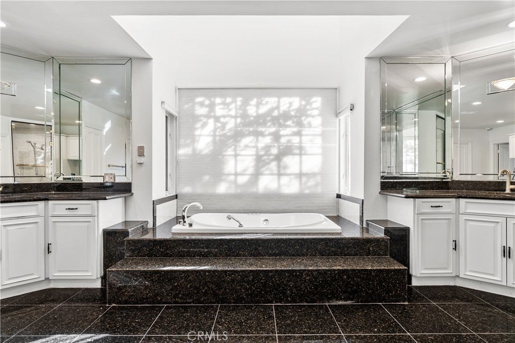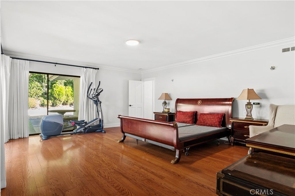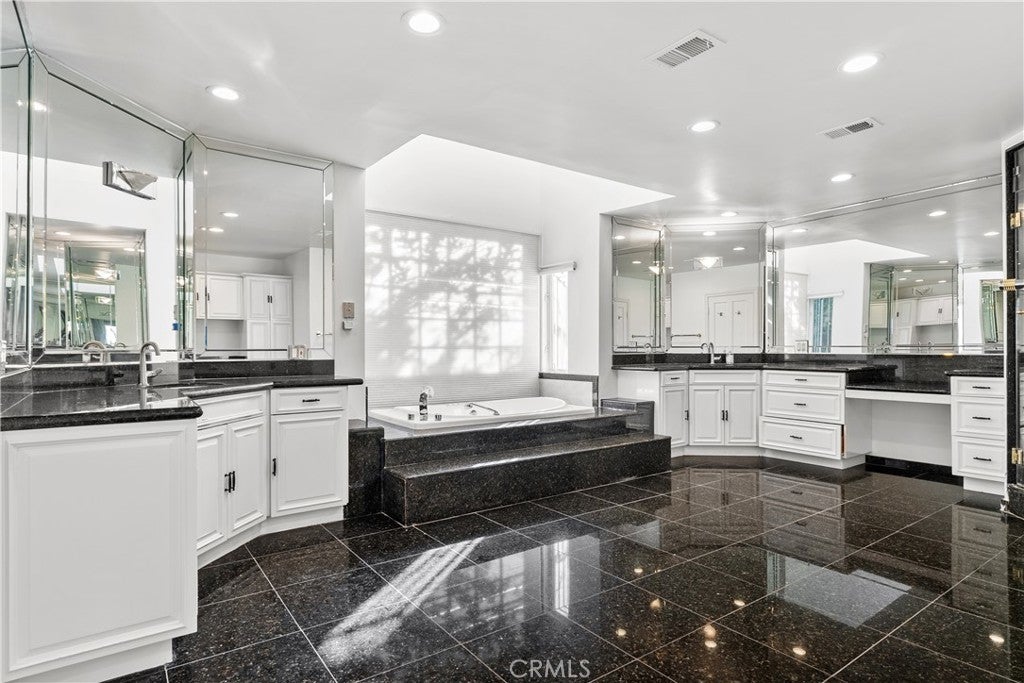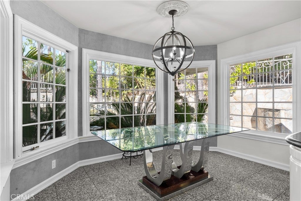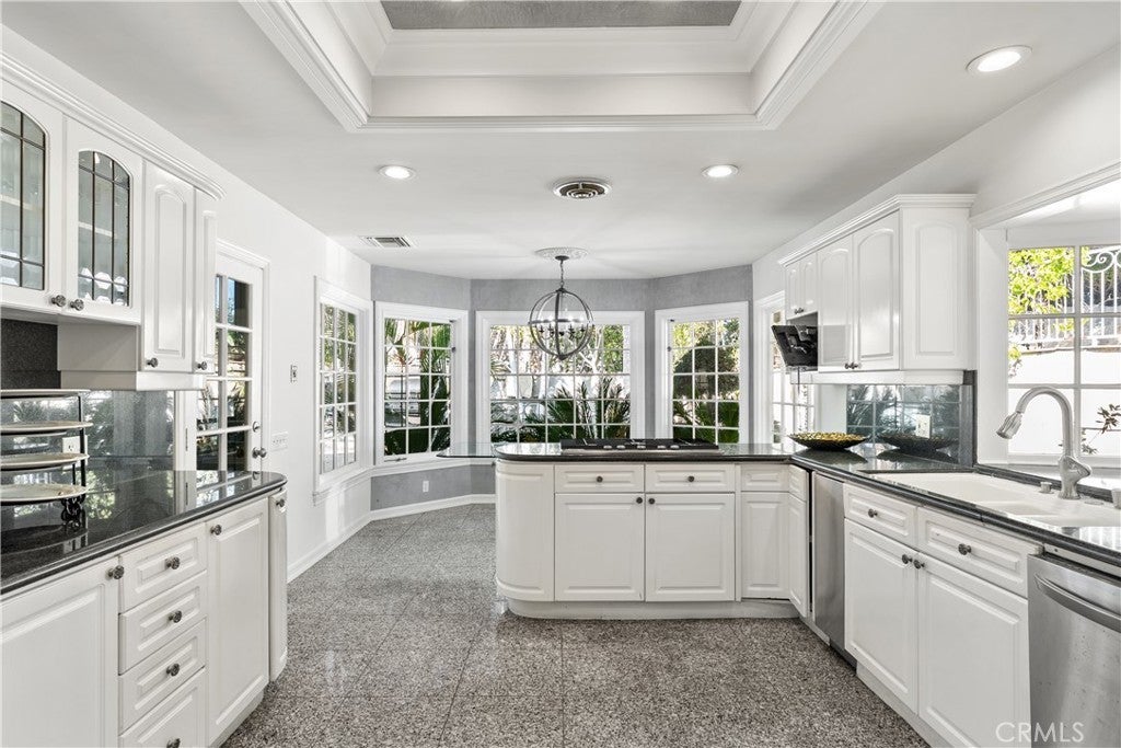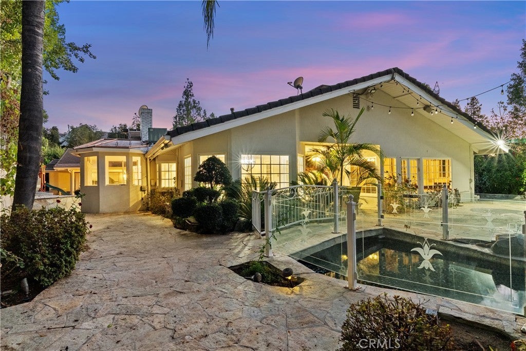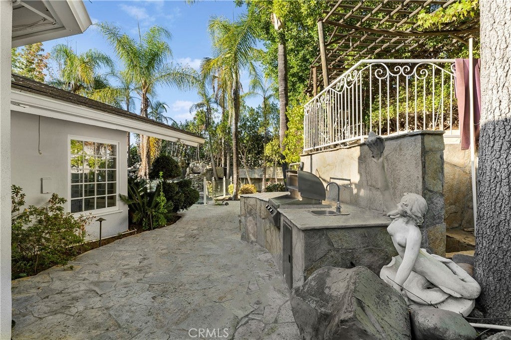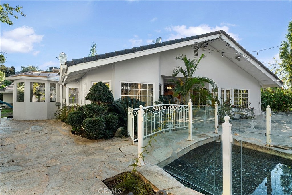 A Perfect 10! This stunning single-story entertainer’s estate boasts an impressive 188 feet of frontage and exquisite upgrades throughout. Step inside to find marble floors with intricate inlaid mosaic detailing, designer faux finishes, elegantly updated bathrooms, custom doors and windows, and stone fireplaces that create an atmosphere of luxury and warmth. The home offers two full kitchens featuring top-of-the-line cabinetry and premium appliances, perfect for hosting or multi-generational living. The expansive primary wing includes a sitting area, walk-in closets, and a spa-like bath. Additional highlights include designer draperies, a newer roof, copper plumbing, and maid’s quarters conveniently located off the three-car garage. Step outside to a resort-style backyard where no expense was spared—featuring a custom pool with glass enclosure, three cascading waterfalls, and a bridge leading to the built-in BBQ area and elevated viewing terrace. The lush, manicured grounds include a large grassy area ideal for entertaining or relaxation. Truly a one-of-a-kind property where luxury, craftsmanship, and comfort come together. You must see it to fully appreciate the detail and design!