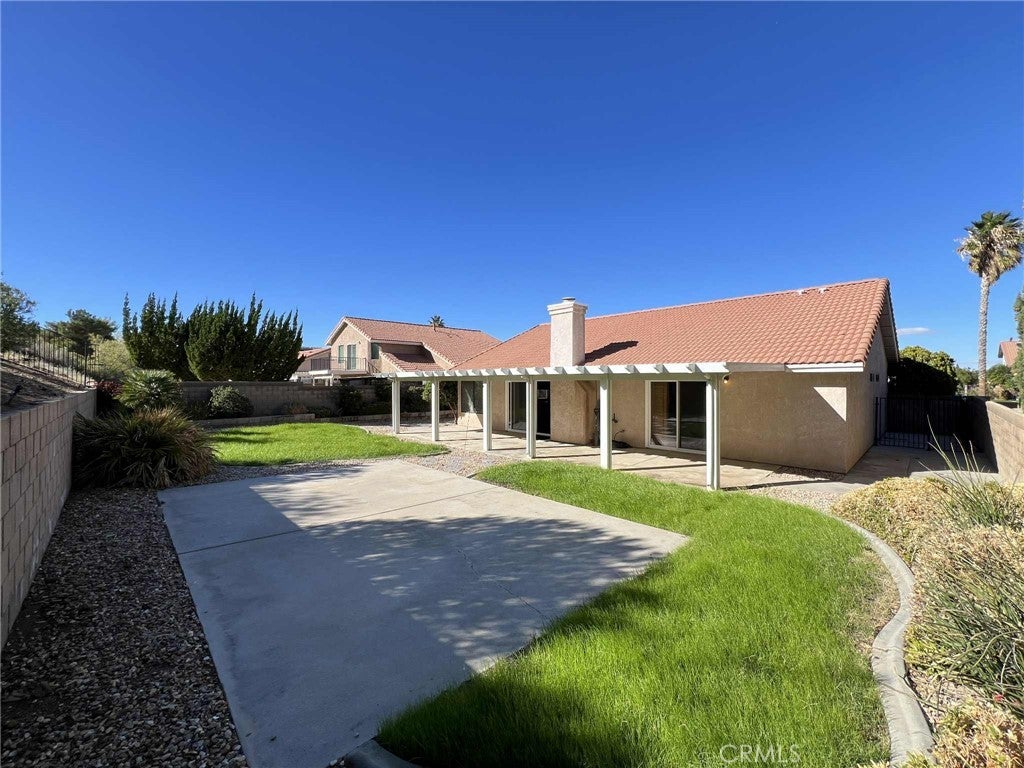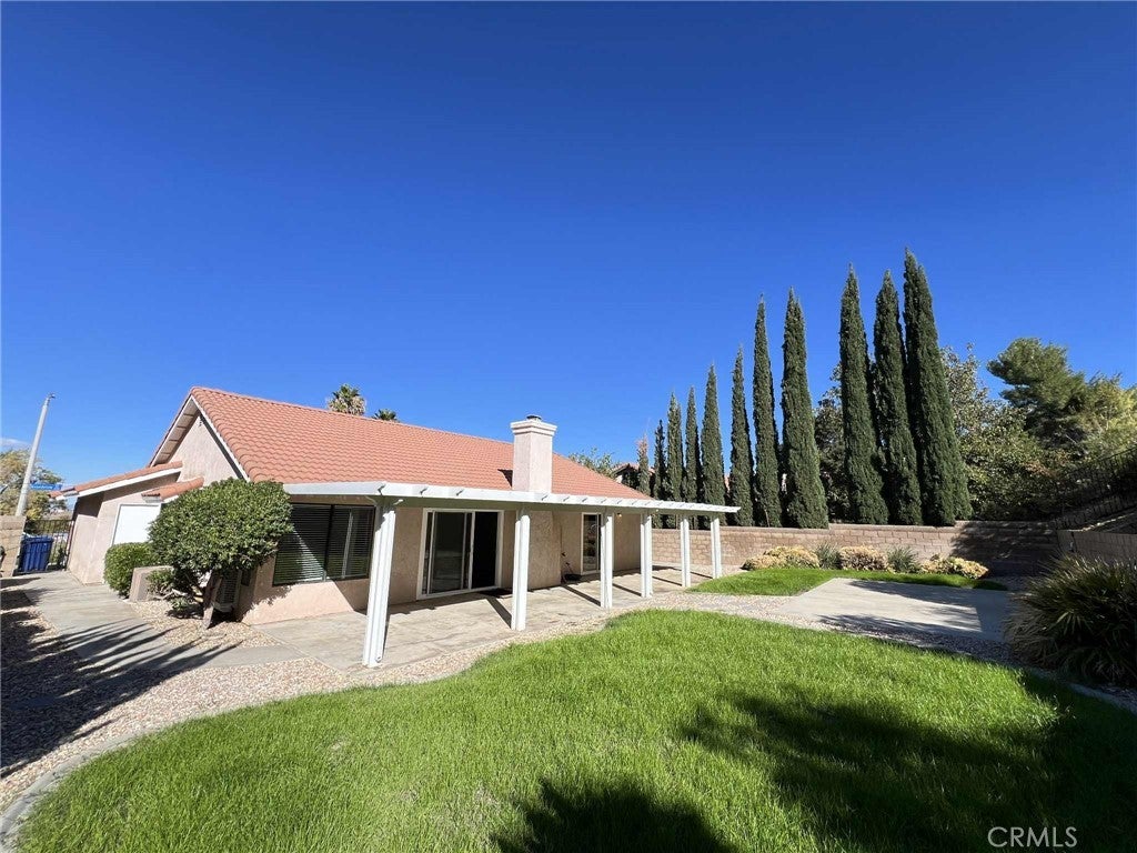 Excellent Location In a very quiet and clean community in West Palmdale Near AV Mall and great Schools. This property features 3 bedrooms, Master Room with Private Bath and direct access to beautiful Backyard, Large Living Room With Fireplace, Kitchen with Plenty of Cabinets and all appliances included. Central Heat/Air, 2 car attached garage with laundry and washer/dryer for your convenience. Enjoy private Backyard with Covered Patio and much more!