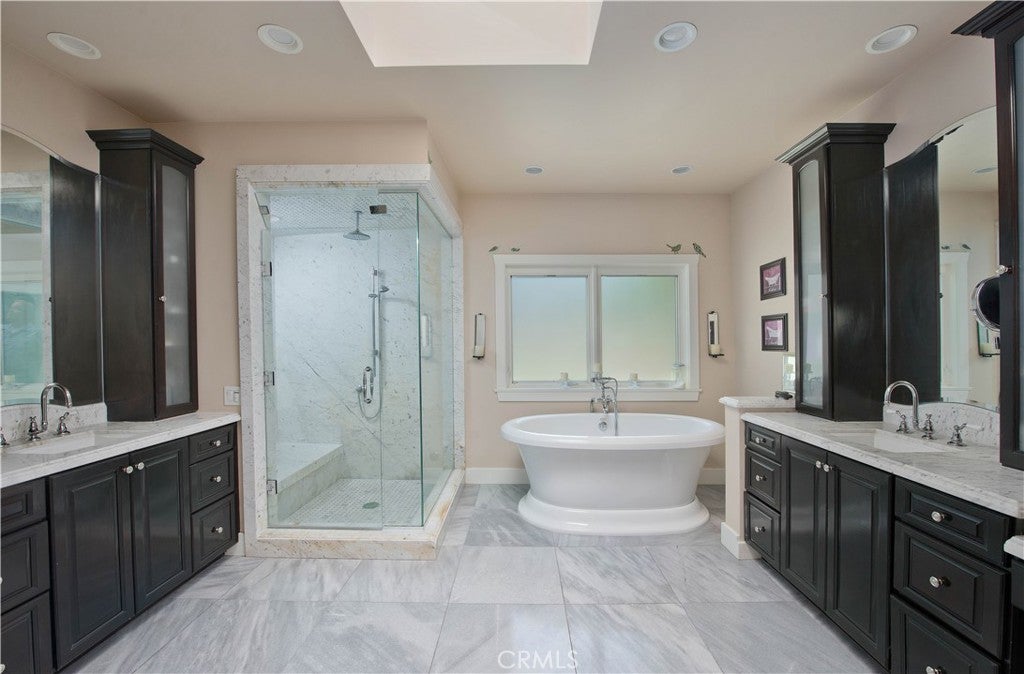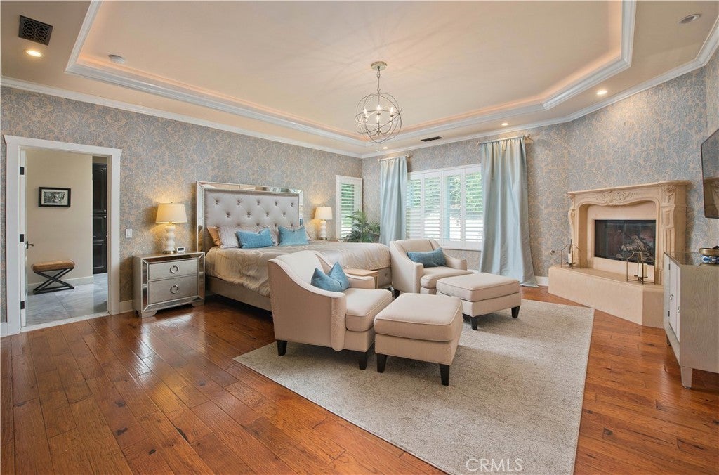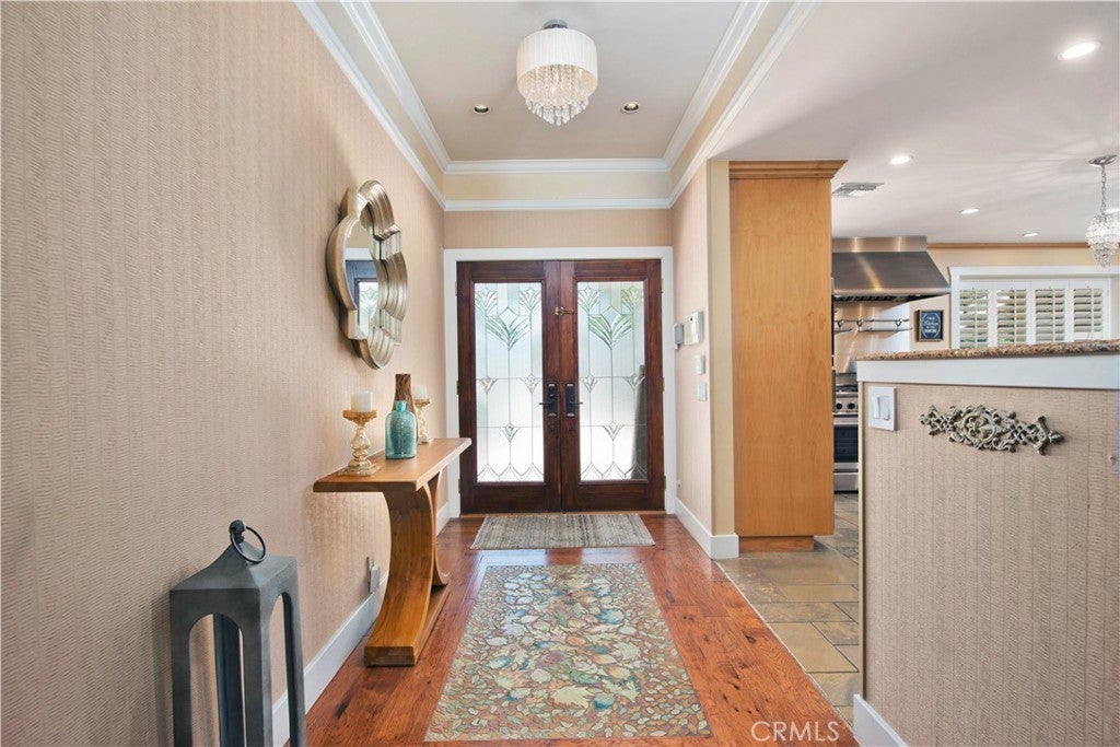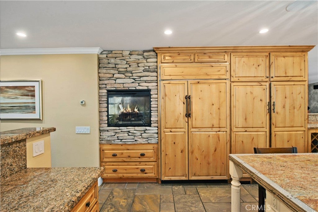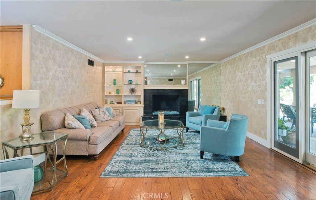 Welcome to one of the most spectacular single-story, ranch style custom estates in Knollwood! The moment you arrive, the striking curb appeal sets the tone—beautiful rock hardscaping leads to a private, gated courtyard with serene fountain and tranquil seating areas that greet you. Step through custom wood double doors w/beveled glass and discover nearly 4,300 sq. ft. of luxurious living space. Upon entry you immediately notice the views of the resort-like backyard through the oversized sliding glass doors of the spacious and bright living room that has custom built-ins and fireplace. At the heart of the home is a gourmet chef’s kitchen, designed to impress w/Argentinean marble floors, oversized center island, DCS 6-burner stove, double ovens, warming drawer, dual sinks, Sub-Zero refrigerator, wine fridge, fireplace & exceptional storage. The kitchen flows seamlessly into the dining room and onward to a step-down, expansive family room w/custom built-ins and cozy fireplace. Surrounding the family room is a bonus upper open area, ideal for bar or pool table- the perfect entertaining spot w/oversized glass sliders that frame serene views of the entertainer’s backyard—creating a seamless indoor-outdoor flow. Thoughtful floor plan features two private wings, creating an ideal layout for the five bedrooms and four baths. The primary retreat is a sanctuary of luxury, boasting a fireplace, custom up lighting, built-in wardrobes and fully finished walk-in closet. The spa-like primary bath features Carrera marble, heated floors, dual vanities, whirlpool soaking tub, oversized steam shower, and skylight that bathes the space in natural light. Two of the additional bedrooms are spacious en-suites, perfect for guests or family. A rare and impressive feature is the extra-large laundry room, designed to accommodate two washers and two dryers, with abundant cabinetry, a utility sink & direct access to yard. The resort-style backyard is an entertainer’s dream: an extended covered patio w/fireplace, Pebble Tec salt water pool w/slide, stylish spa-inspired outdoor shower, koi pond, putting green, low-maintenance turf, detached pool room & large gated/enclosed carport area. Additional highlights include mud room, finished three-car garage w/epoxy floors and built-in cabinets, solar, 3 A/C zones, CAT/cable wiring throughout. Homes like this are a rare find—offering custom design, privacy and luxury all in one. This extraordinary estate is truly one of a kind and won’t last!