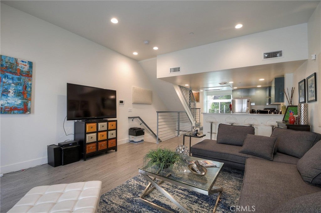 Welcome to this beautifully designed 3-bedroom, 2.5-bathroom townhouse, perfectly located in the highly sought-after Studio City neighborhood. Just steps away from popular cafes, restaurants, and shops like Aroma Café, this home offers the ideal blend of convenience and style. The open-concept kitchen is a chef's dream, featuring sleek stainless steel appliances and a breakfast bar with ample seating. The home boasts elegant laminate hardwood floors throughout, creating a seamless flow from room to room. Upstairs, you’ll find two generously sized bedrooms and a tastefully designed full bathroom. The third floor offers a luxurious master suite with soaring ceilings, abundant natural light, and a private en-suite bathroom, creating the perfect retreat. Additional highlights include a 3-car attached garage with controlled access and direct entry into the unit—rare and highly desirable for the area. With easy access to the 101, 170, and 134 freeways, and just minutes from Universal Studios, CBS Studios, and the vibrant Ventura Blvd, this location is unbeatable. Come experience this modern gem in person and fall in love with its contemporary charm and prime location. Schedule your viewing today!